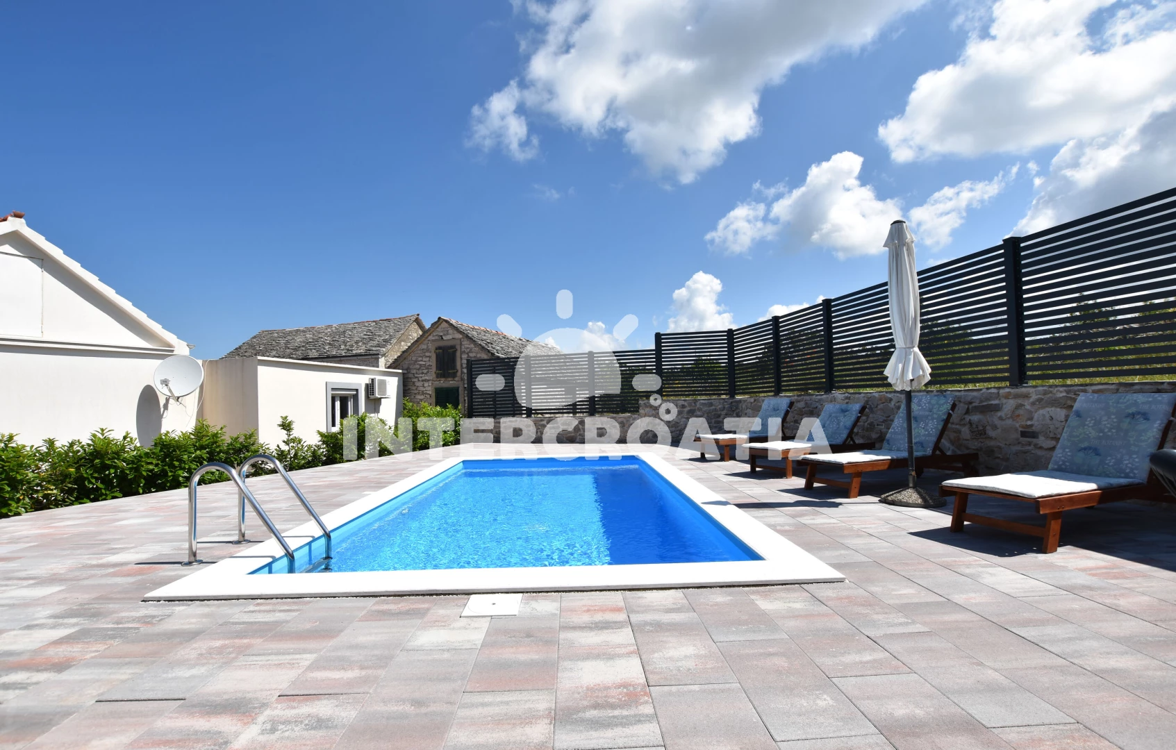 Domek se nachází 4700 m od moře a pláže. Pláž je skalnatá a oblázková. Domek disponuje bazénem s lehátky pro ubytované hosty. U objektu je k dispozici společná zahrada s posezením a grilem. Parkování je před domem.