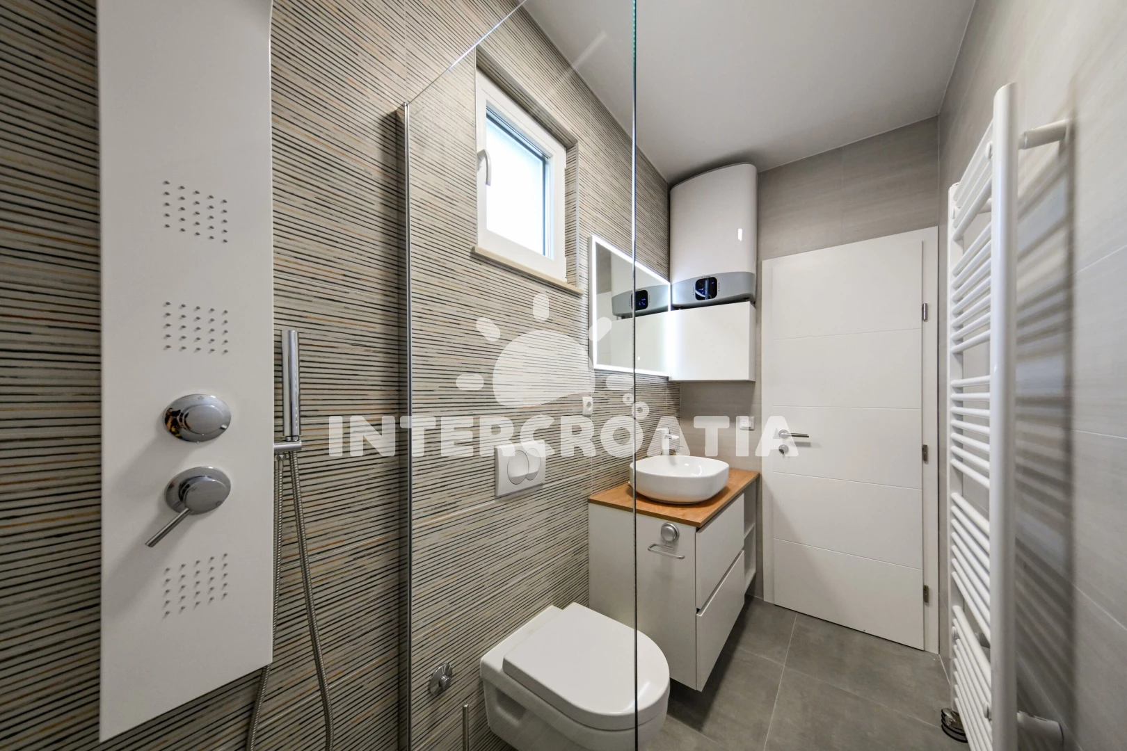 Vzdálenosti: Moře 300 m, pláž 300 m (písčitá a betonové desky), veřejná doprava 200 m, půjčovna kol 300 m, supermarket 300 m, diskotéka 300 m, restaurace 300 m, bar 300 m, pošta 500 m, centrum 500 m, směnárna 500 m, ambulance 500 m, lékárna 500 m, potápění 3 km, čerpací stanice 3 km, marina 30 km, banka 30 km, trajekt (Zadar) 30 km, letiště (Zadar) 35 km,