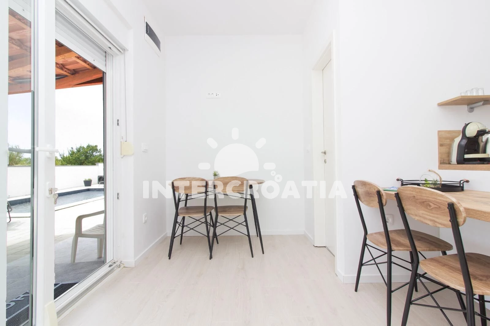 Vzdálenosti: Moře 1 km, pláž 1 km , restaurace 1 km, bar 1 km, centrum 2 km, pošta 2 km, potápění 2 km, směnárna 2 km, půjčovna motorových člunů 2 km, půjčovna kol 2 km, diskotéka 2 km, ambulance 2 km, lékárna 2 km, veřejná doprava 2 km, supermarket 2 km, čerpací stanice 5 km, muzeum 5 km, trajekt (Zadar) 25 km, marina 25 km, banka 25 km, letiště (Zadar) 30 km,