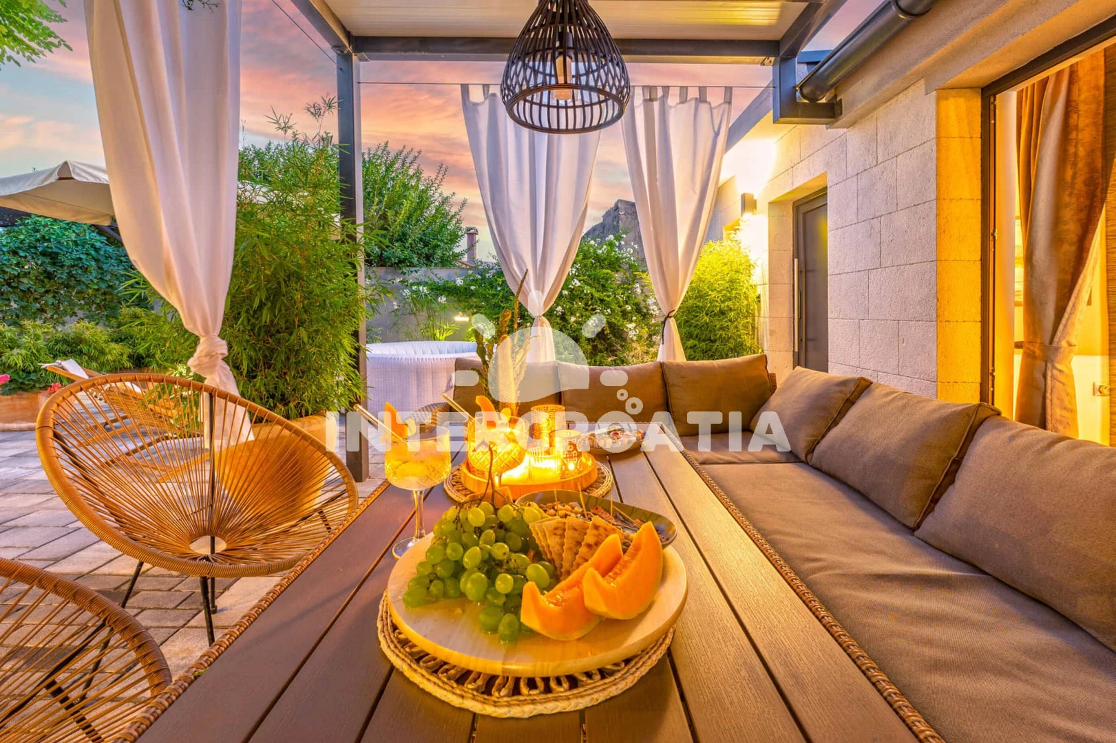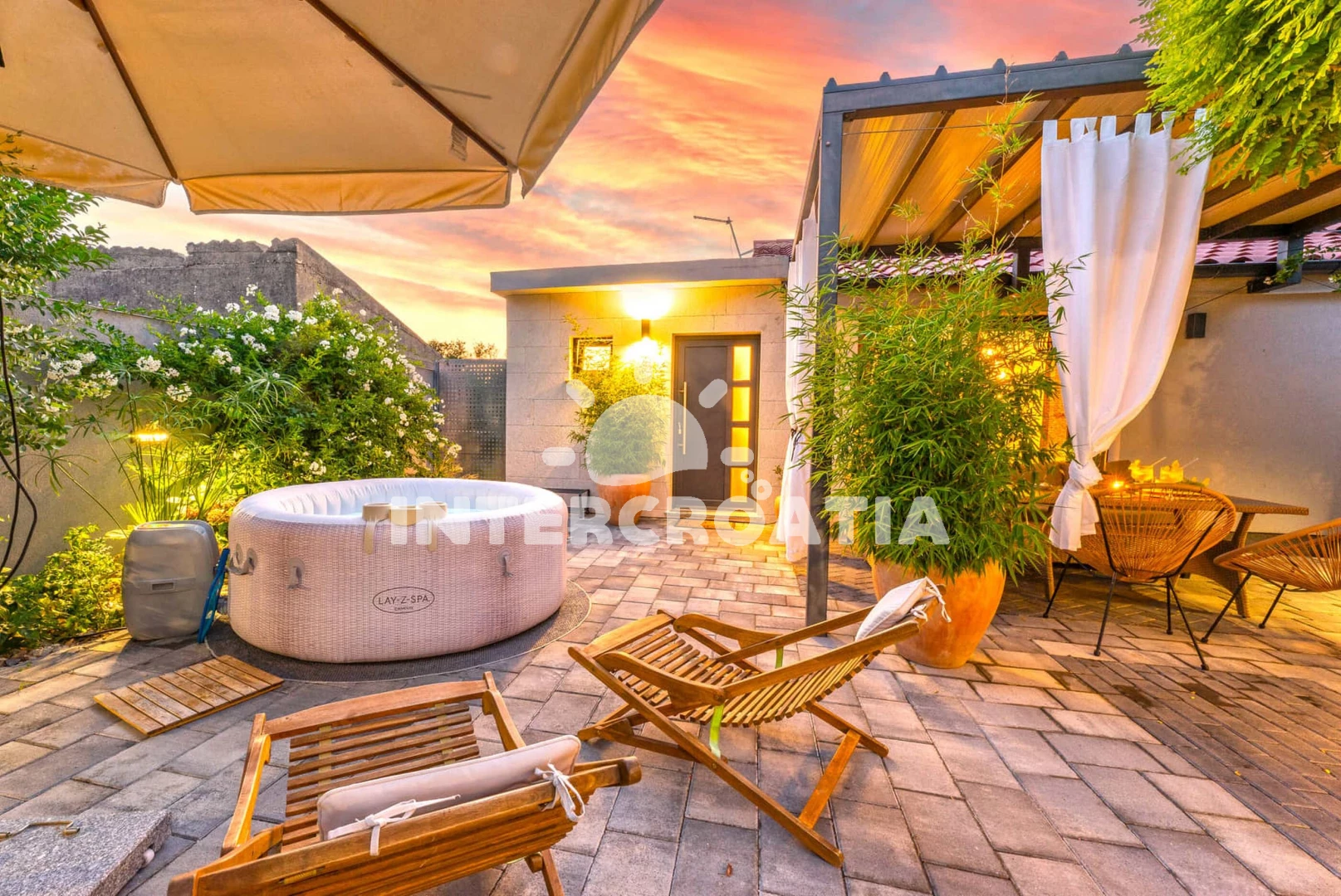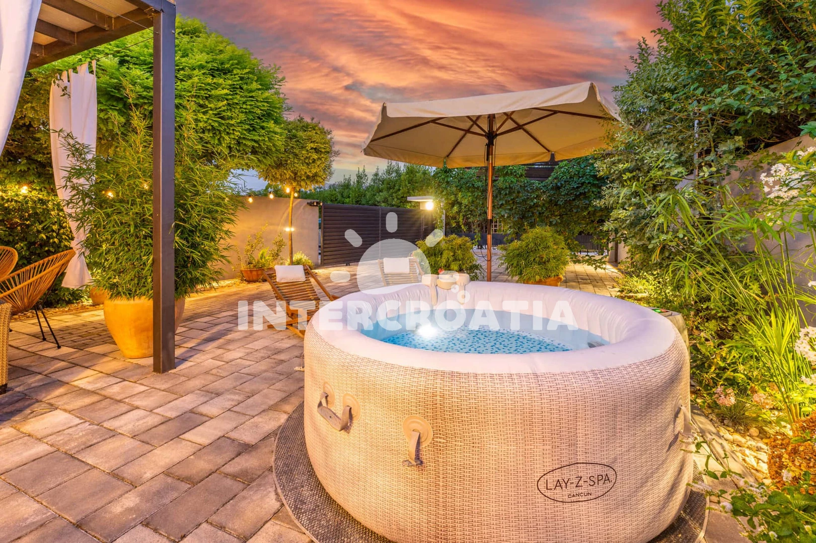 Domek se nachází 1000 m od moře a pláže. Pláž je skalnatá, oblázková, větší kamení a betonové desky. K dispozici vířivka. U objektu je k dispozici společná zahrada s posezením a grilem. Parkování je před domem.