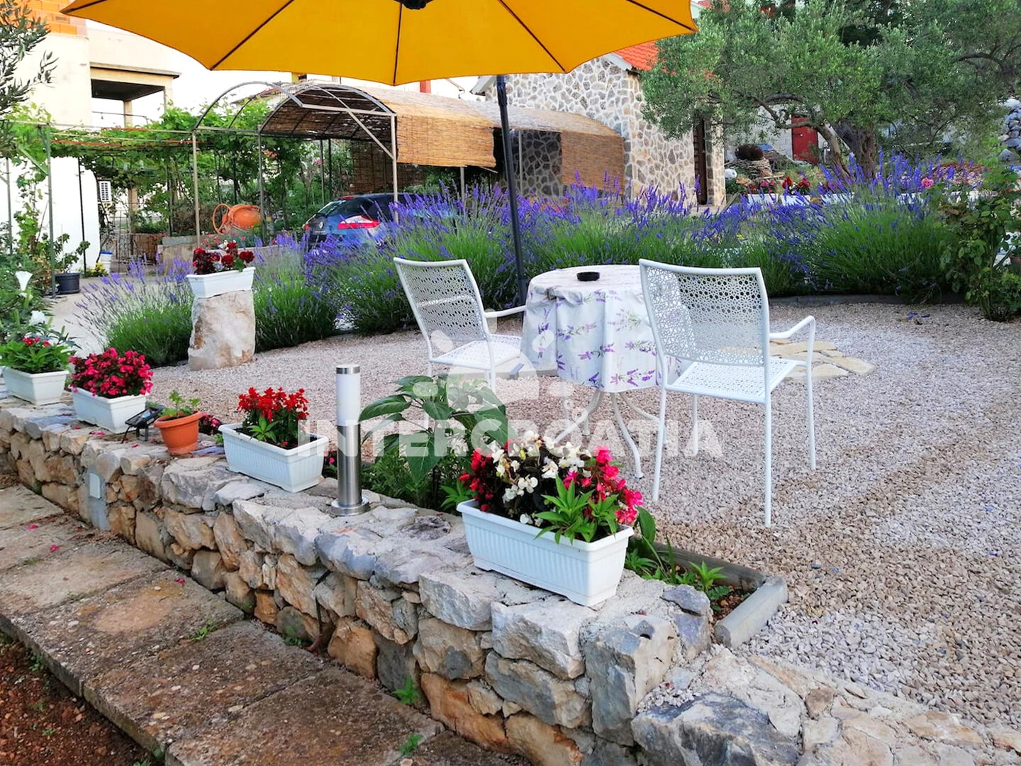 Domek se nachází 550 m od moře a pláže. Pláž je oblázková a betonové desky. U objektu je k dispozici společná zahrada s posezením a grilem.