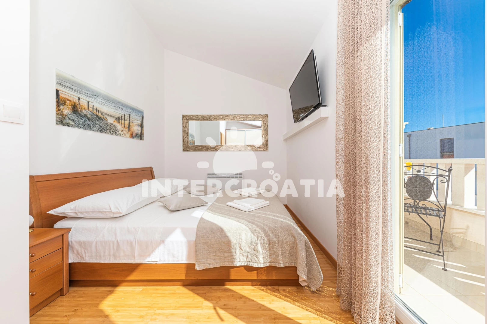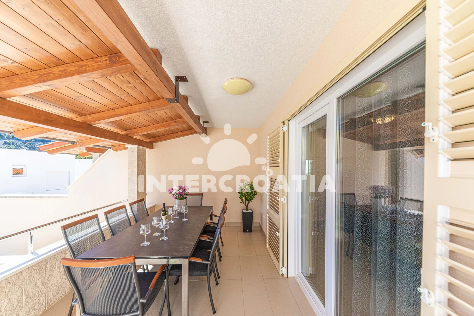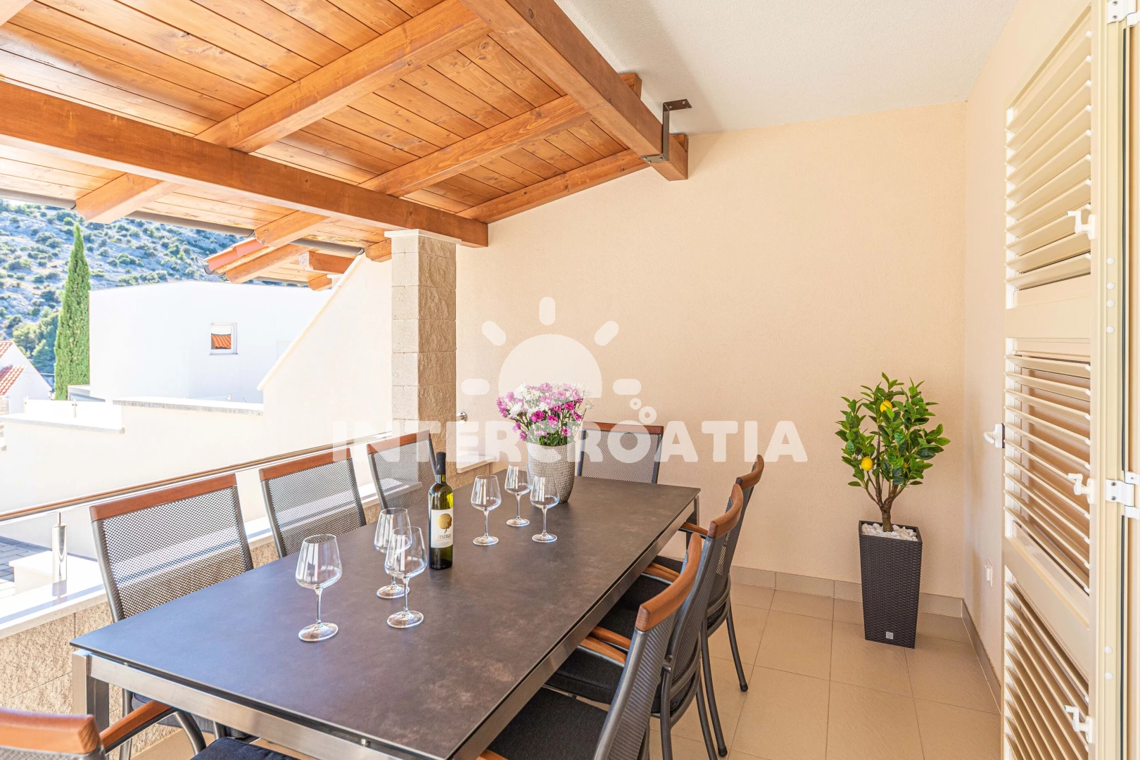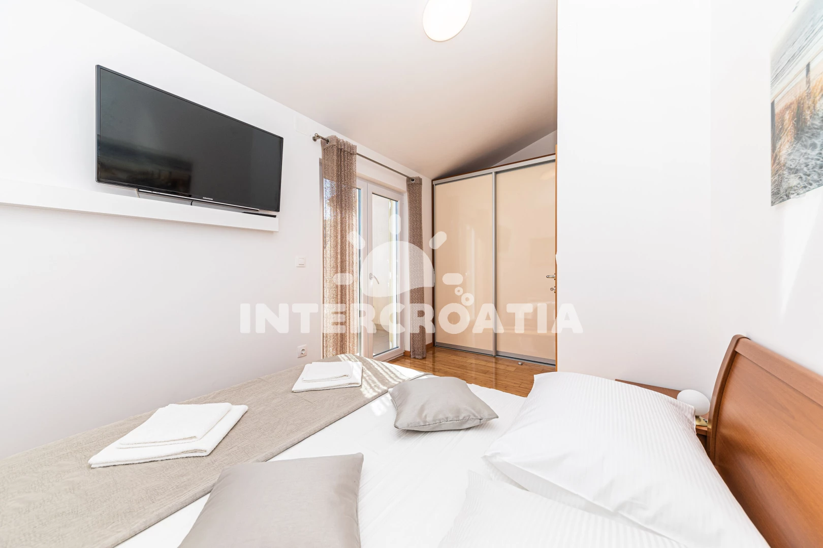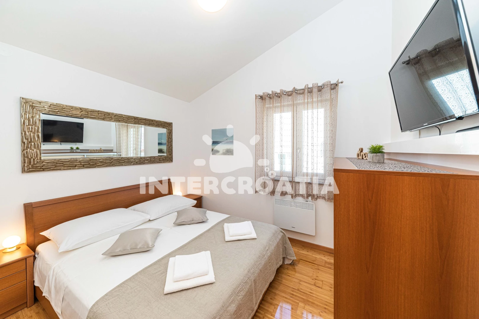 Vzdálenosti: Moře 60 m, pláž 150 m (skalnatá, oblázková a betonové desky), bar 550 m, centrum 550 m, restaurace 550 m, supermarket 580 m, ambulance 2,6 km, pošta 2,6 km, potápění 3,3 km, marina 3,3 km, lékárna 3,3 km, veřejná doprava 6 km, diskotéka 9,2 km, banka 10 km, mini golf 10,3 km, tenisové kurty 10,3 km, čerpací stanice 13 km, letiště (Split) 26 km, trajekt (Split) 37,9 km,