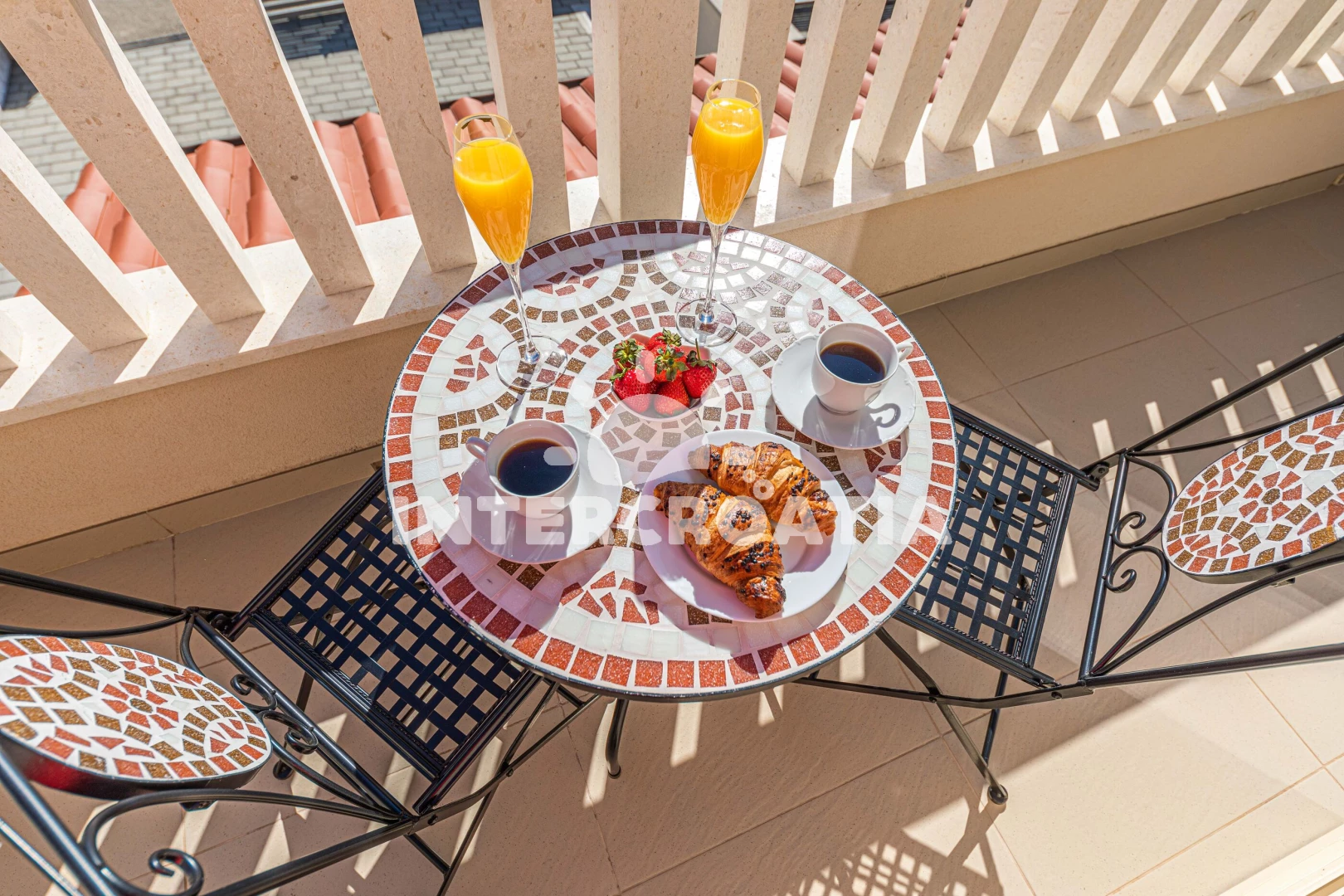 Domek (100 m2) s balkonem. Nachází se ve dvou patrech objektu. Domek má 3 ložnice a je vhodný pro až 6 osob. Kuchyňská linka je vybavena varnou deskou, toustovačem, kávovarem, troubou, myčkou na nádobí, rychlovarnou konvicí, nádobím, lednicí, mrazákem. V obývací místnosti je rozložitelná pohovka (extra lůžko pro 0 osoby). K dispozici televize, radio, žehlička. První ložnice s dvoulůžkem. Druhá ložnice s dvoulůžkem. Třetí ložnice s dvoulůžkem. Koupelna se sprchovým koutem, umyvadlem, fénem a WC. Dále samostatné WC.