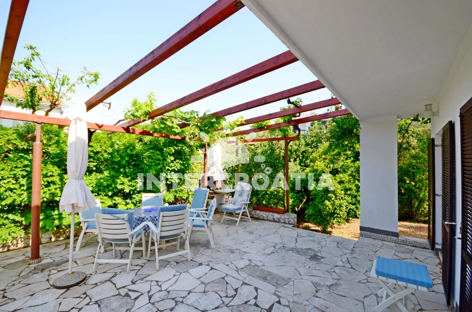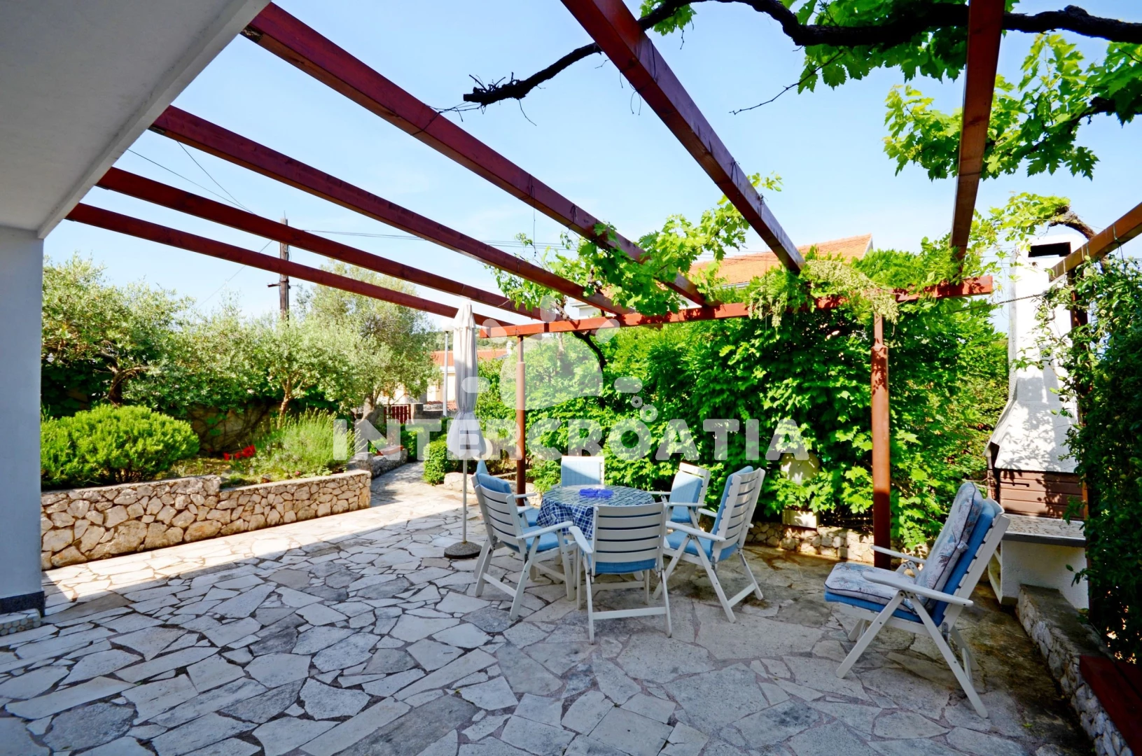 Domek se nachází 200 m od moře a pláže. Pláž je oblázková a betonové desky. U objektu je k dispozici společná zahrada s posezením a grilem.