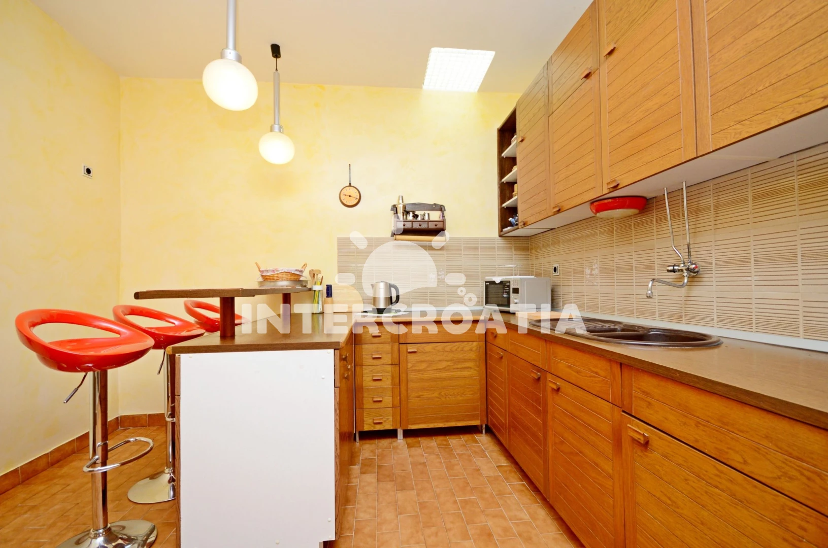 Vzdálenosti: Moře 30 m, pláž 200 m (oblázková a betonové desky), bar 50 m, centrum 50 m, restaurace 50 m, veřejná doprava 50 m, supermarket 50 m, potápění 2 km, pošta 12 km, banka 12 km, lékárna 12 km, ambulance 12 km, směnárna 12 km, půjčovna kol 12 km, diskotéka 12 km, čerpací stanice 20 km, letiště (Split) 25 km, trajekt (Split) 50 km,