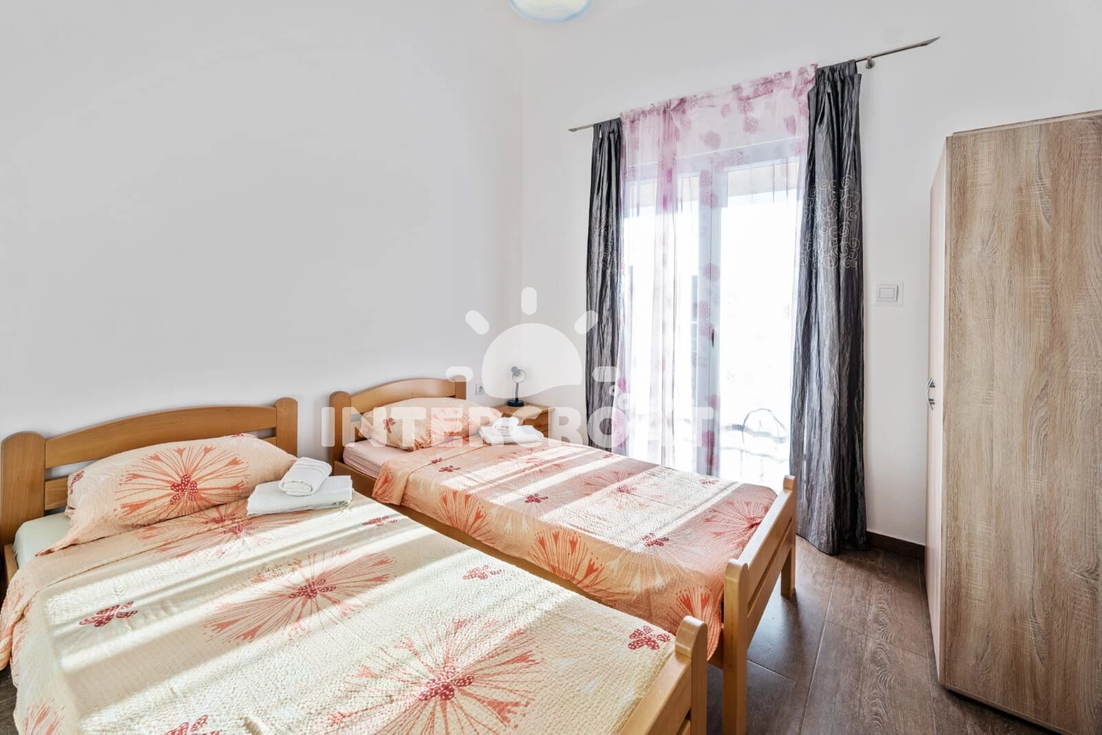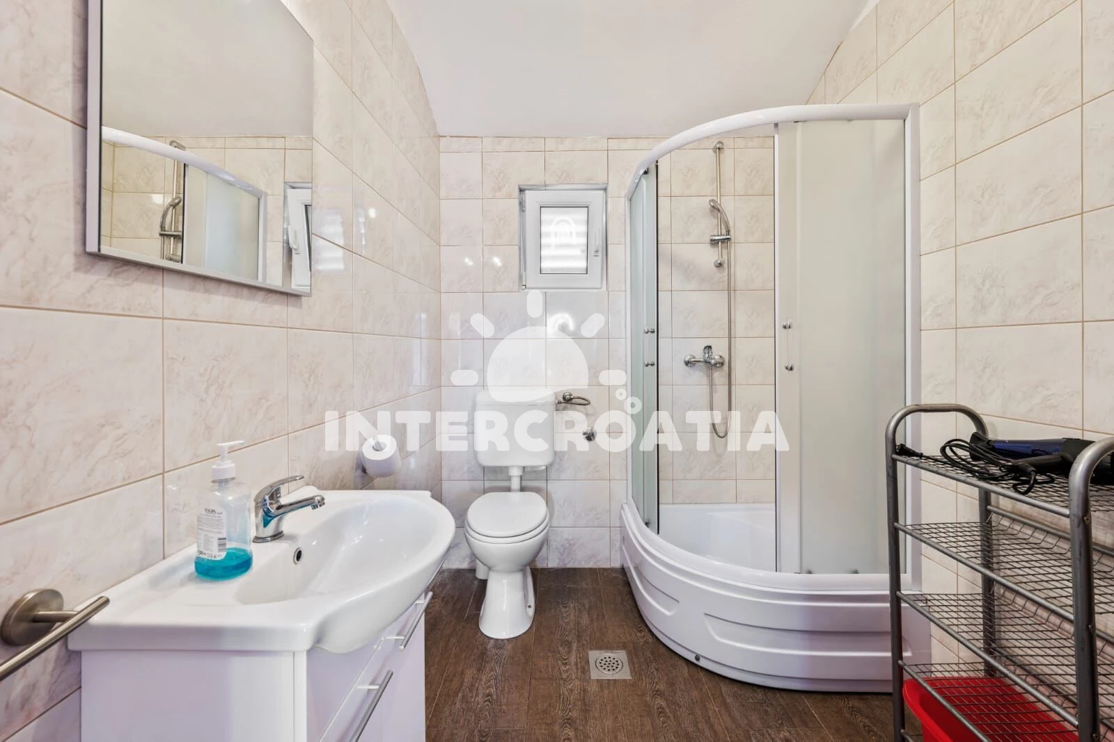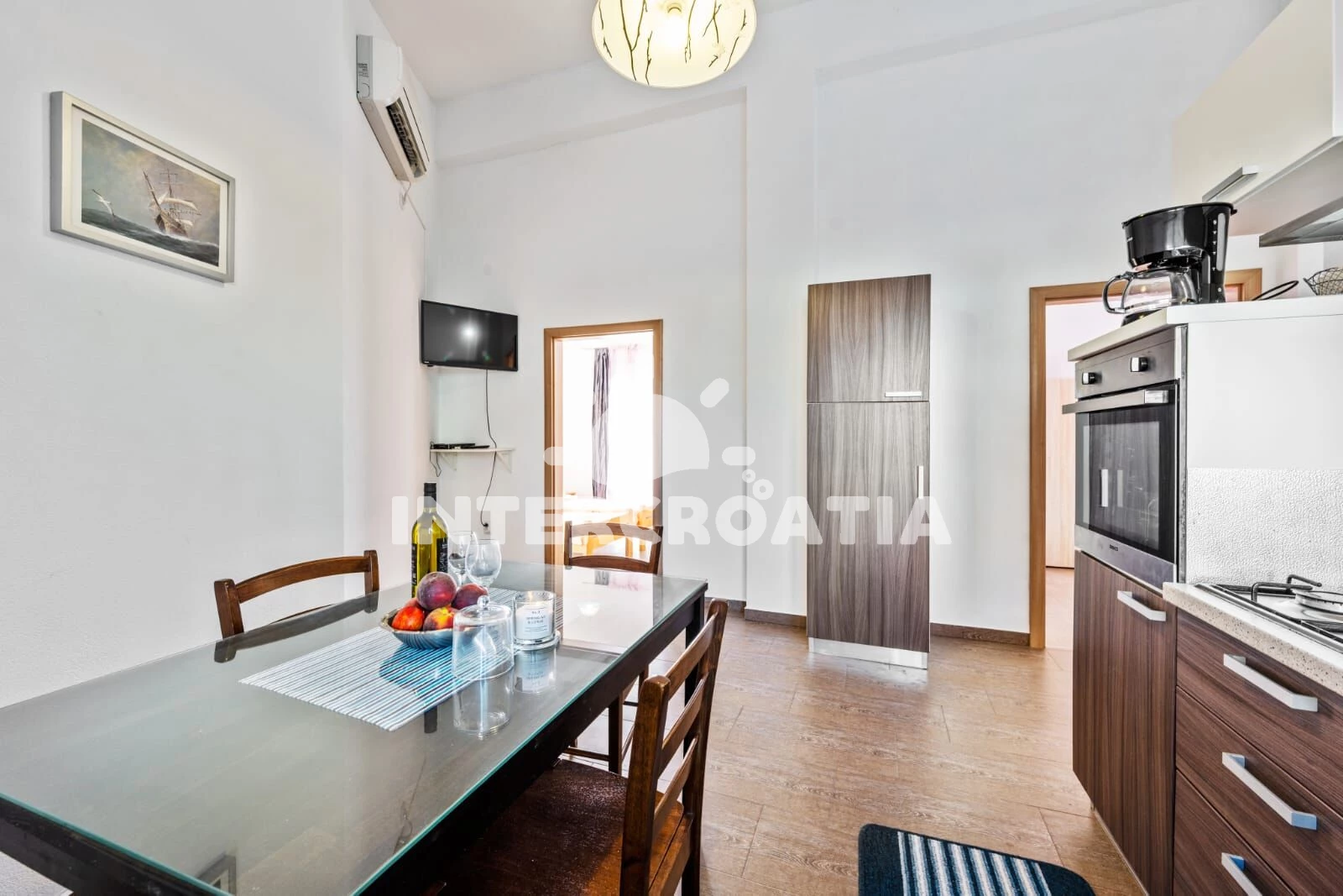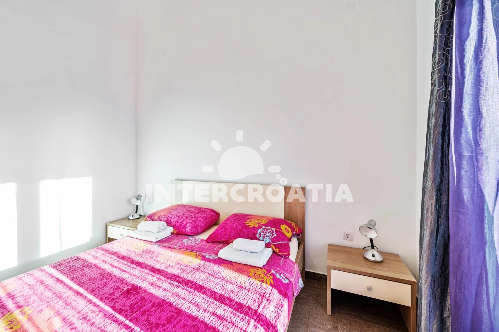 Vzdálenosti: Moře 50 m, pláž 150 m (oblázková a betonové desky), bar 20 m, restaurace 20 m, centrum 20 m, směnárna 50 m, supermarket 50 m, veřejná doprava 500 m, pošta 5 km, lékárna 5 km, ambulance 5 km, banka 10 km, čerpací stanice 10 km, letiště (Split) 40 km, trajekt (Šibenik) 45 km,