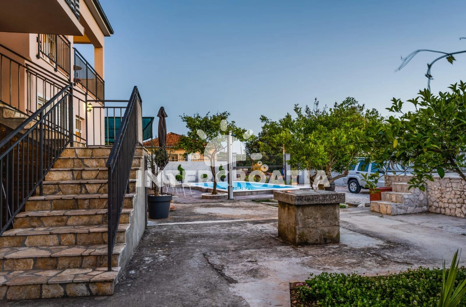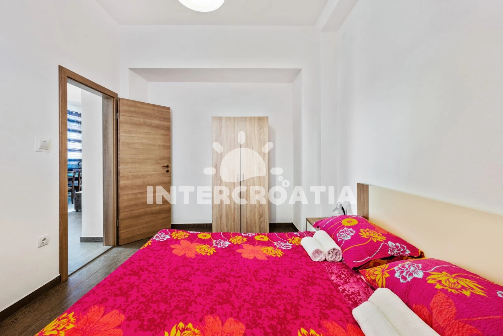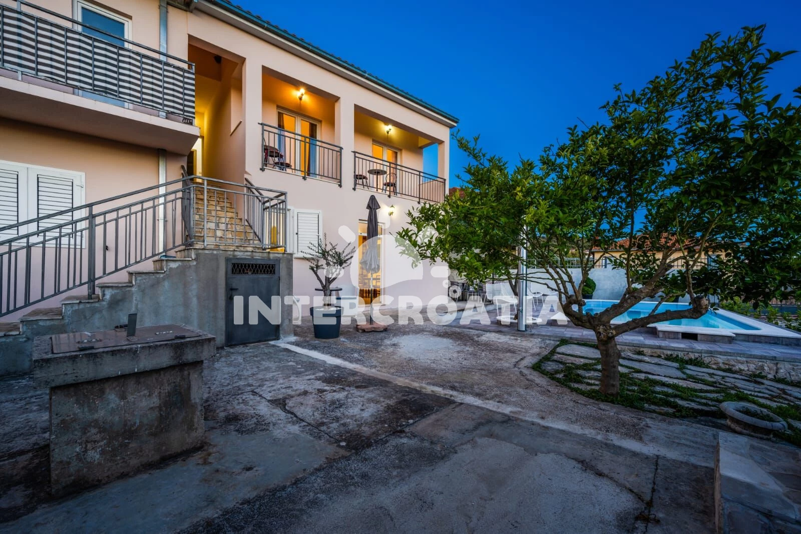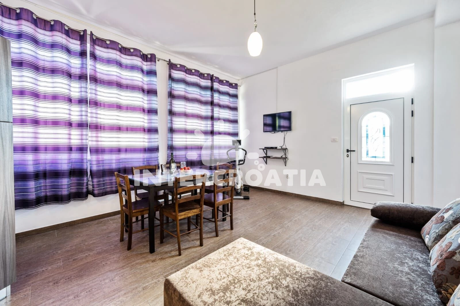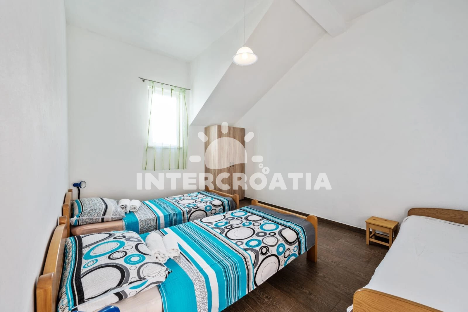 Vzdálenosti: Moře 50 m, pláž 150 m (oblázková a betonové desky), bar 20 m, restaurace 20 m, centrum 20 m, směnárna 50 m, supermarket 50 m, veřejná doprava 500 m, pošta 5 km, lékárna 5 km, ambulance 5 km, banka 10 km, čerpací stanice 10 km, letiště (Split) 40 km, trajekt (Šibenik) 45 km,