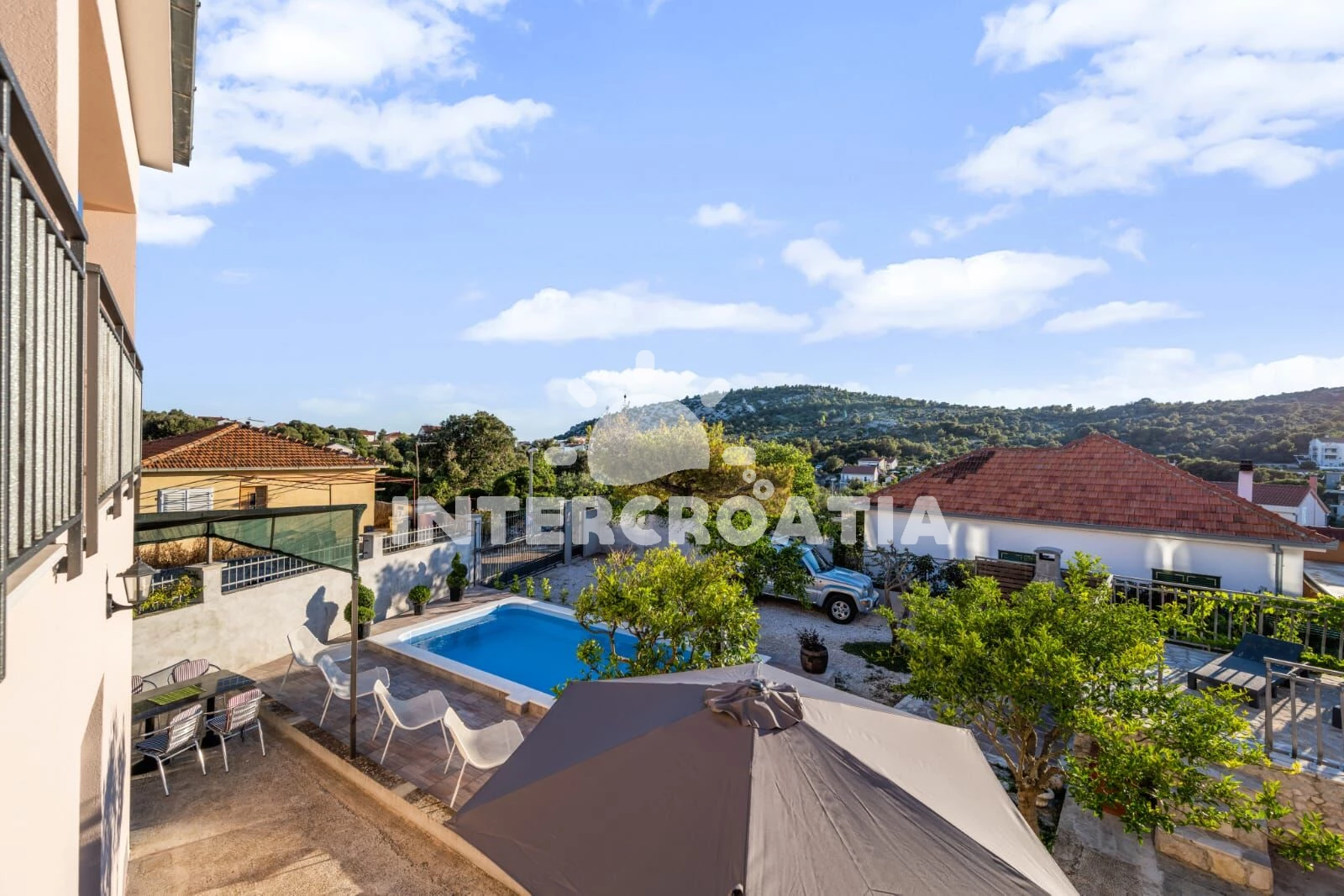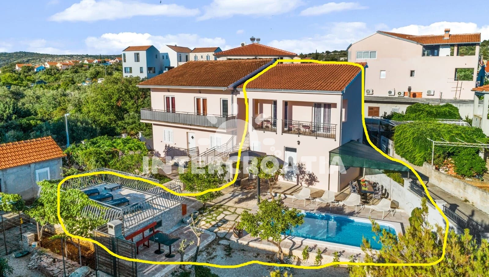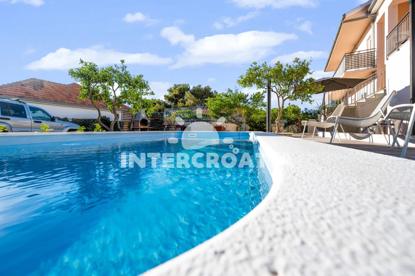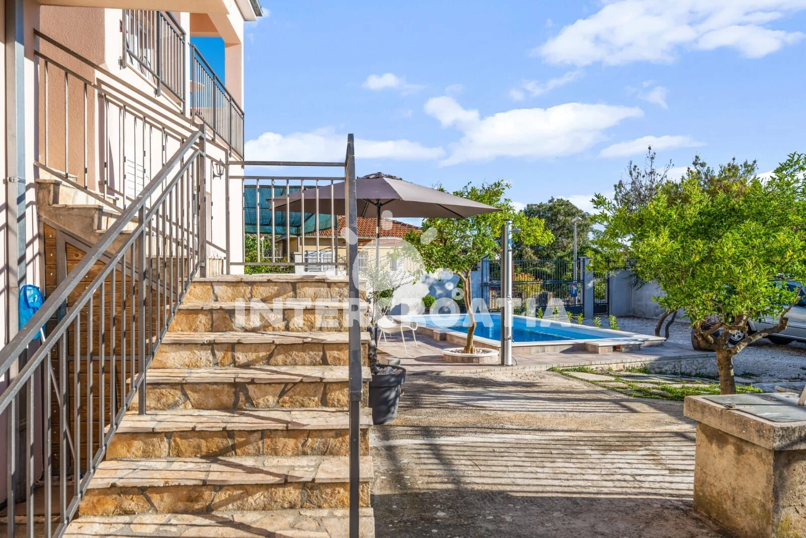 Vzdálenosti: Moře 50 m, pláž 150 m (oblázková a betonové desky), bar 20 m, restaurace 20 m, centrum 20 m, směnárna 50 m, supermarket 50 m, veřejná doprava 500 m, pošta 5 km, lékárna 5 km, ambulance 5 km, banka 10 km, čerpací stanice 10 km, letiště (Split) 40 km, trajekt (Šibenik) 45 km,