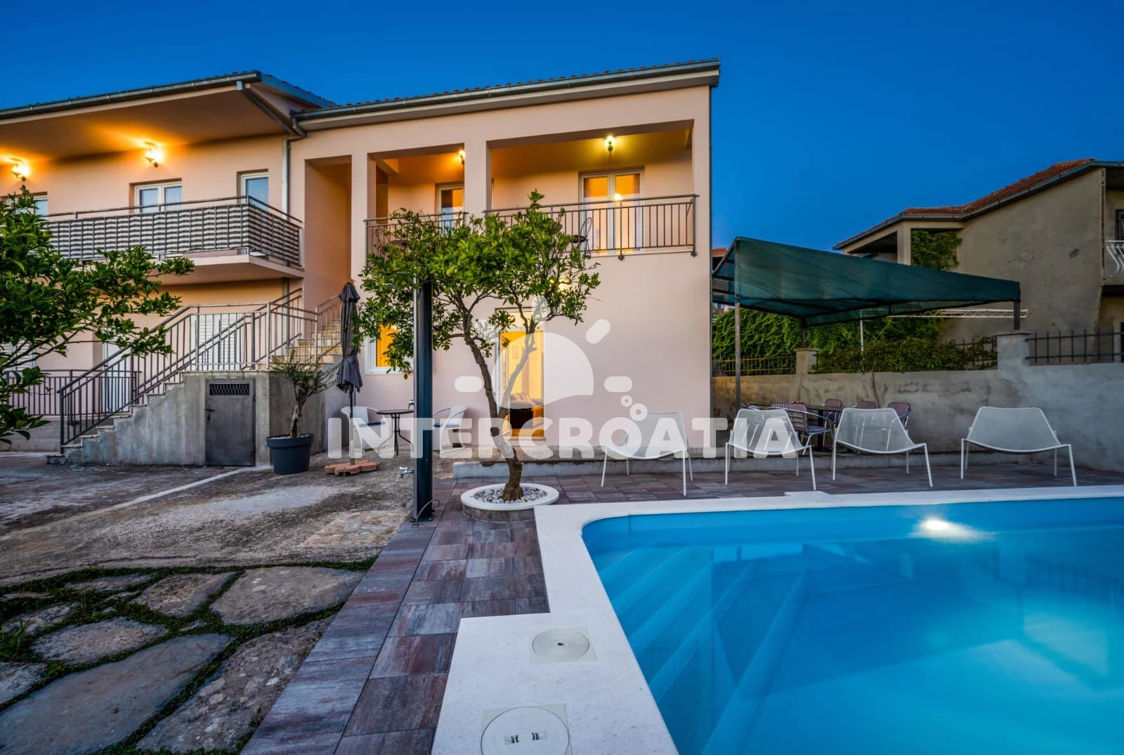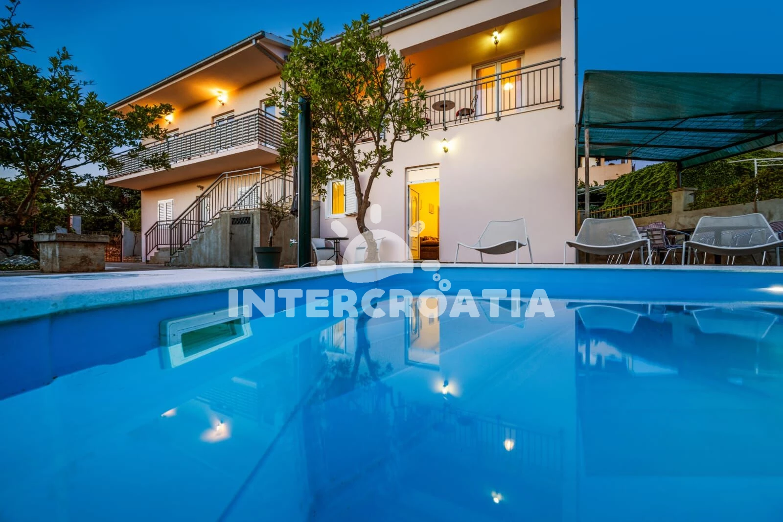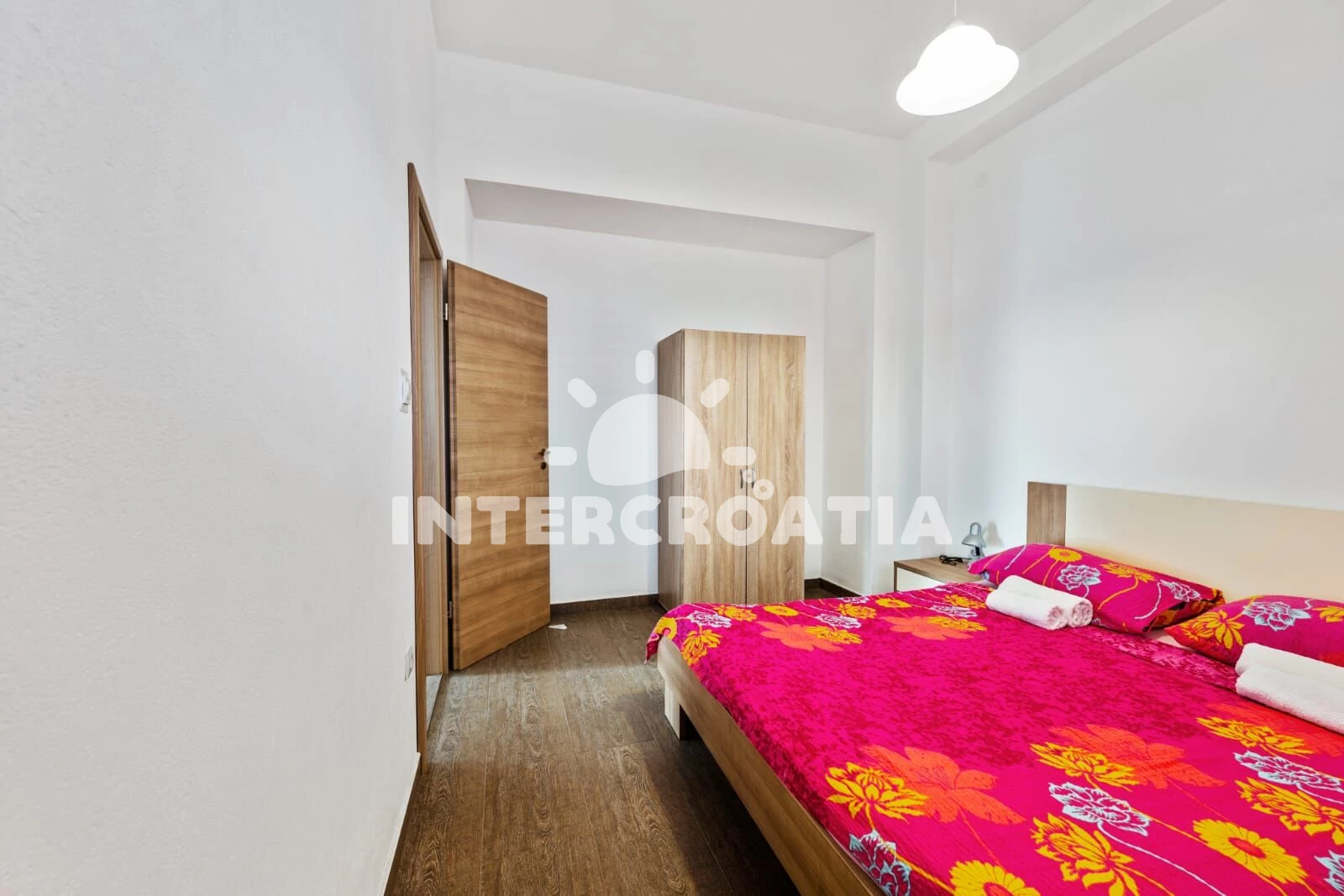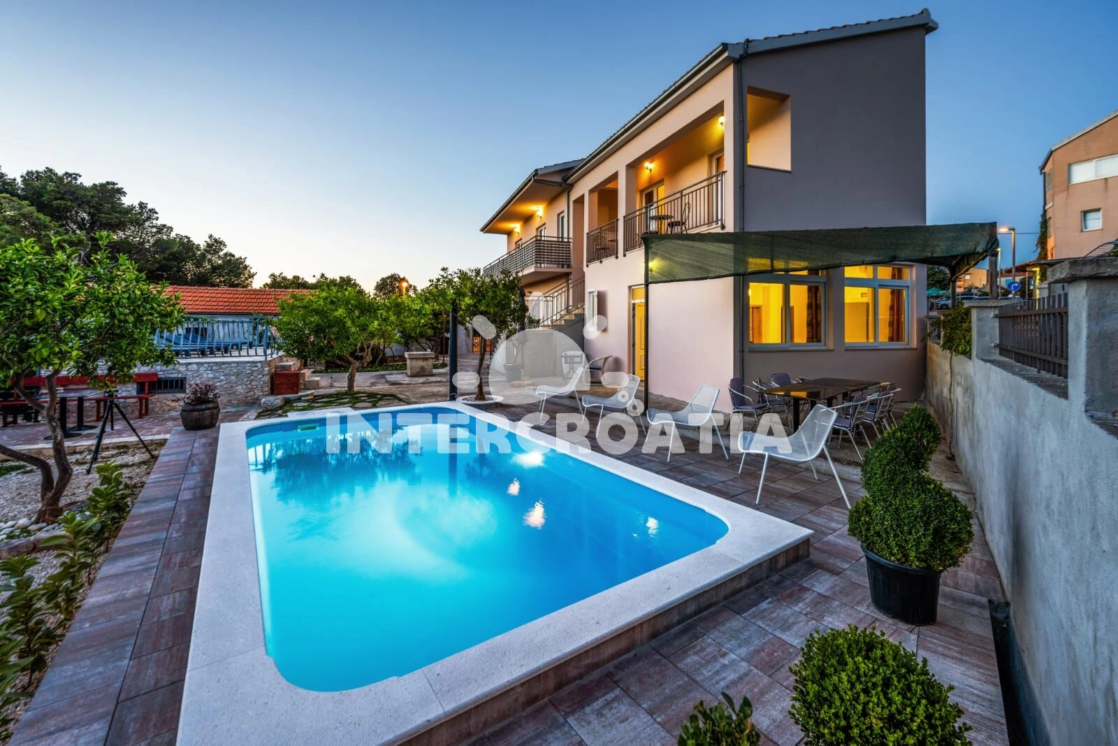 Vzdálenosti: Moře 50 m, pláž 150 m (oblázková a betonové desky), bar 20 m, restaurace 20 m, centrum 20 m, směnárna 50 m, supermarket 50 m, veřejná doprava 500 m, pošta 5 km, lékárna 5 km, ambulance 5 km, banka 10 km, čerpací stanice 10 km, letiště (Split) 40 km, trajekt (Šibenik) 45 km,