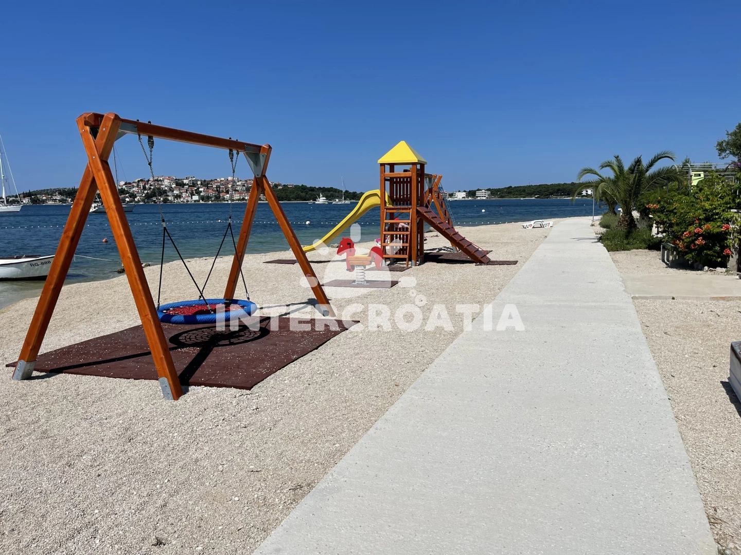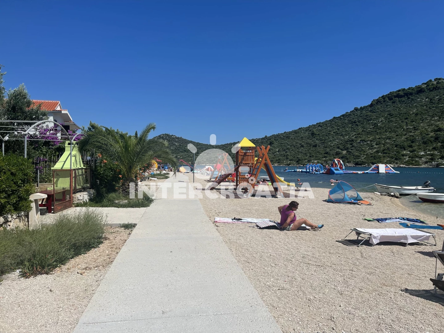 Vzdálenosti: Moře 100 m, pláž 500 m (písčitá a oblázková), supermarket 350 m, lékárna 2,5 km, směnárna 2,5 km, restaurace 2,5 km, centrum 3,0 km, ambulance 3 km, pošta 3 km, bar 3 km,