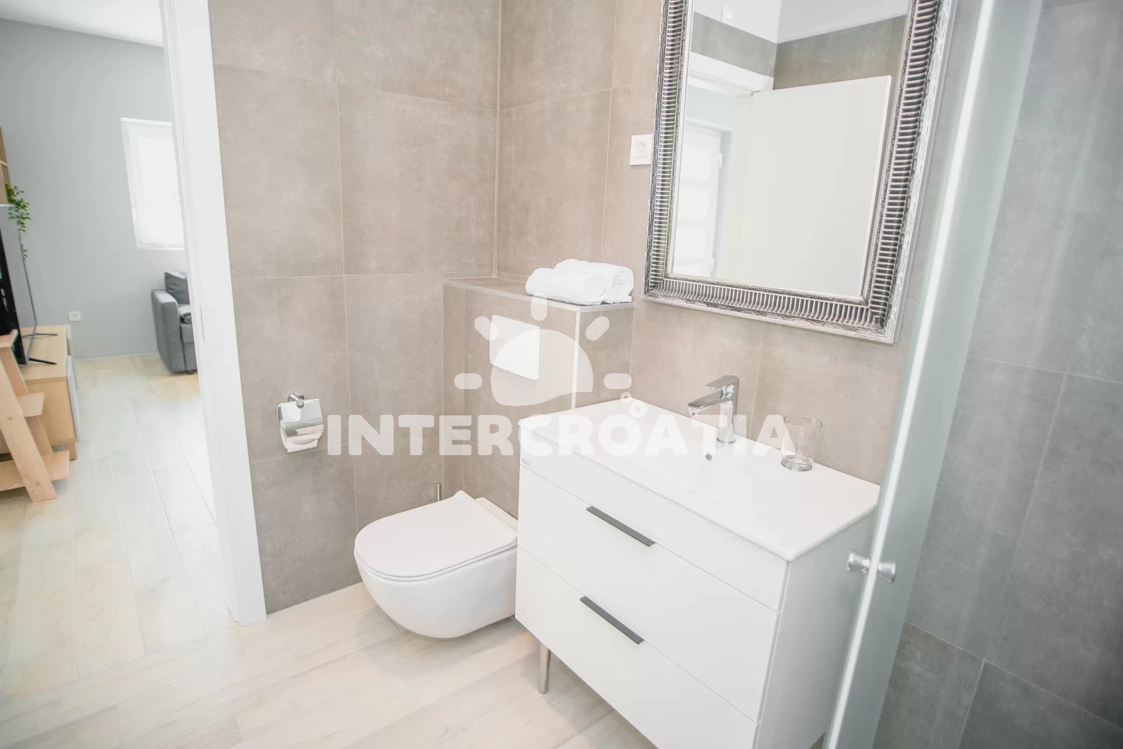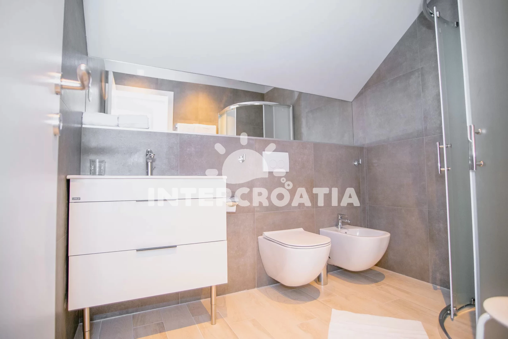 Vzdálenosti: Moře 47 km, pláž 47 km (oblázková a betonové desky), centrum 300 m, banka 500 m, ambulance 500 m, lékárna 500 m, restaurace 500 m, veřejná doprava 500 m, čerpací stanice 500 m, pošta 500 m, supermarket 500 m, park Plitvice 50 km, letiště (Zadar) 70 km,
