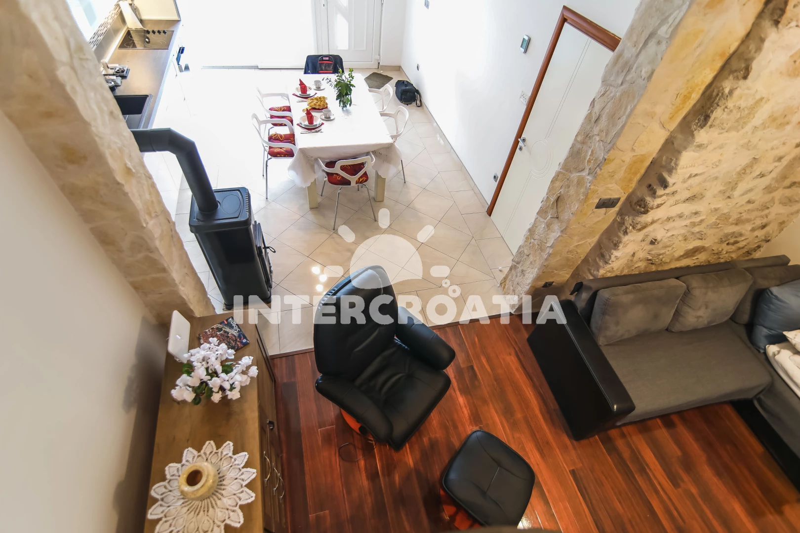 Vzdálenosti: Moře 500 m, pláž 1,3 km (oblázky), supermarket 200 m, bar 200 m, veřejná doprava 200 m, směnárna 200 m, centrum 200 m, restaurace 200 m, lékárna 400 m, banka 400 m, pošta 500 m, čerpací stanice 600 m, ambulance 600 m, park Plitvice 12 km, letiště (Split) 60 km, trajekt (Split) 90 km,