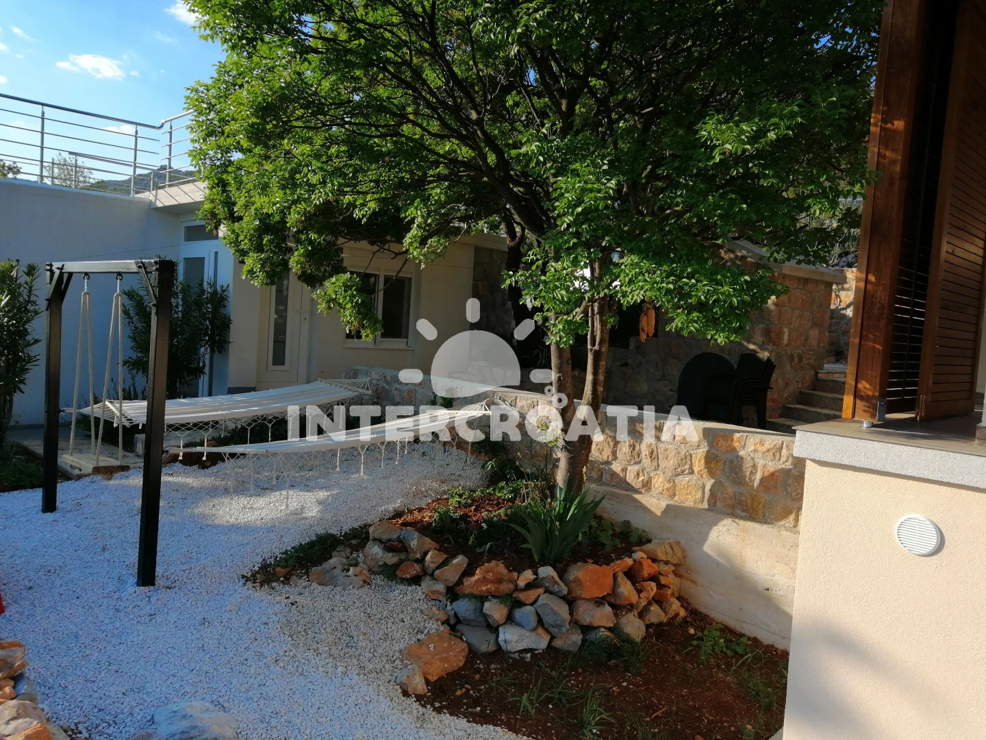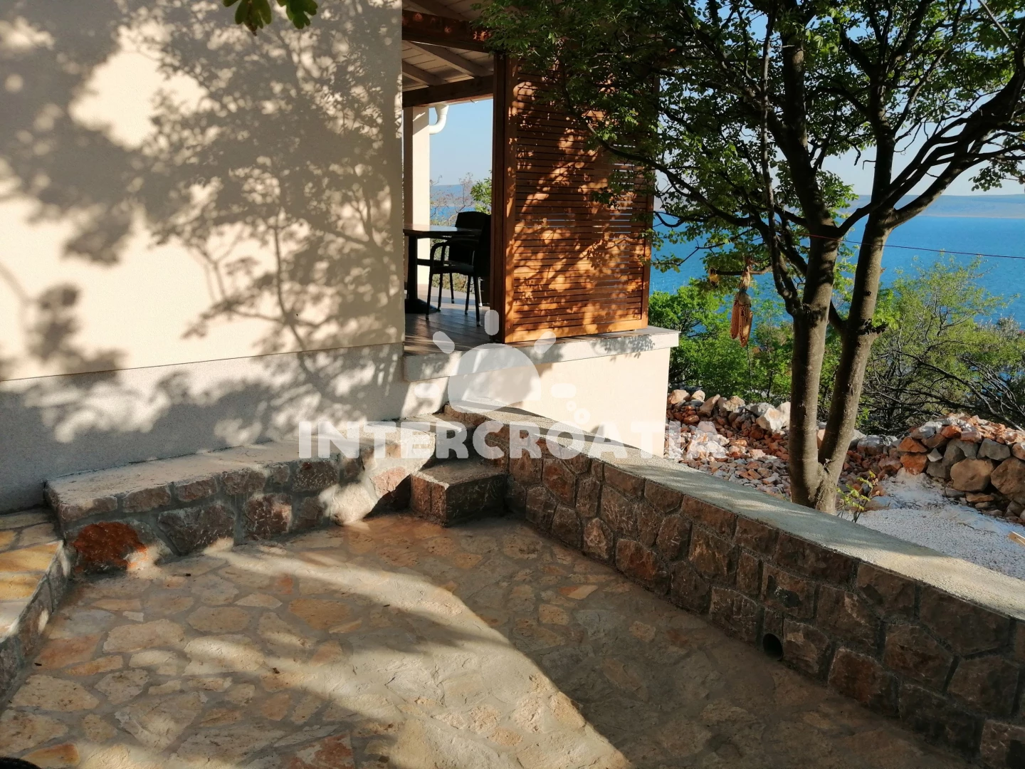 Domek se nachází 160 m od moře a pláže. Pláž je skalnatá a větší kamení. U objektu je k dispozici společná zahrada s posezením a grilem. Parkování je před domem.