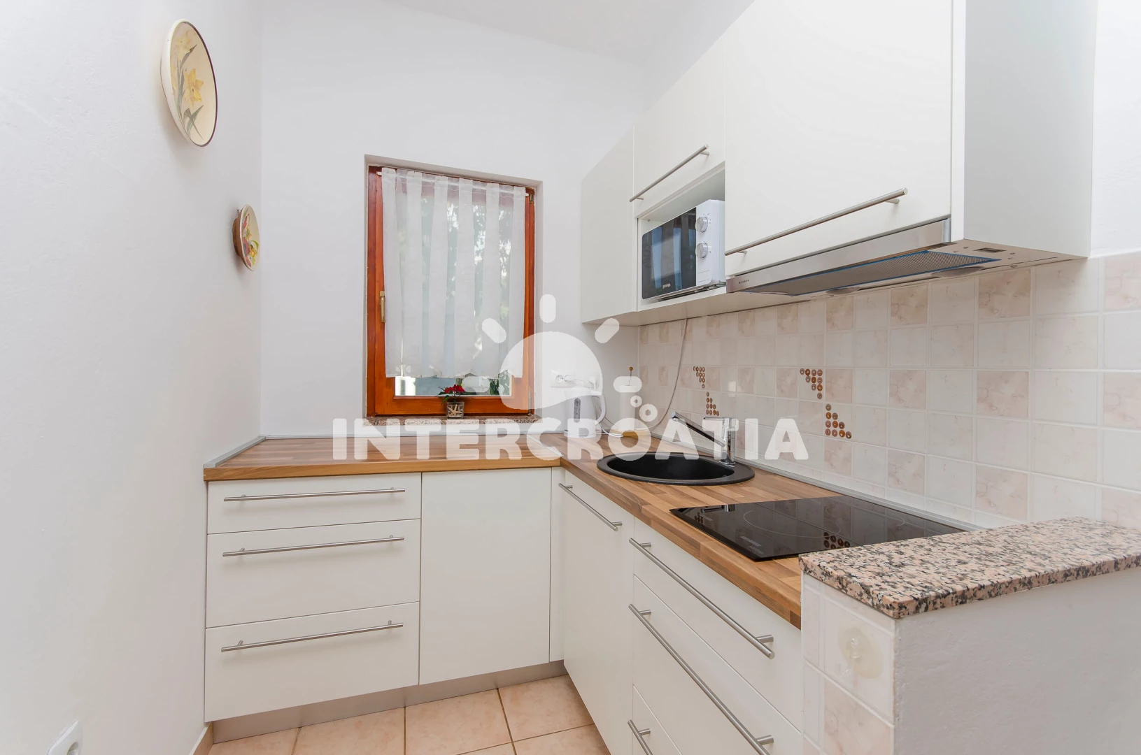 Vzdálenosti: Moře 160 m, pláž 300 m (větší kamení), kotviště pro čluny 160 m, centrum 200 m, marina 200 m, supermarket 200 m, restaurace 200 m, bar 200 m, veřejná doprava 250 m, půjčovna motorových člunů 250 m, půjčovna kol 500 m, pošta 700 m, tenisové kurty 1,5 km, mini golf 1,5 km, ambulance 1,5 km, čerpací stanice 1,5 km, park Plitvice 1,5 km, lékárna 1,5 km, diskotéka 2 km,