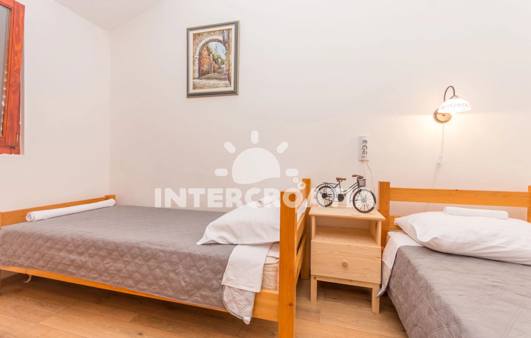 Vzdálenosti: Moře 40 m, pláž 40 m (písek), centrum 10 m, restaurace 20 m, bar 20 m, směnárna 50 m, supermarket 50 m, pošta 50 m, lékárna 200 m, ambulance 200 m, potápění 300 m, veřejná doprava 700 m, marina 3 km, čerpací stanice 3,8 km, trajekt (Biograd) 4,3 km, banka 4,9 km, letiště (Zadar) 25 km, park Plitvice 30 km,