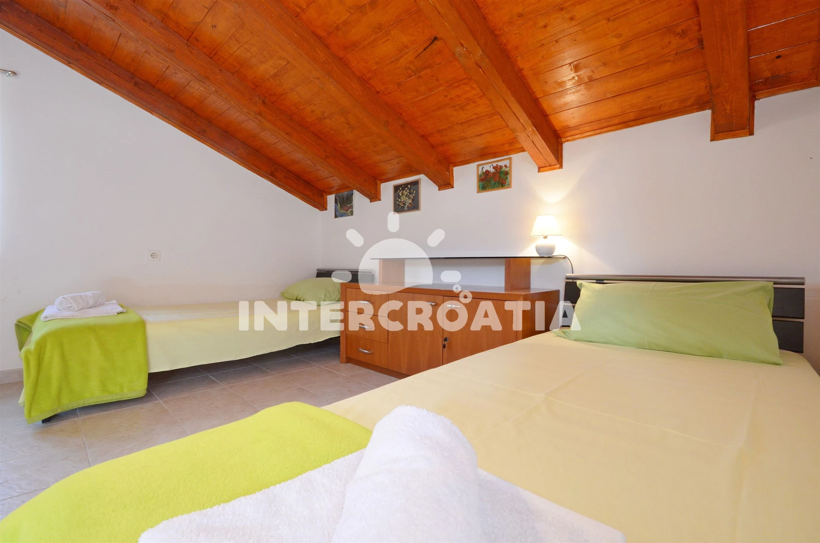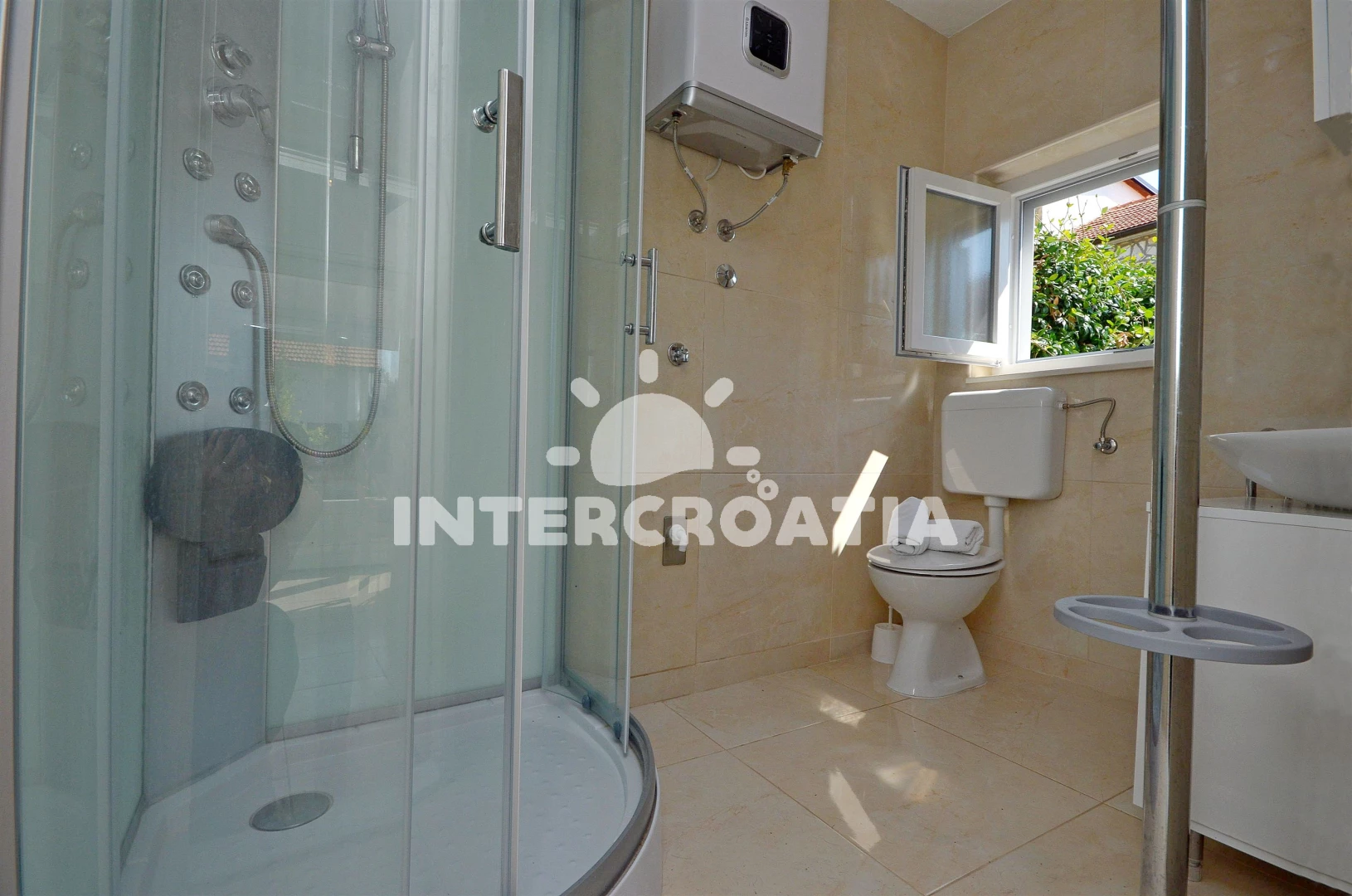 Vzdálenosti: Moře 400 m, pláž 900 m (oblázková a betonové desky), centrum 400 m, supermarket 400 m, bar 500 m, restaurace 500 m, banka 500 m, lékárna 500 m, ambulance 500 m, směnárna 500 m, veřejná doprava 500 m, pošta 501 m, čerpací stanice 3,5 km, letiště (Zadar) 60 km,