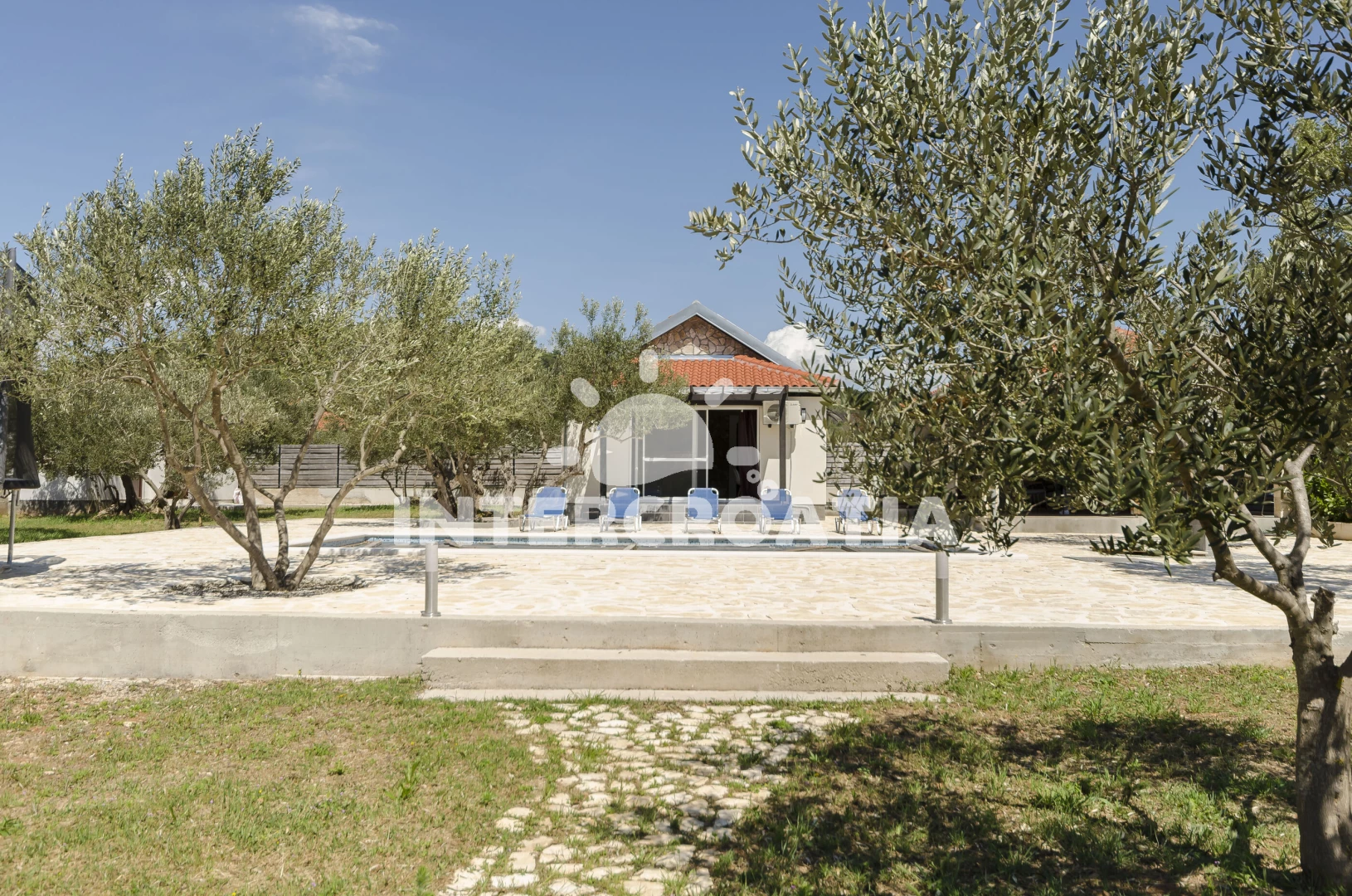 Domek se nachází 3200 m od moře a pláže. Pláž je oblázková a betonové desky. Domek disponuje bazénem s lehátky pro ubytované hosty. U objektu je k dispozici společná zahrada s posezením a grilem.