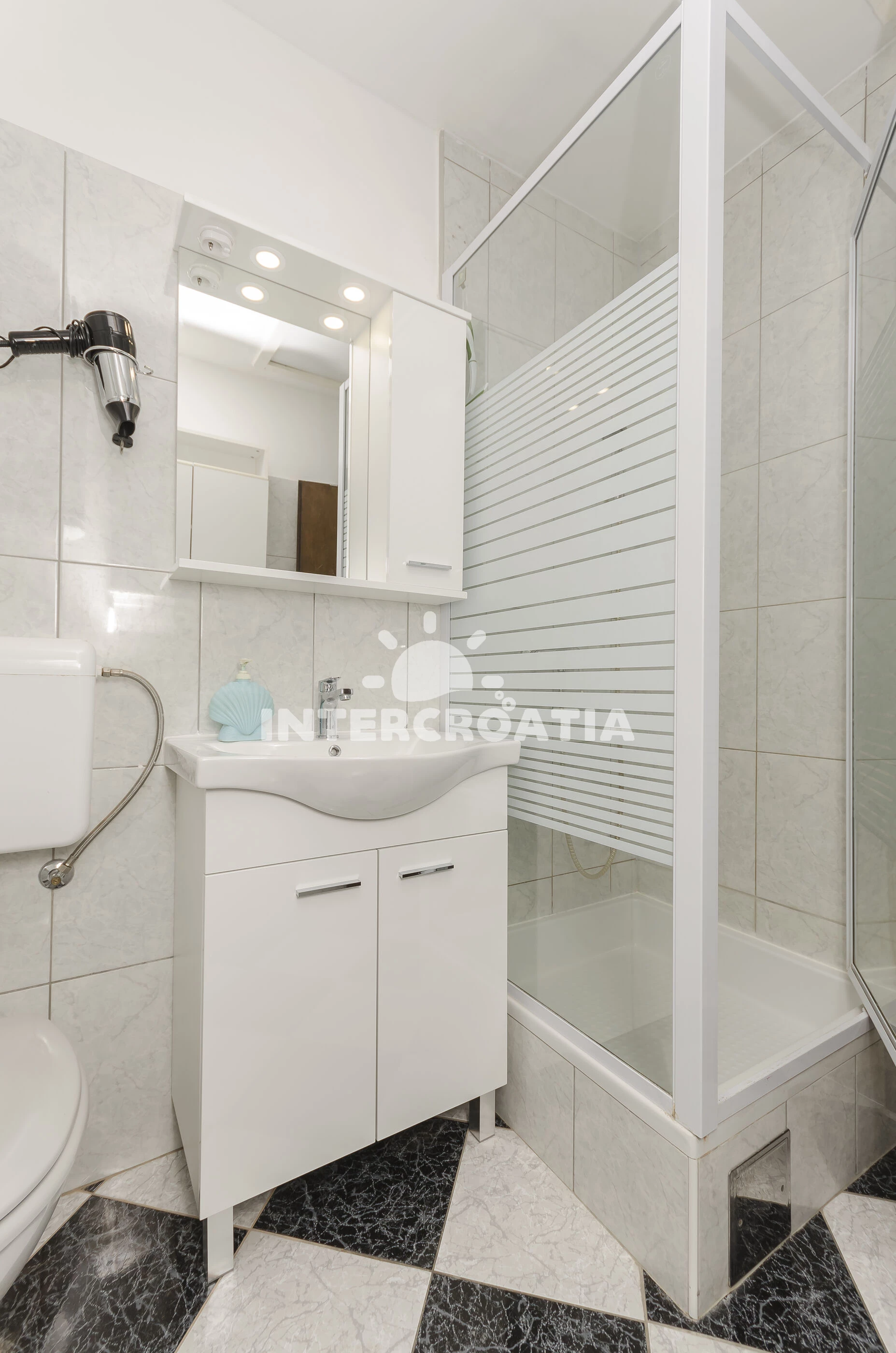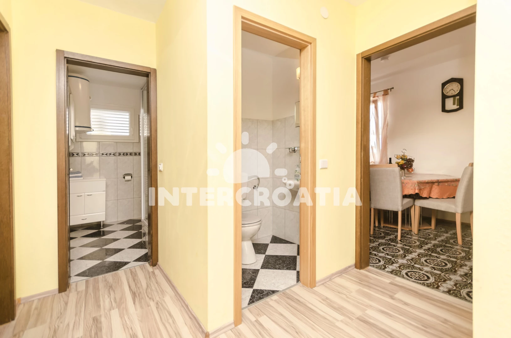 Vzdálenosti: Moře 400 m, pláž 500 m (oblázková a betonové desky), restaurace 150 m, bar 250 m, supermarket 290 m, směnárna 500 m, marina 730 m, centrum 800 m, lékárna 800 m, ambulance 800 m, park Plitvice 25 km, letiště (Zadar) 65 km, trajekt (Zadar) 65 km,