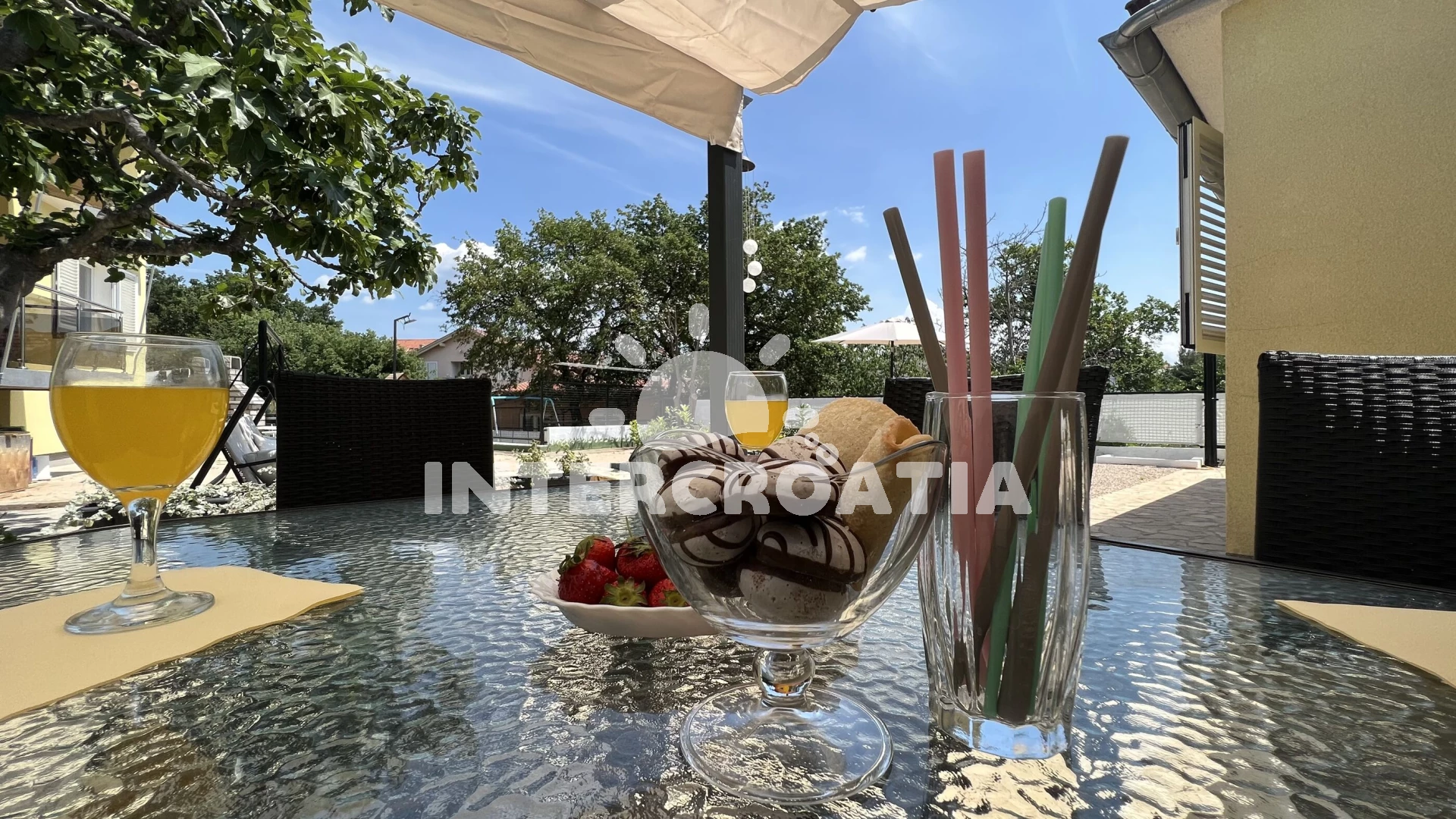 Vzdálenosti: Moře 300 m, pláž 380 m (oblázková a betonové desky), bar 50 m, potápění 50 m, čerpací stanice 250 m, banka 280 m, supermarket 280 m, centrum 280 m, restaurace 280 m, marina 300 m, veřejná doprava 300 m, směnárna 300 m, půjčovna motorových člunů 300 m, ambulance 300 m, lékárna 300 m, pošta 350 m, diskotéka 500 m, park Plitvice 23 km, letiště (Zadar) 69 km, trajekt (Zadar) 89,9 km,