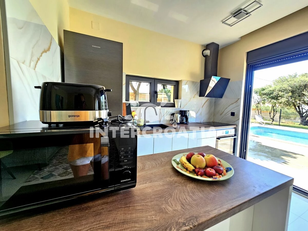 Vzdálenosti: Moře 7 km, pláž 7 km (oblázky), supermarket 1,5 km, centrum 1,5 km, veřejná doprava 1,5 km, bar 1,5 km, restaurace 1,5 km, muzeum 1,5 km, čerpací stanice 6,5 km, půjčovna kol 7 km, ambulance 7 km, směnárna 7 km, lékárna 7 km, půjčovna motorových člunů 7 km, pošta 7 km, trajekt (Biograd) 10 km, mini golf 11 km, diskotéka 12 km, banka 12 km, marina 12 km, potápění 12 km, tenisové kurty 12 km, letiště (Zadar) 35 km, park Plitvice 40 km,