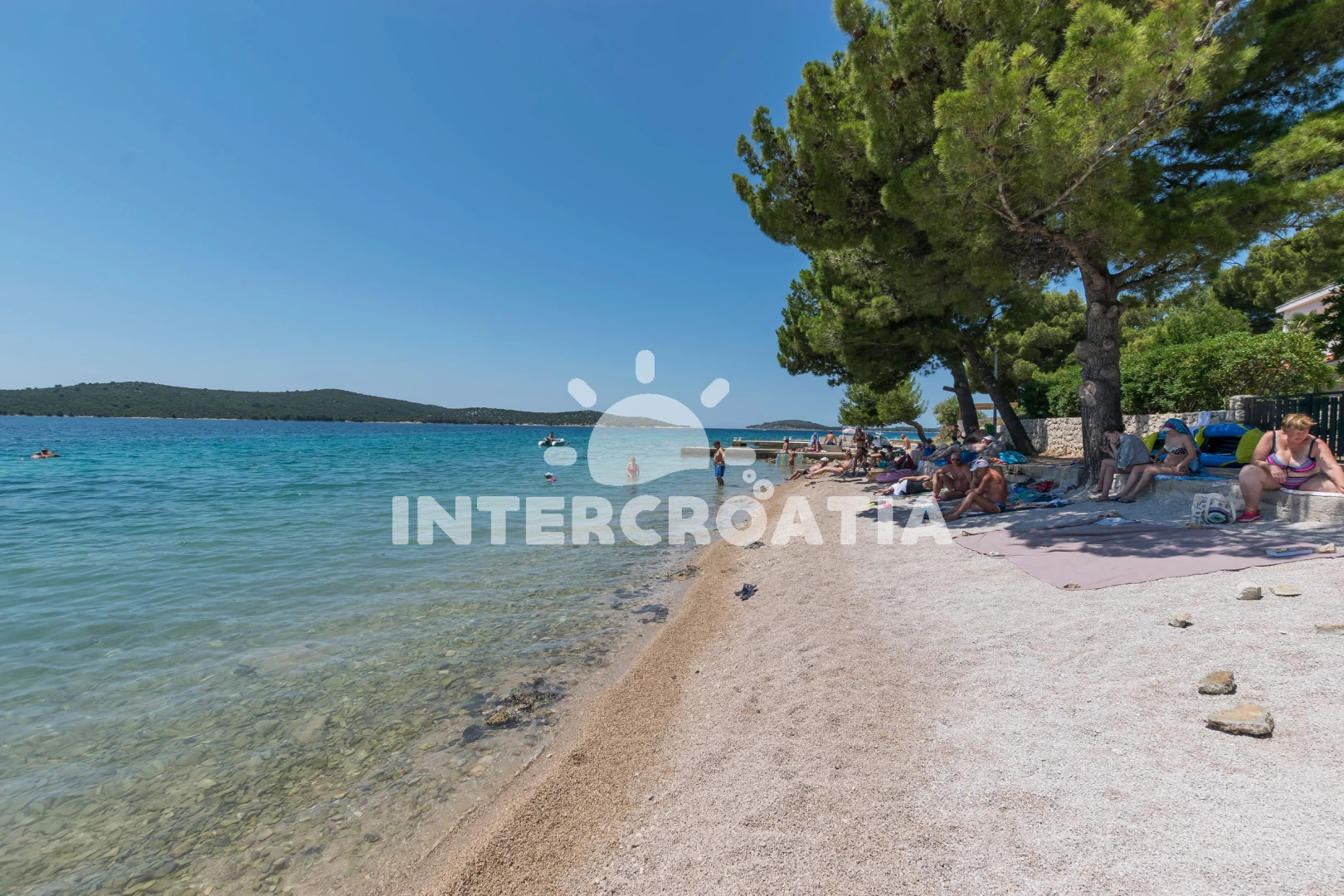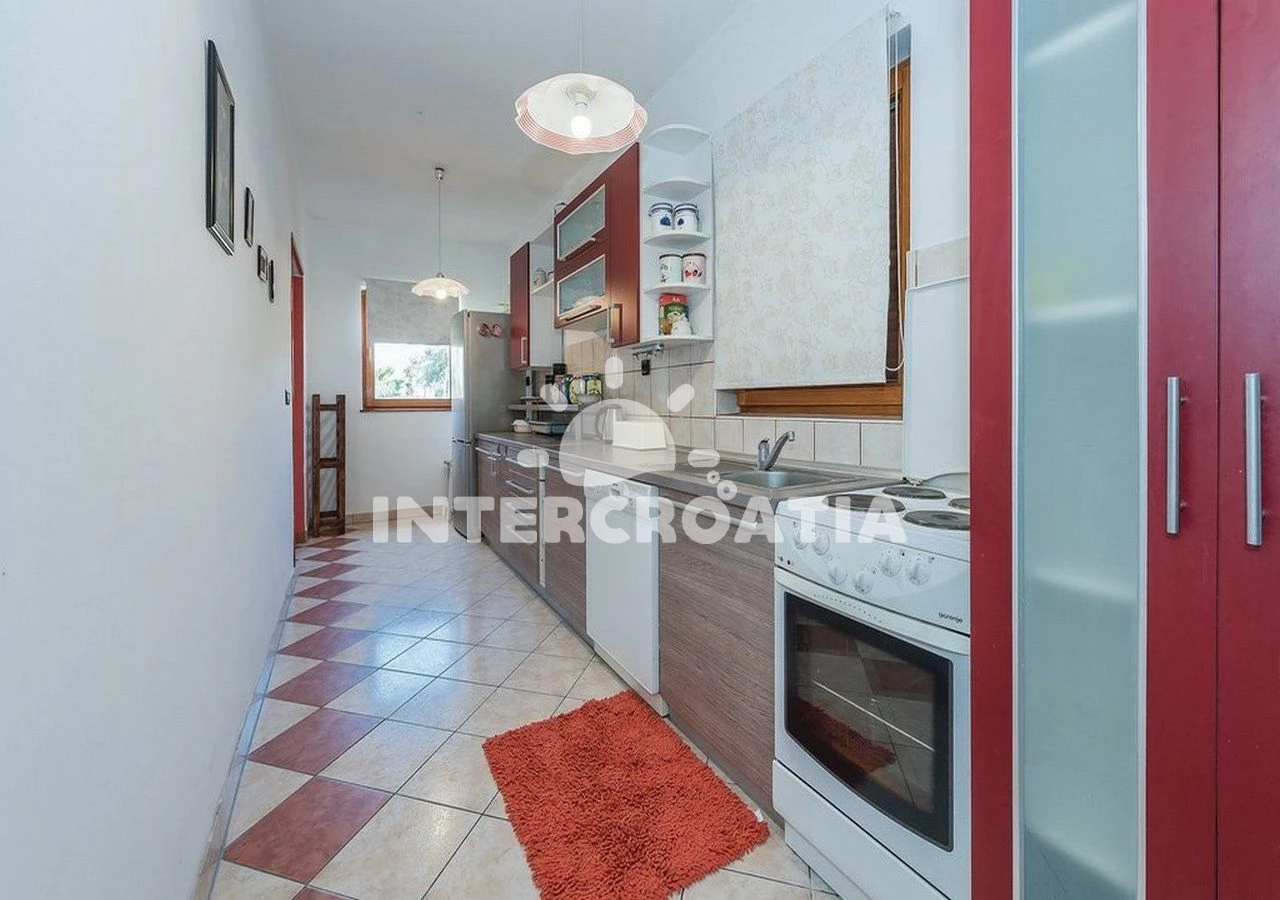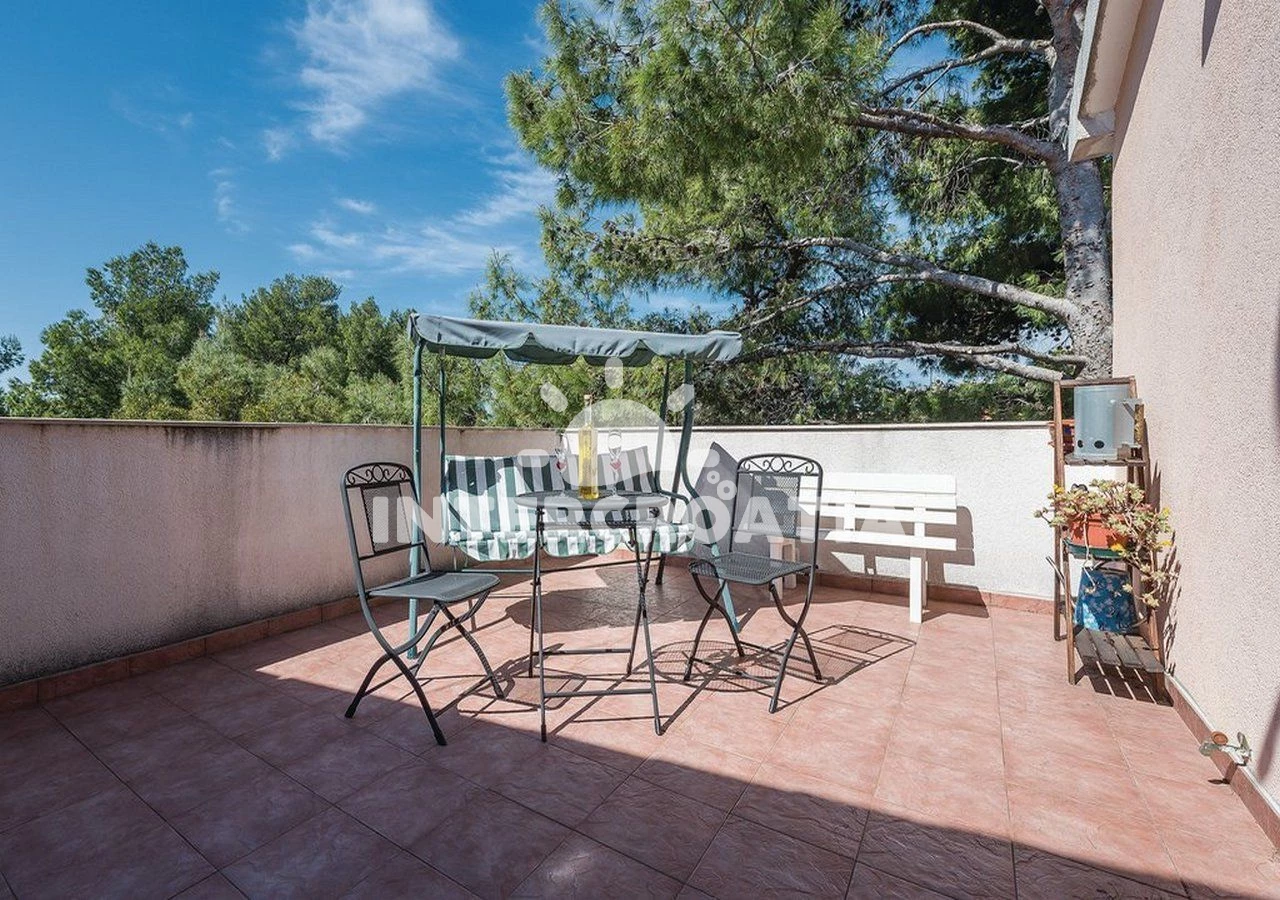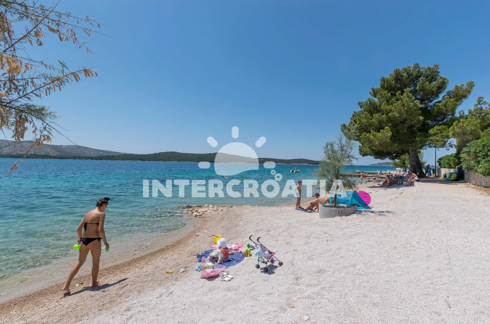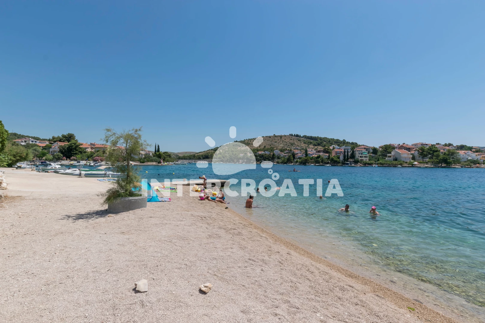 Vzdálenosti: Moře 80 m, pláž 200 m (oblázková a betonové desky), bar 200 m, veřejná doprava 200 m, restaurace 200 m, tenisové kurty 200 m, centrum 500 m, supermarket 500 m, ambulance 2 km, potápění 2 km, pošta 2 km, půjčovna motorových člunů 2 km, směnárna 2 km, půjčovna kol 2 km, lékárna 7 km, čerpací stanice 8 km, mini golf 8 km, banka 10 km, diskotéka 10 km, muzeum 10 km, letiště (Split) 50 km, trajekt (Split) 50,0 km,