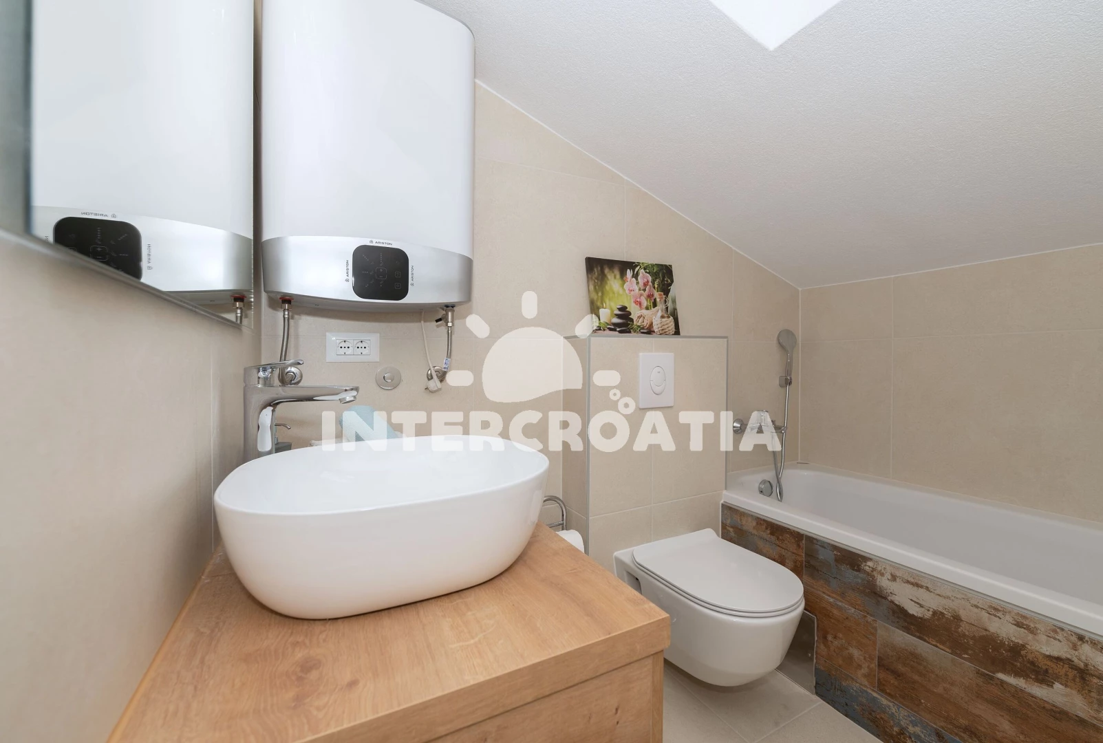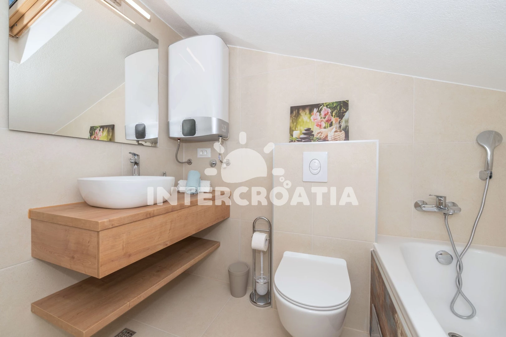 Vzdálenosti: Moře 5 m, pláž 10 m (oblázky), restaurace 10 m, centrum 10 m, bar 10 m, supermarket 20 m, marina 1,5 km, veřejná doprava 1,5 km, směnárna 2 km, lékárna 5 km, banka 5 km, mini golf 5 km, čerpací stanice 5 km, ambulance 5 km, tenisové kurty 5 km, půjčovna motorových člunů 5 km, potápění 5 km, půjčovna kol 5 km, diskotéka 5 km, muzeum 5 km, pošta 5 km, trajekt (Split) 60 km,