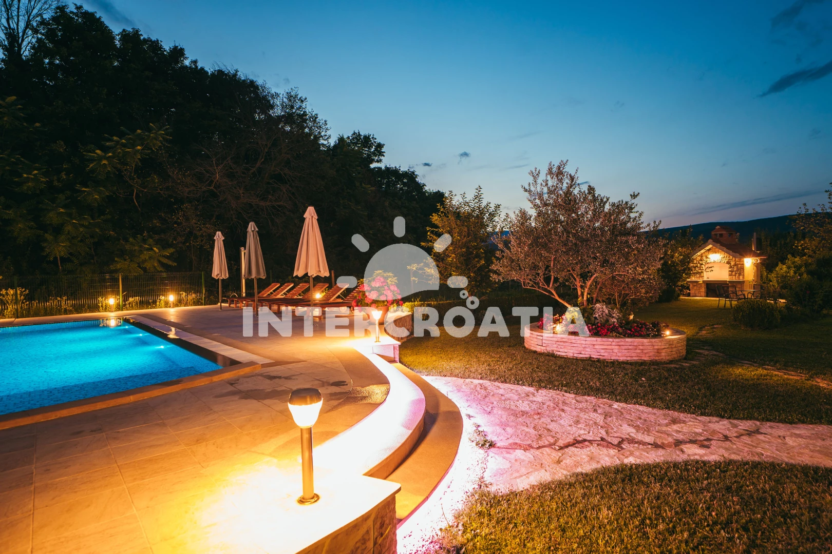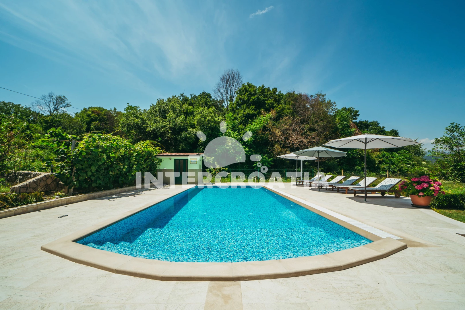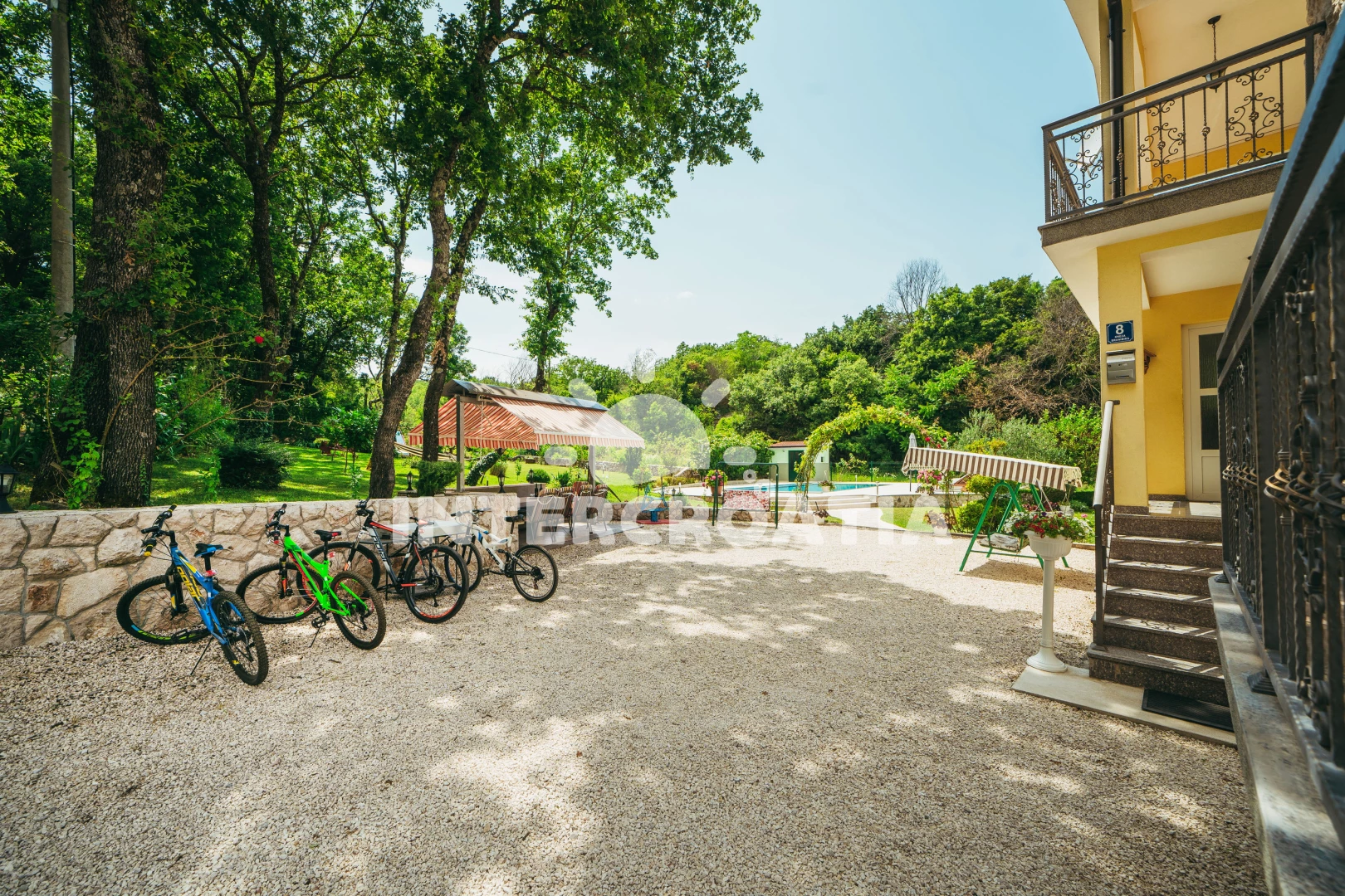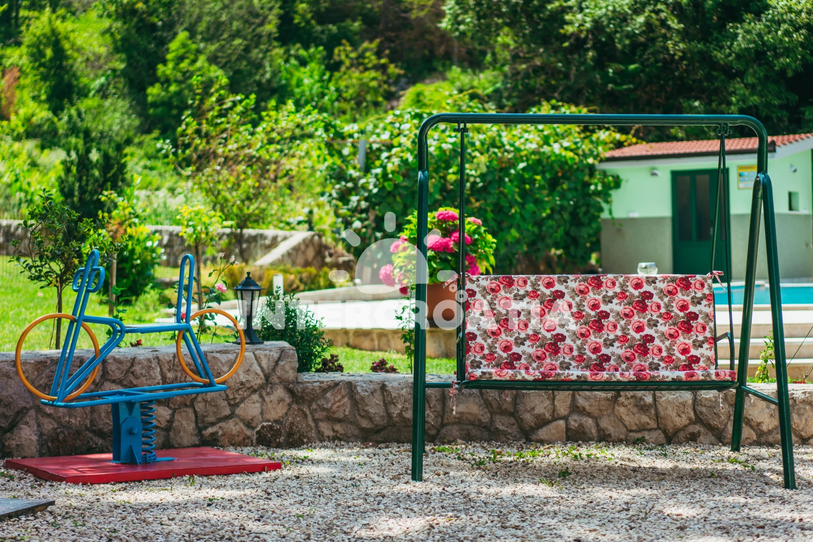Domek se nachází 22000 m od moře a pláže. Pláž je písčitá, oblázková a skalnatá. Domek disponuje bazénem s lehátky pro ubytované hosty. U objektu je k dispozici společná zahrada s posezením a grilem.