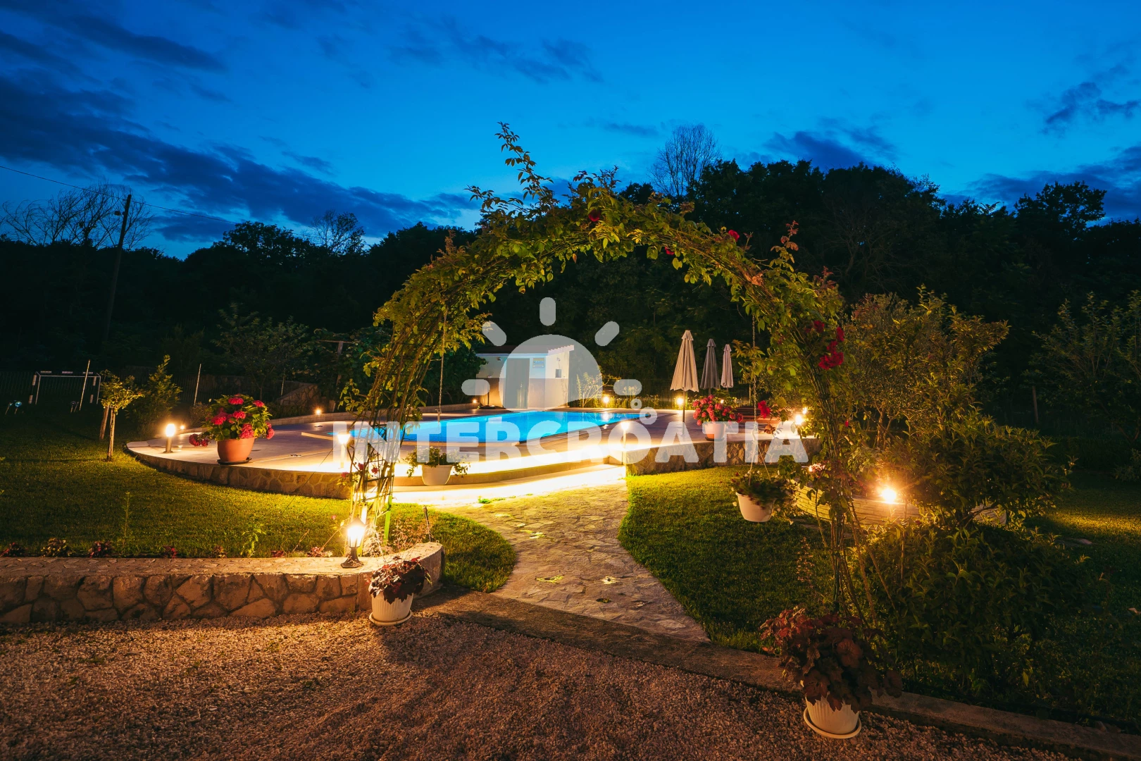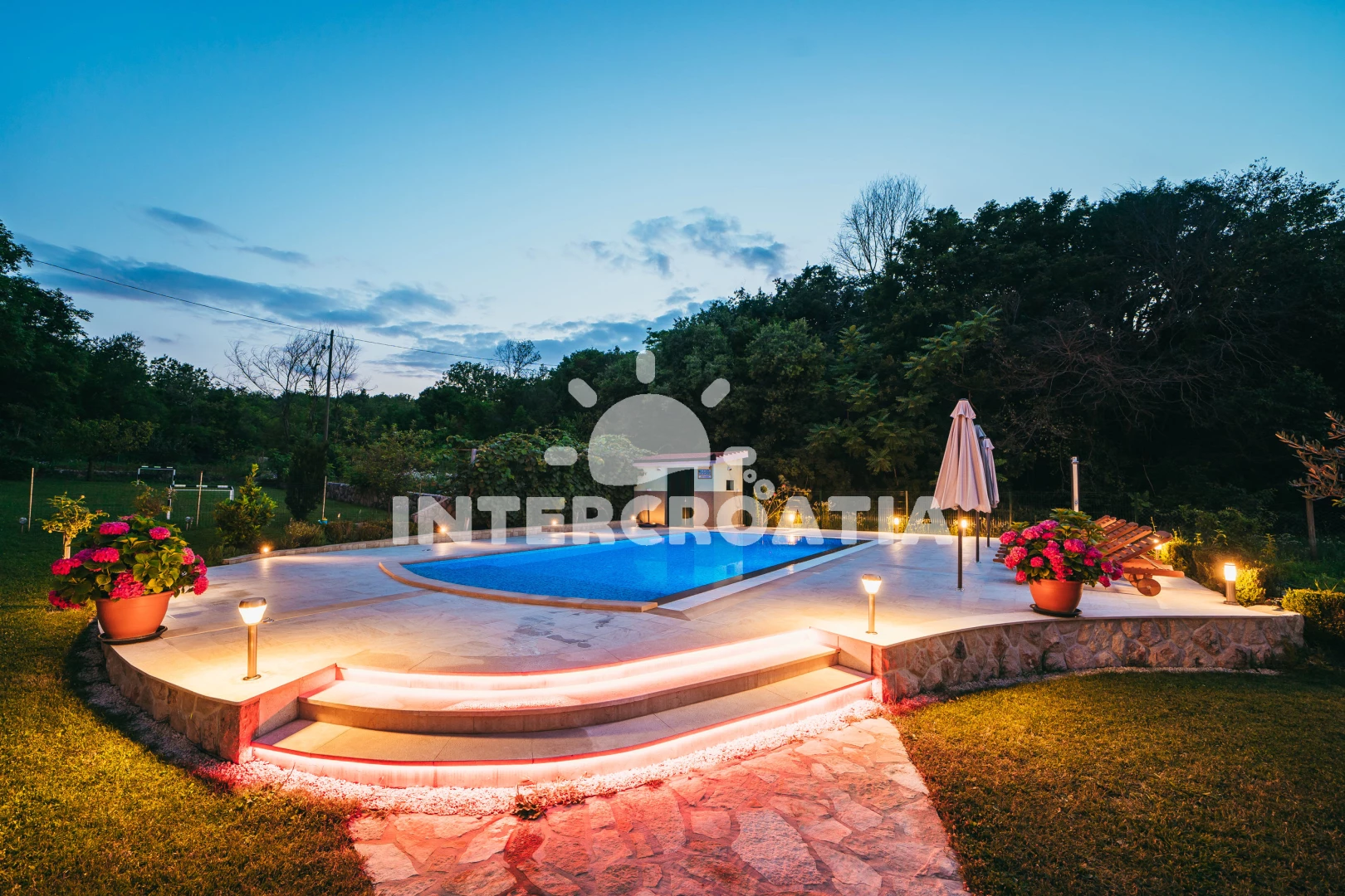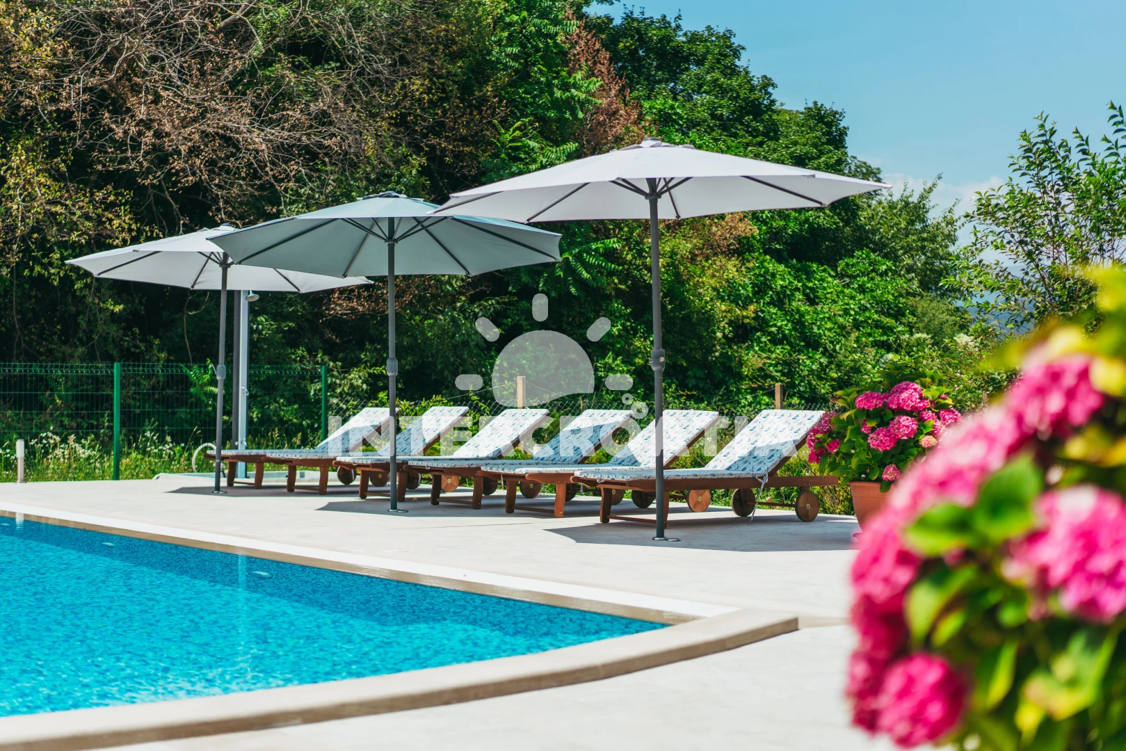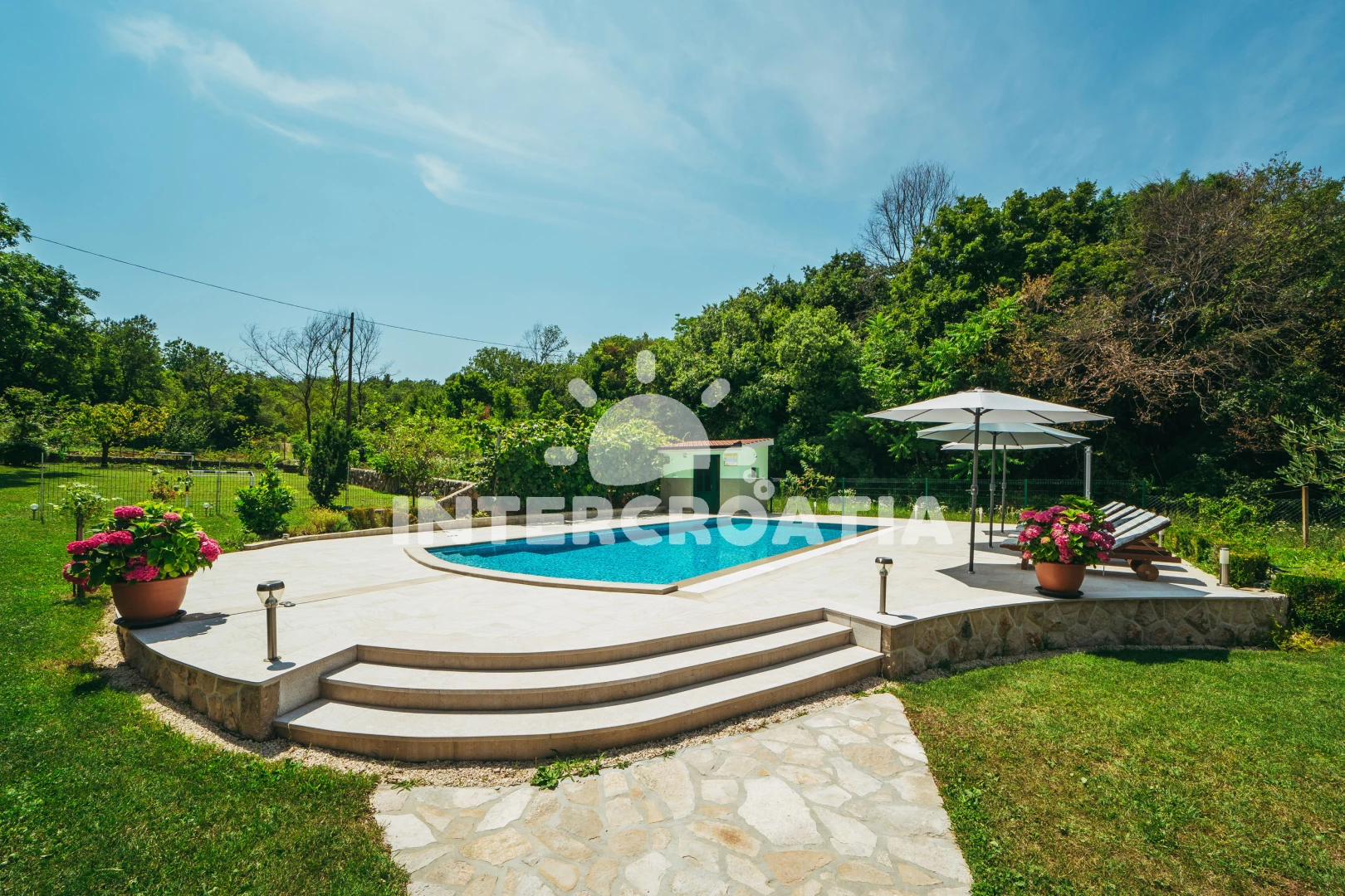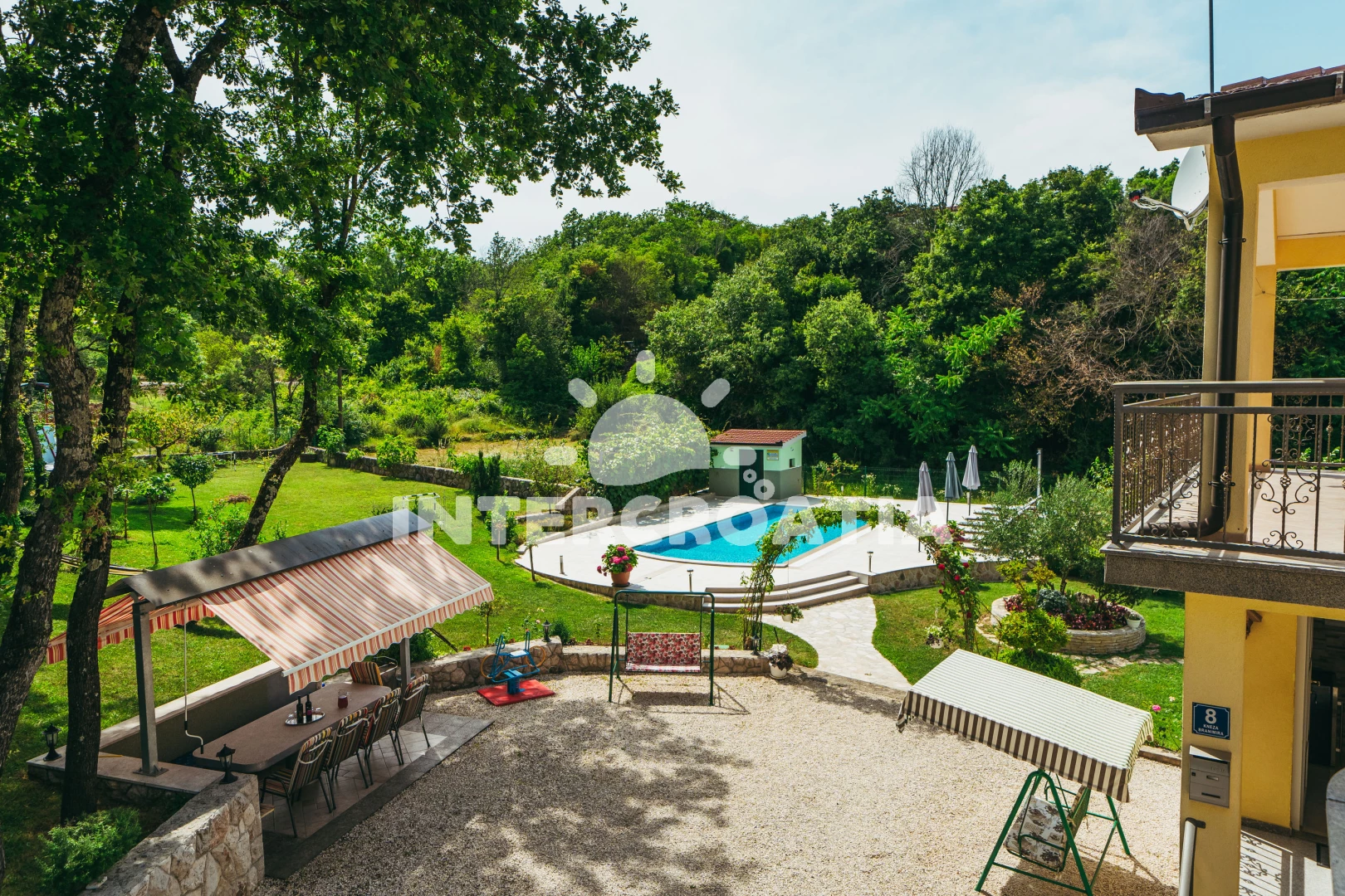 Domek se nachází 22000 m od moře a pláže. Pláž je písčitá, oblázková a skalnatá. Domek disponuje bazénem s lehátky pro ubytované hosty. U objektu je k dispozici společná zahrada s posezením a grilem.
