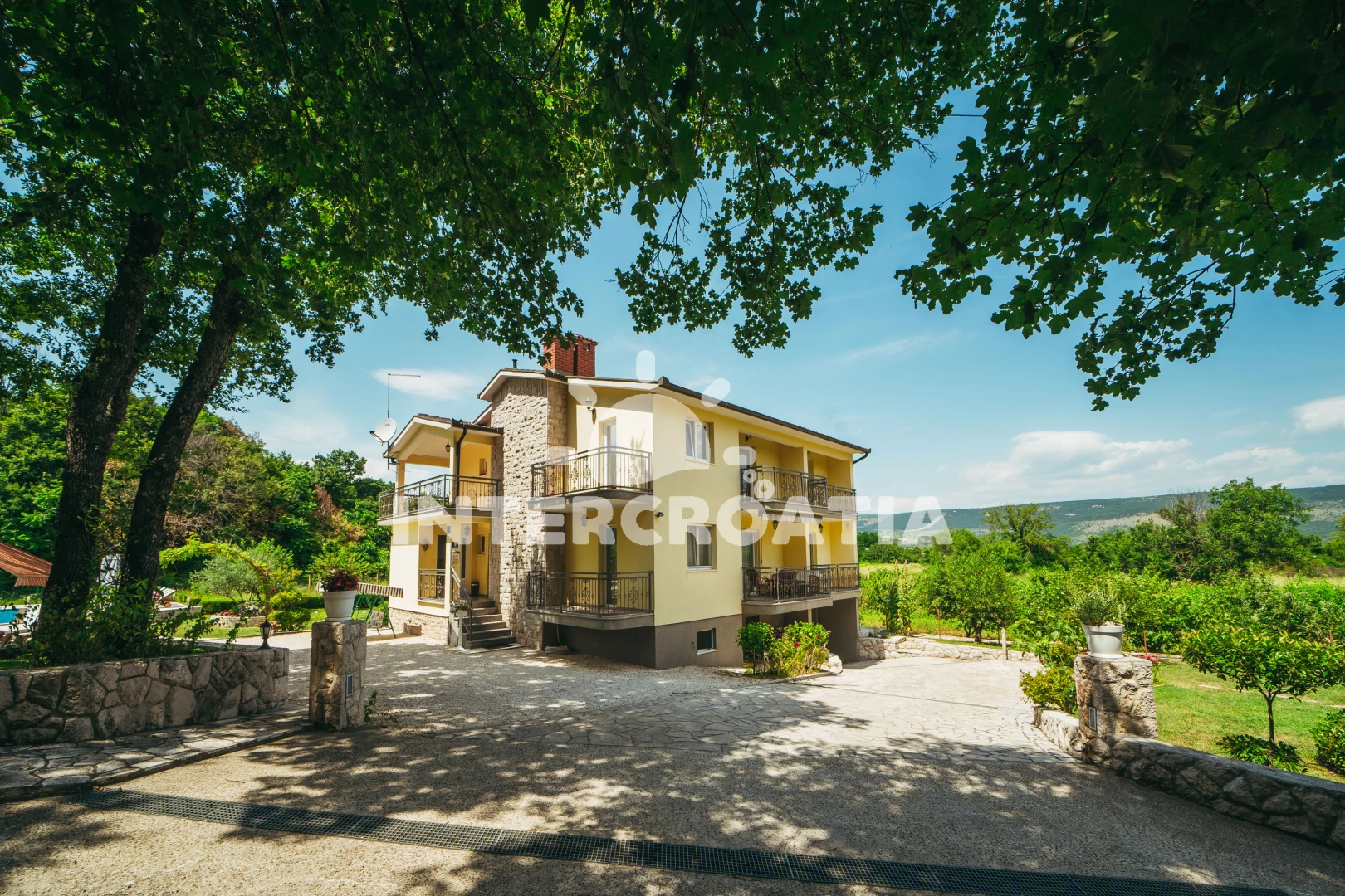 Vzdálenosti: Moře 18 km, pláž 22 km (písčitá, oblázková a skalnatá), veřejná doprava 2 km, supermarket 2 km, bar 2 km, směnárna 3 km, čerpací stanice 3 km, restaurace 3 km, lékárna 3,5 km, ambulance 5 km, pošta 5,5 km, muzeum 5,5 km, diskotéka 5,5 km, půjčovna kol 5,5 km, centrum 5,5 km, banka 6 km, trajekt (Makarska) 30 km, letiště (Split) 90 km,