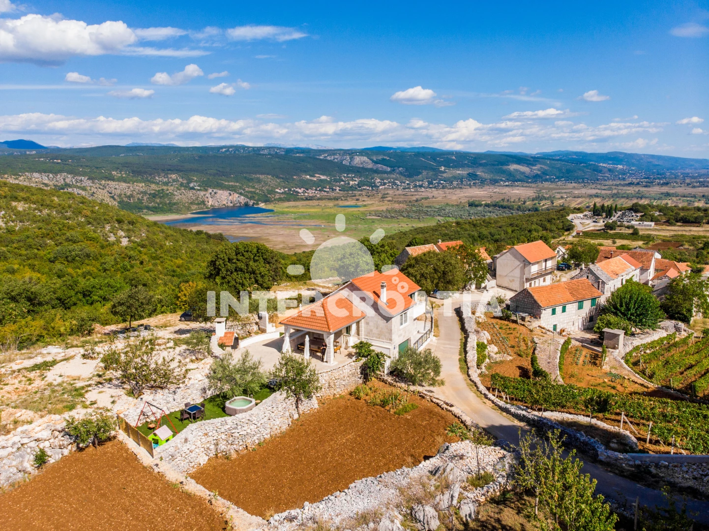 Vzdálenosti: Moře 16 km, pláž 33 km (skály), veřejná doprava 3,2 km, pošta 7,5 km, diskotéka 7,7 km, supermarket 8 km, čerpací stanice 8,5 km, bar 8,8 km, restaurace 10 km, lékárna 10 km, muzeum 11 km, ambulance 11 km, směnárna 12 km, banka 12 km, centrum 15 km, tenisové kurty 31 km, trajekt (Makarska) 45 km, letiště (Split) 79 km, park Plitvice 120 km,