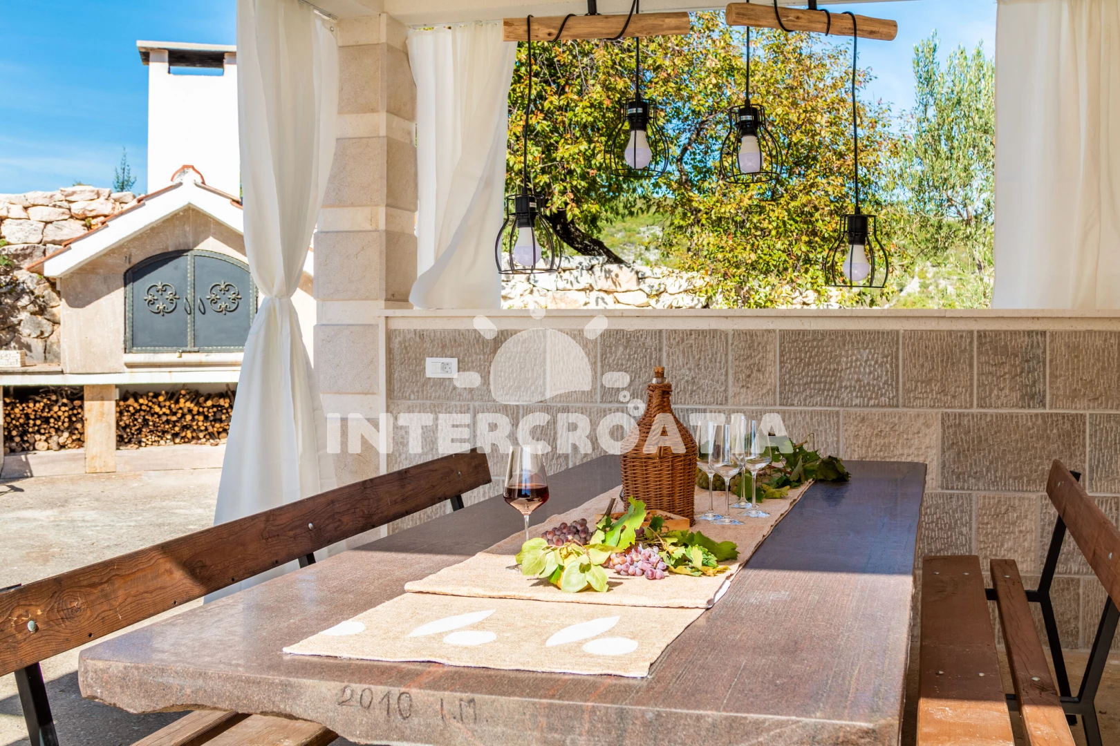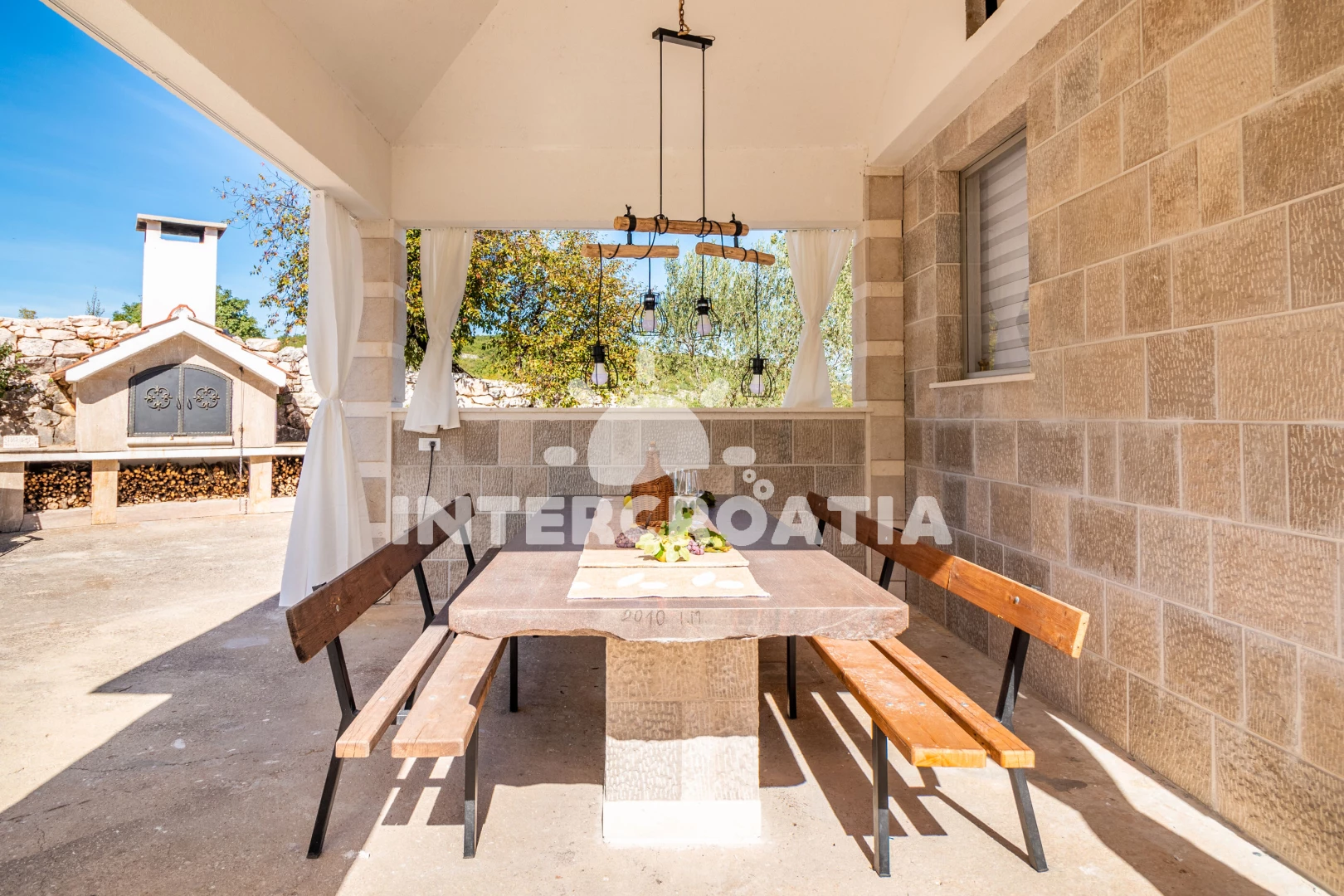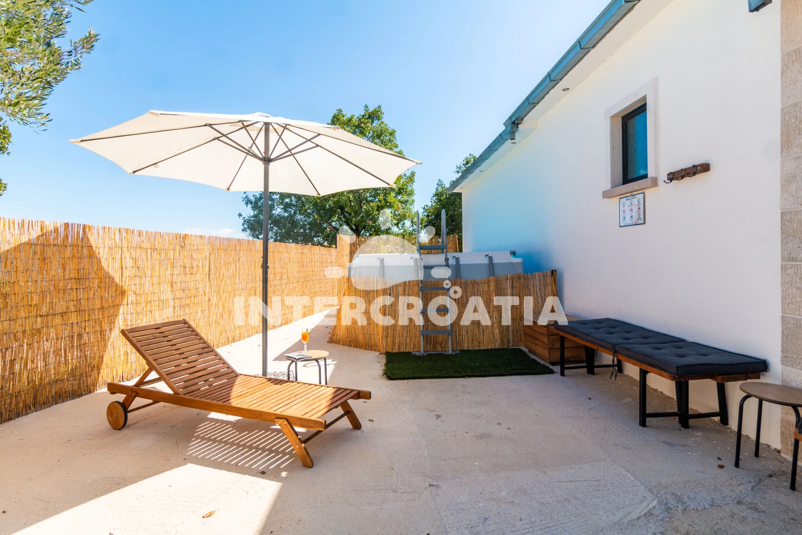 Domek se nachází 33000 m od moře a pláže. Pláž je skály. Domek disponuje bazénem s lehátky pro ubytované hosty. U objektu je k dispozici společná zahrada s posezením a grilem. Parkování je před domem.