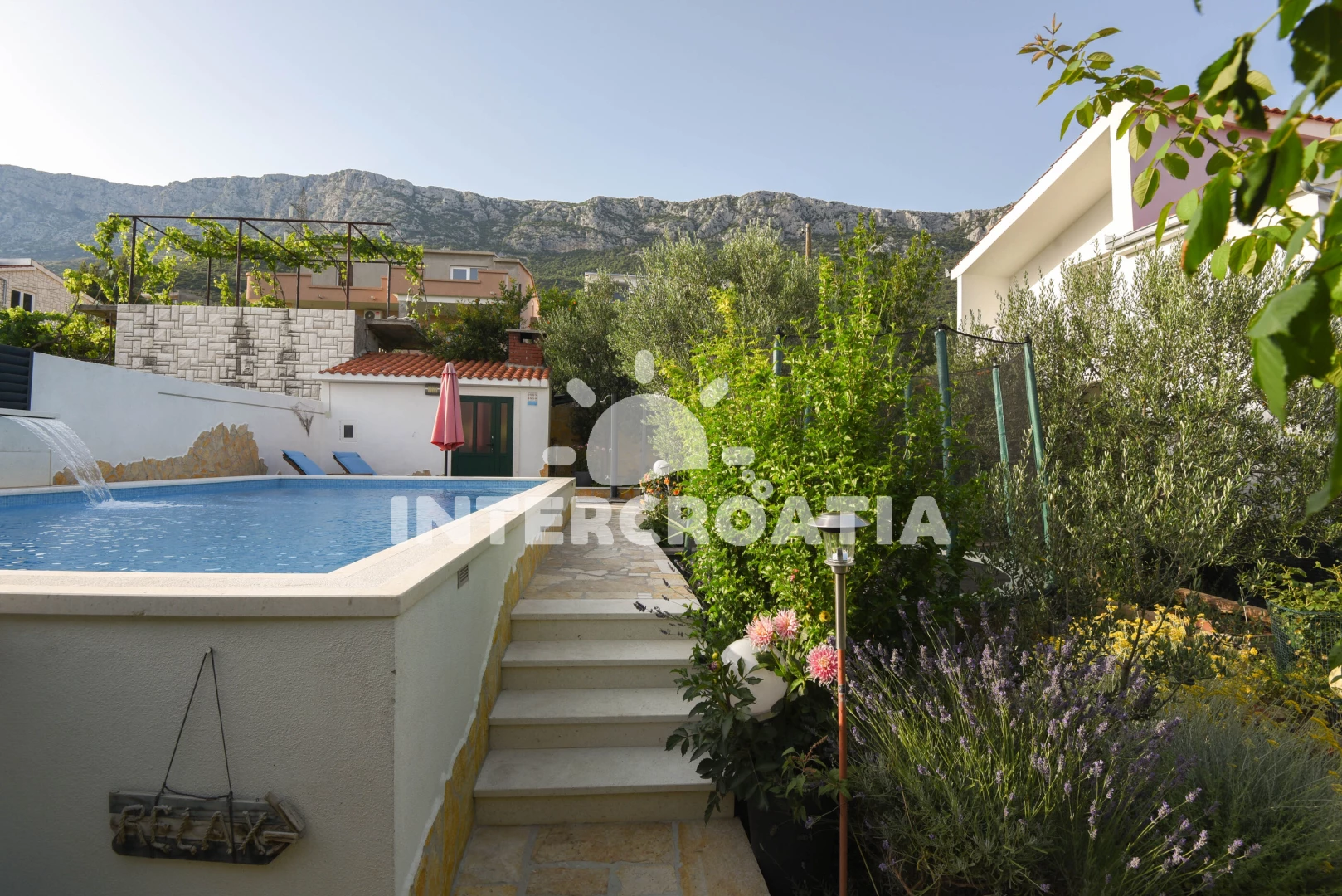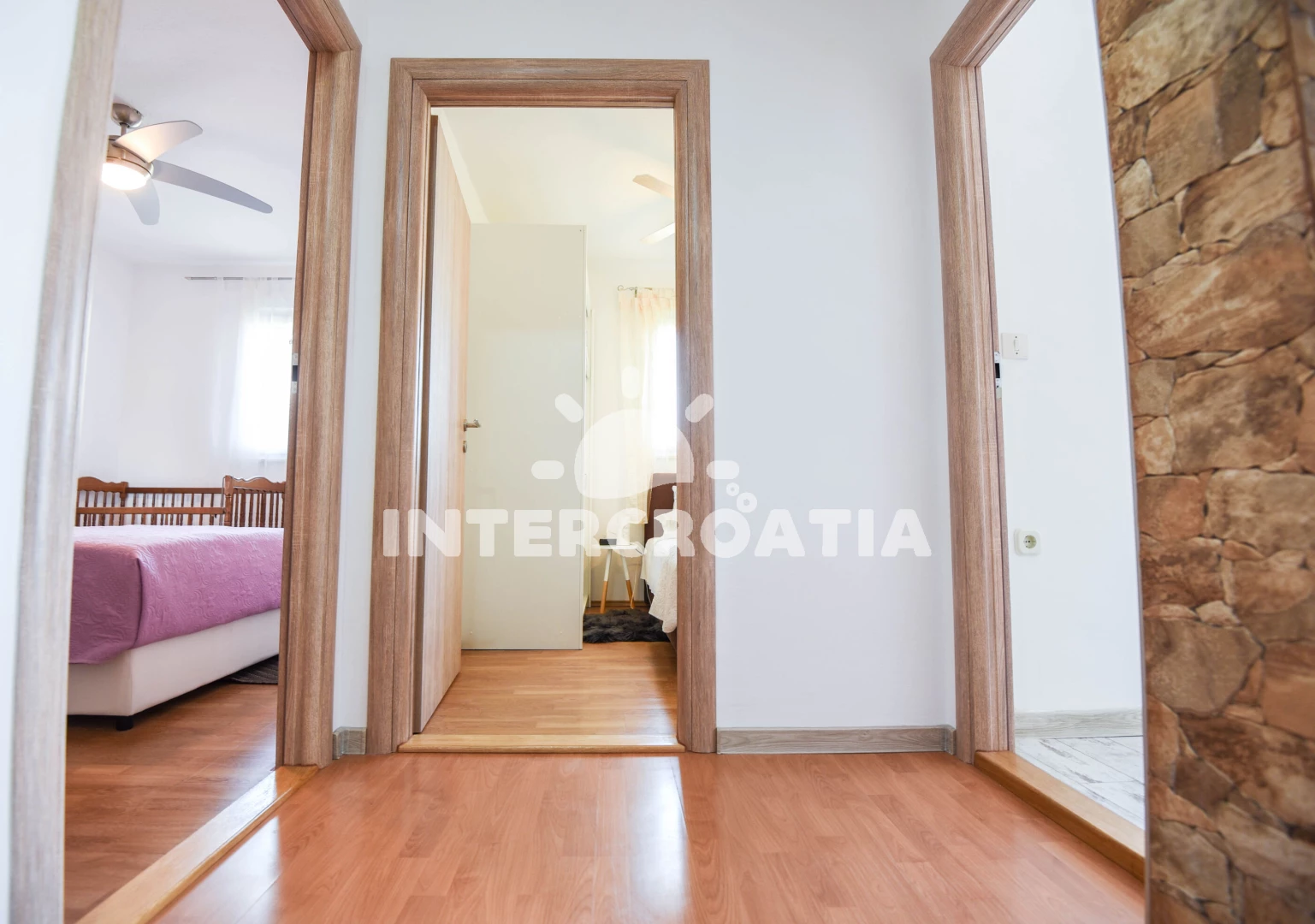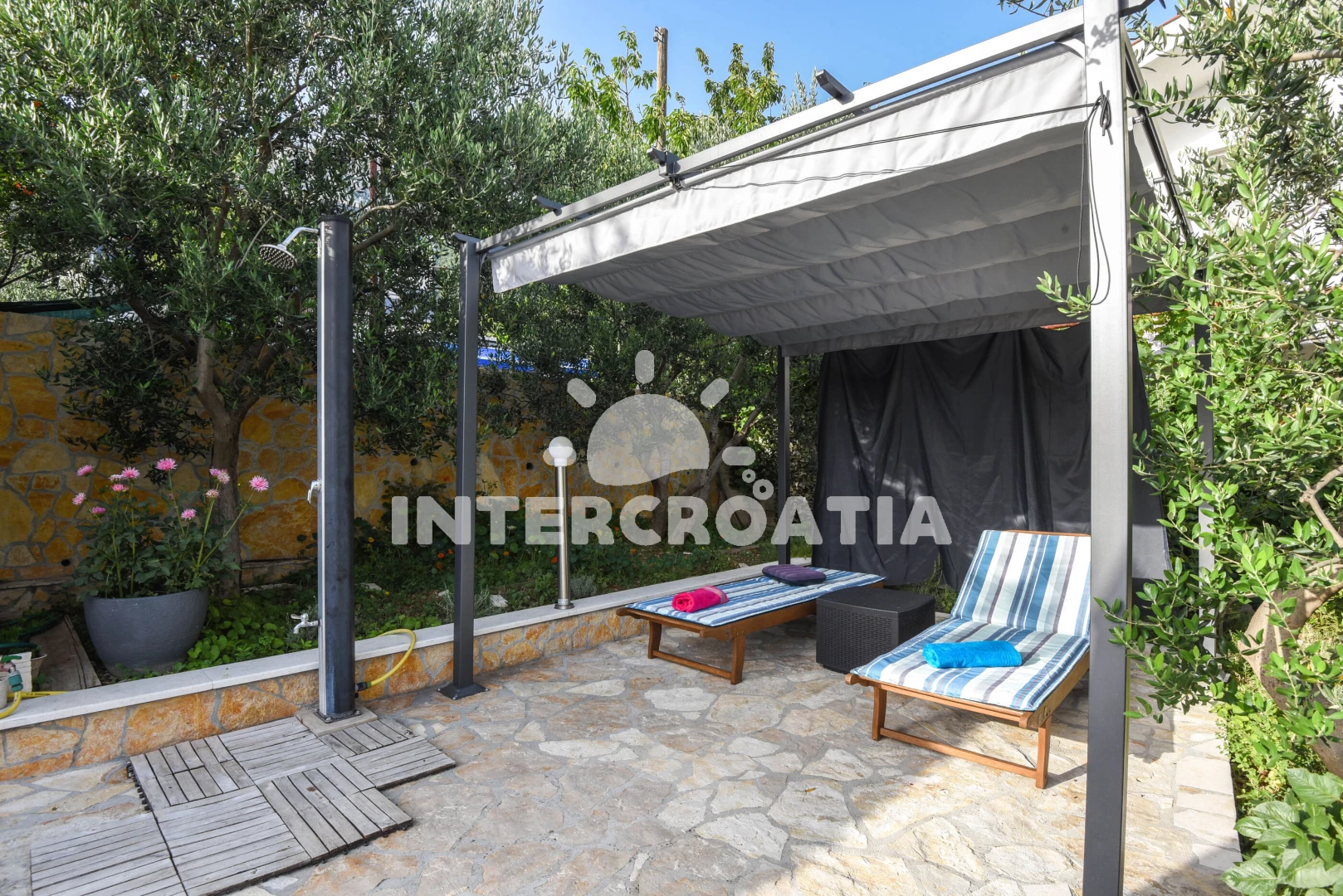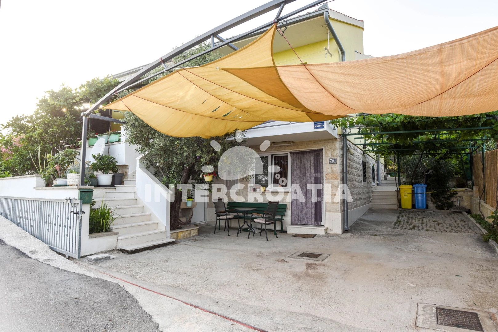 Vzdálenosti: kotviště pro čluny 0 m, Moře 1,3 km, pláž 2 km (písčitá a betonové desky), veřejná doprava 1,3 km, supermarket 1,5 km, centrum 1,7 km, lékárna 1,7 km, bar 1,7 km, ambulance 1,7 km, pošta 1,7 km, banka 1,8 km, muzeum 2 km, směnárna 2 km, restaurace 2 km, čerpací stanice 2 km, marina 2,5 km, půjčovna motorových člunů 2,5 km, půjčovna kol 2,5 km, tenisové kurty 10 km, diskotéka 10 km, mini golf 12 km, letiště (Split) 13 km, trajekt (Split) 13,5 km, potápění 40 km, park Plitvice 100 km,