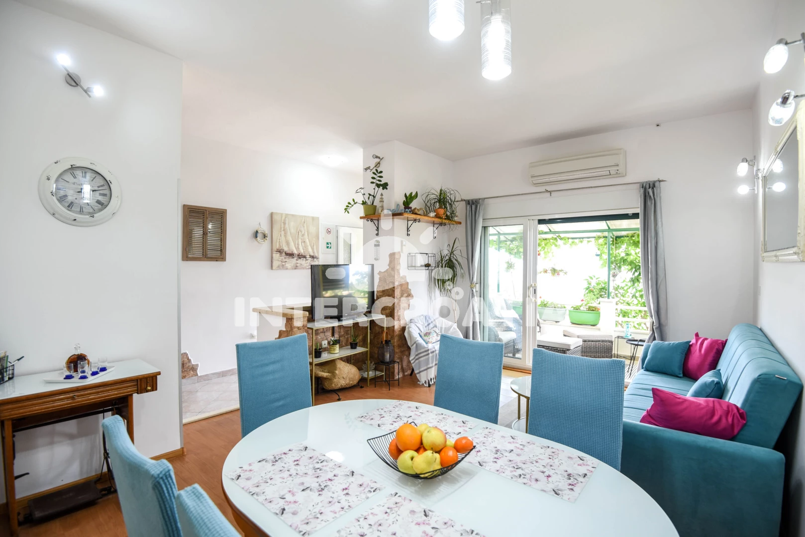 Domek se nachází 2000 m od moře a pláže. Pláž je písčitá a betonové desky. Domek disponuje bazénem s lehátky pro ubytované hosty. U objektu je k dispozici společná zahrada s posezením a grilem. Parkování je před domem.