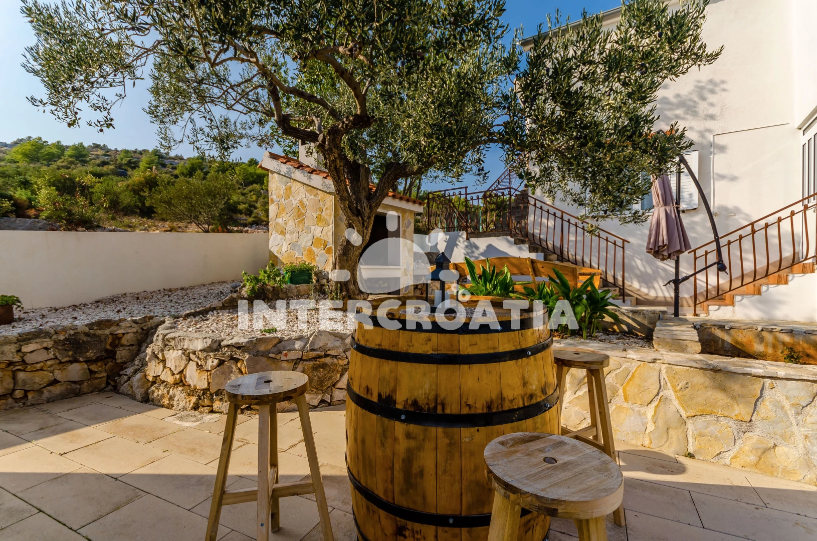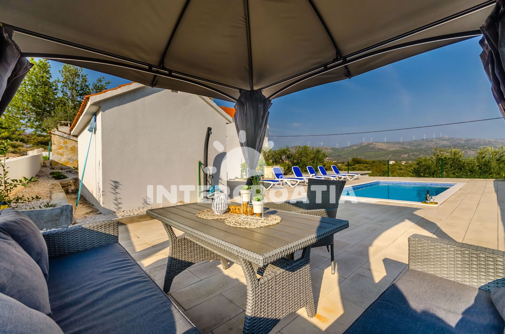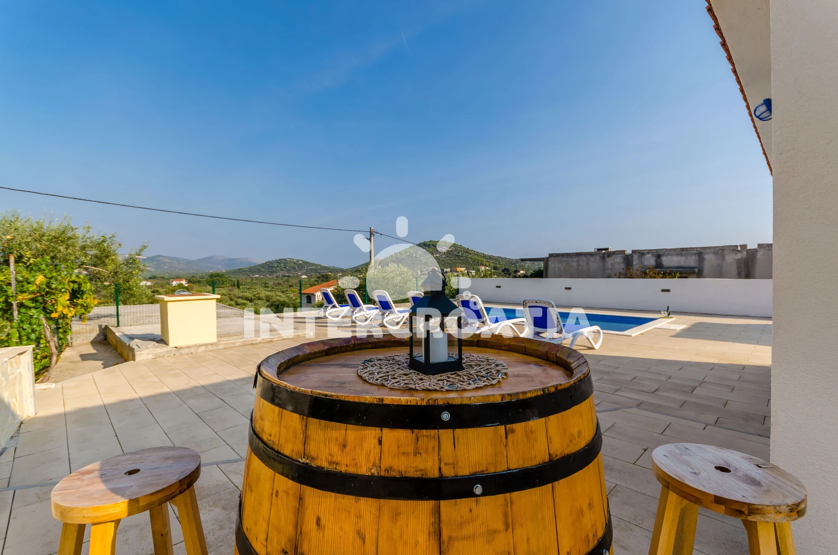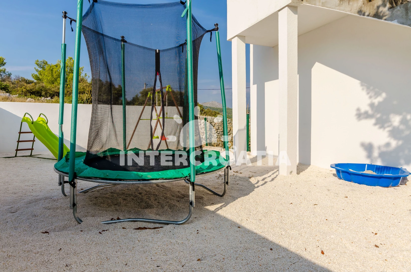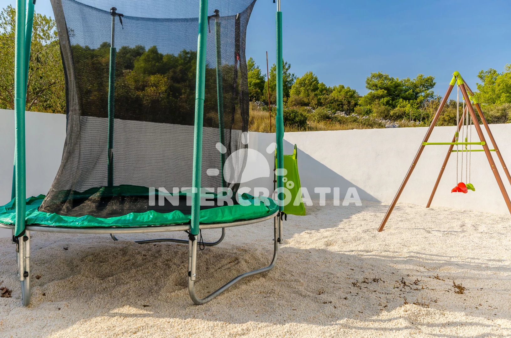 Domek se nachází 3000 m od moře a pláže. Pláž je oblázková. Domek disponuje bazénem s lehátky pro ubytované hosty. U objektu je k dispozici společná zahrada s posezením a grilem. Parkování je před domem.