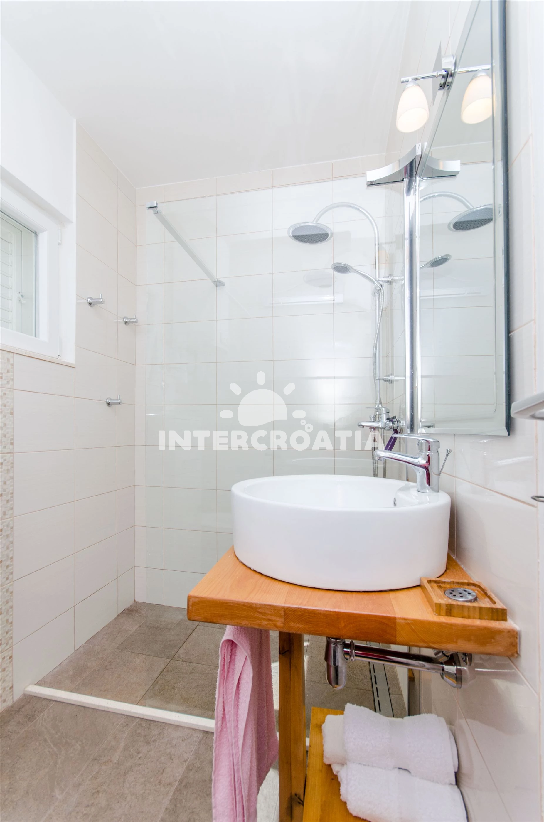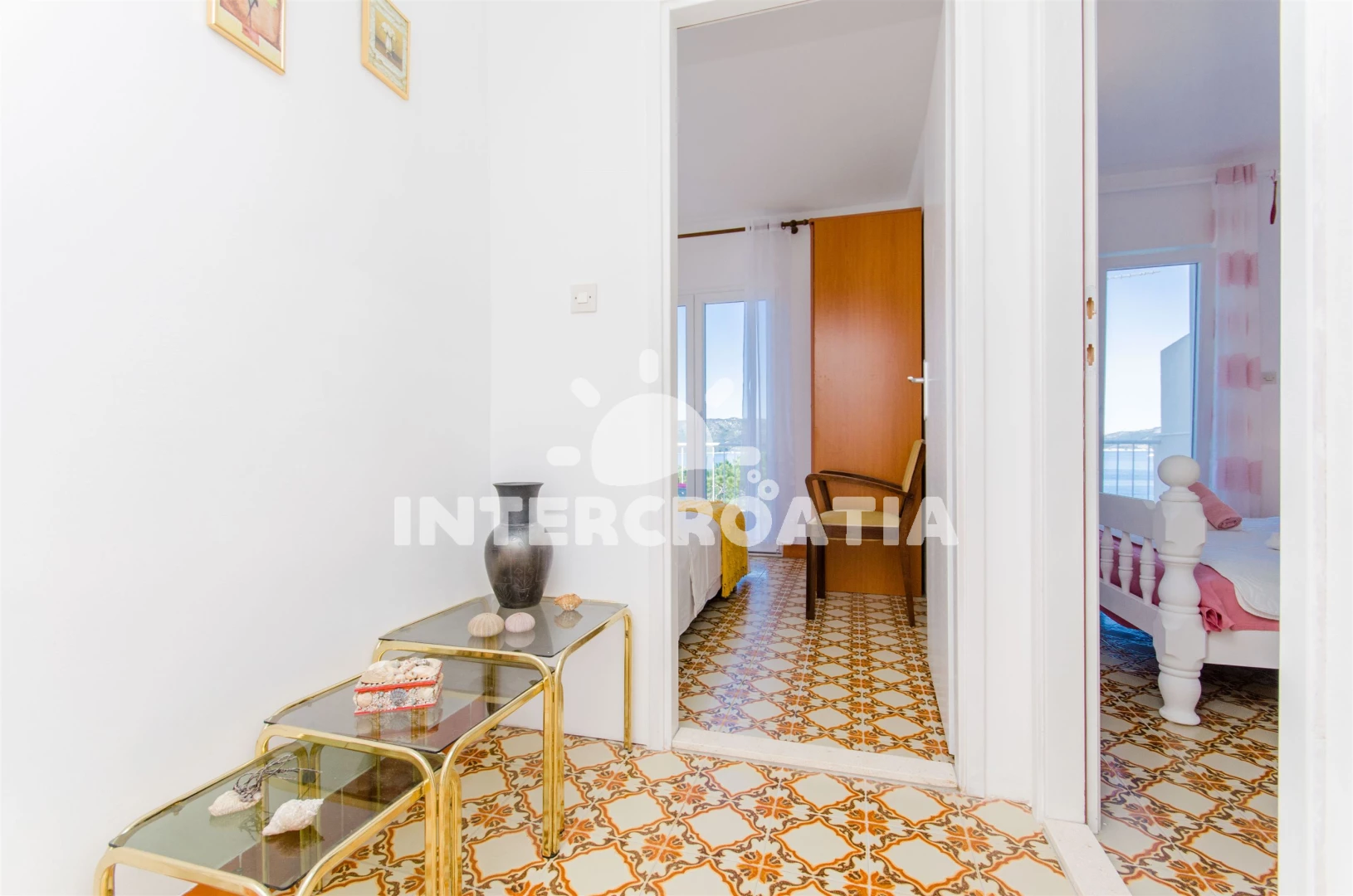Vzdálenosti: Moře 50 m, pláž 50 m (kamenné a betonové desky), supermarket 1,5 km, restaurace 1,5 km, bar 1,5 km, veřejná doprava 1,5 km, tenisové kurty 3 km, potápění 3 km, směnárna 3,5 km, ambulance 3,5 km, pošta 3,5 km, lékárna 3,5 km, banka 3,5 km, trajekt (Trogir) 5 km, marina 5 km, kotviště pro čluny 5 km, diskotéka 5 km, čerpací stanice 5 km, centrum 6 km, letiště (Split) 7 km,