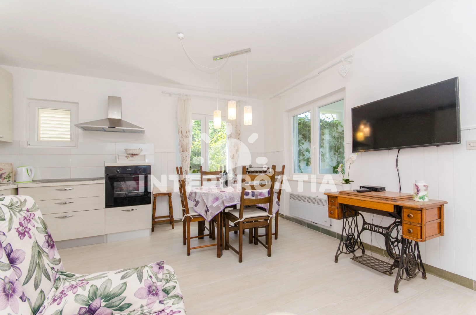 Domek se nachází 50 m od moře a pláže. Pláž je kamenné a betonové desky. U objektu je k dispozici společná zahrada s posezením a grilem.
