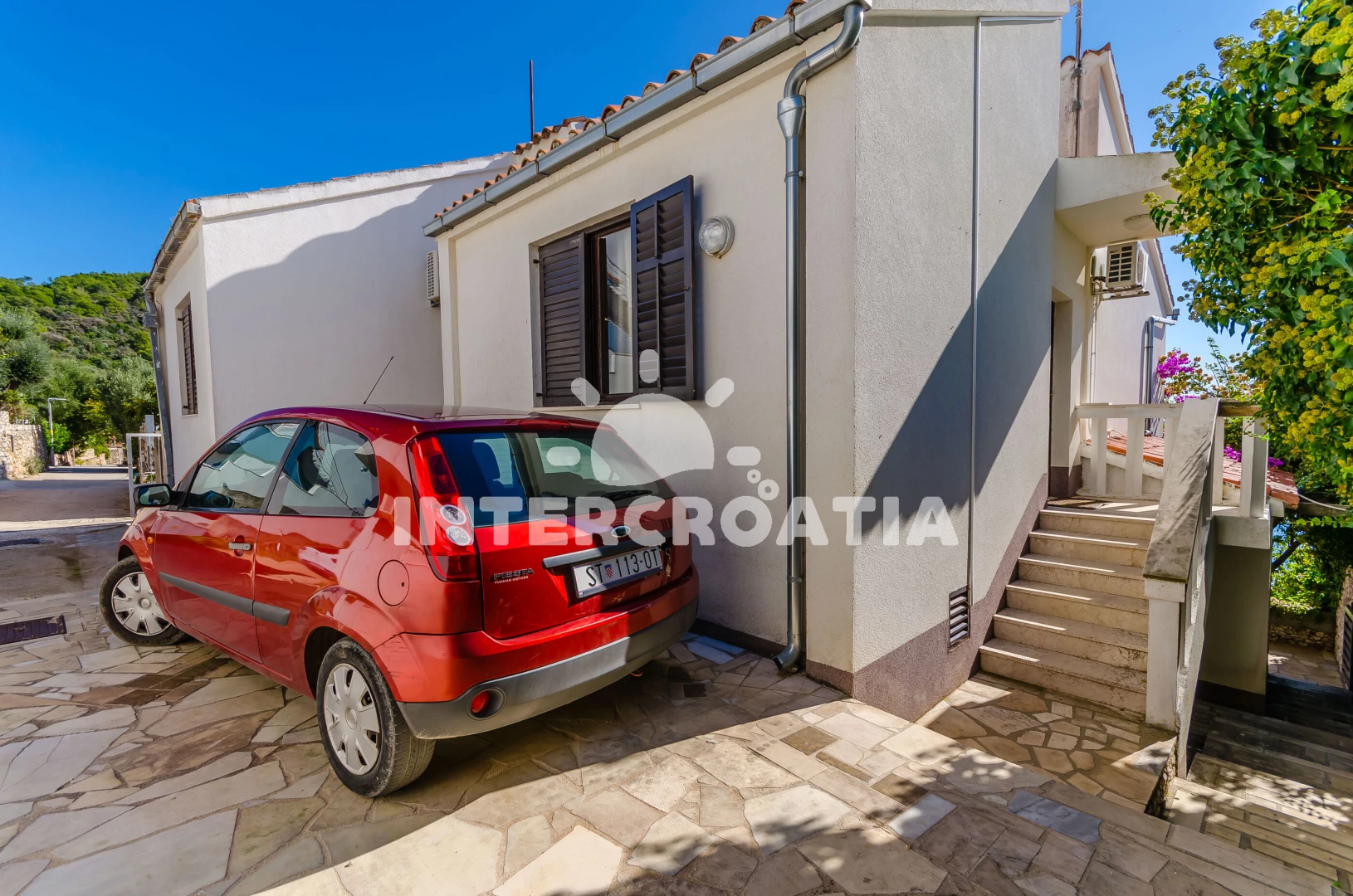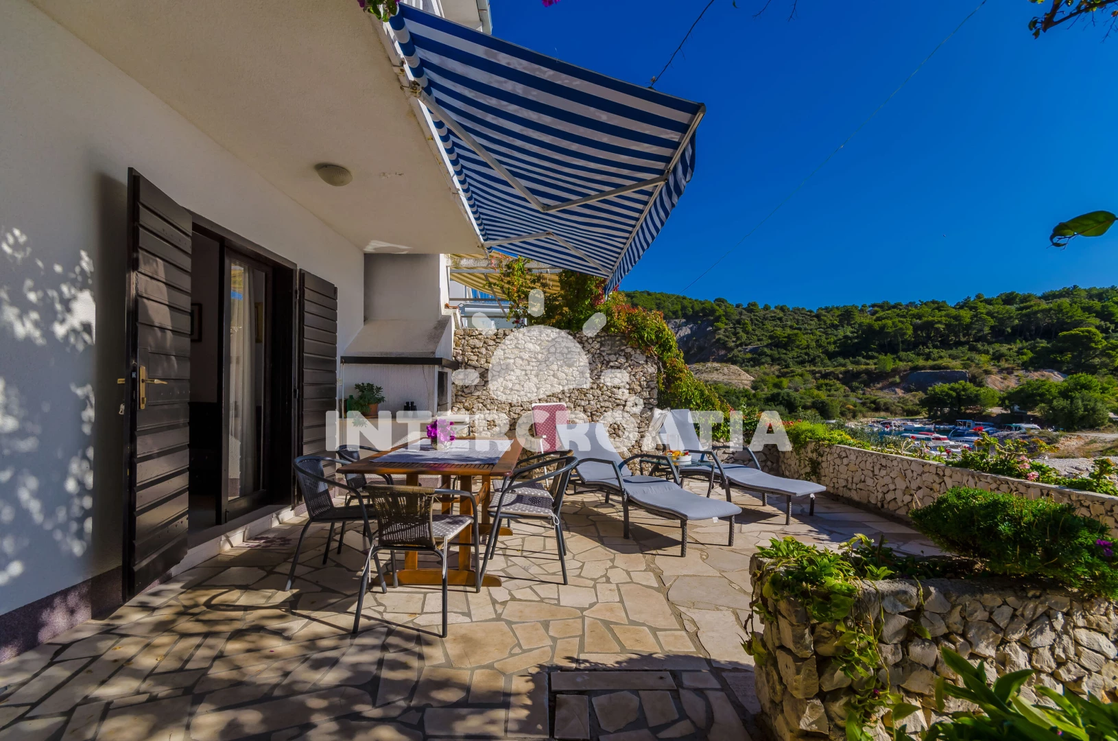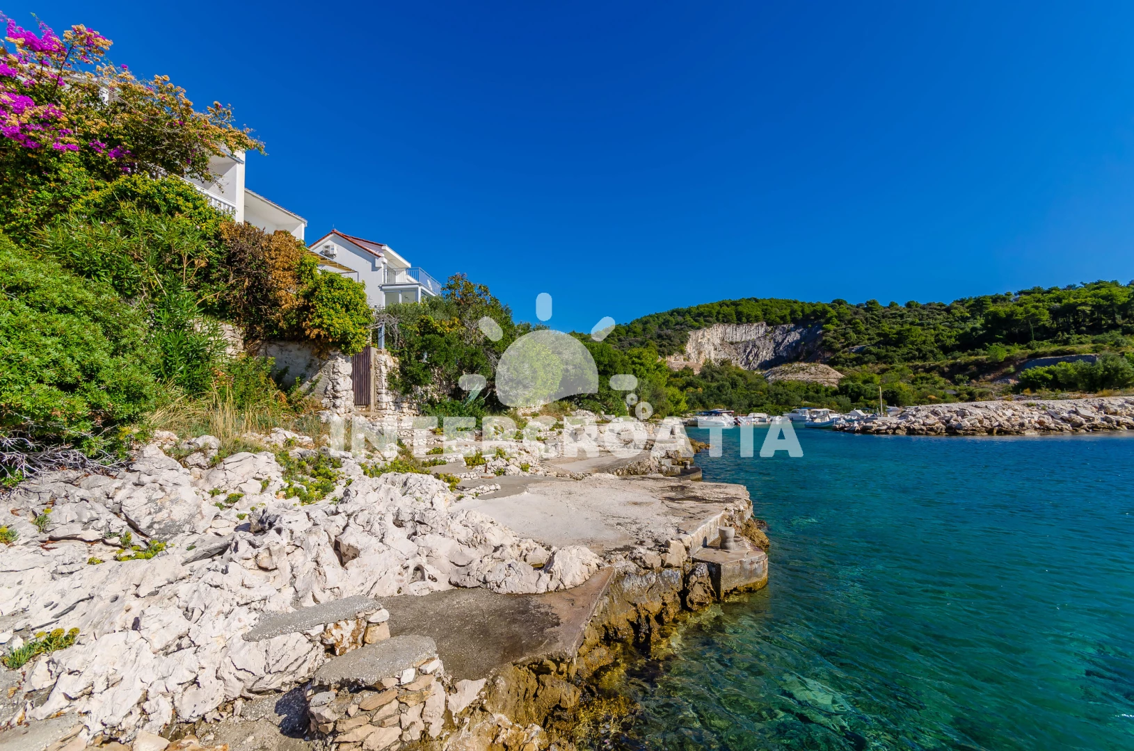 Vzdálenosti: Moře 10 m, pláž 50 m (oblázková a betonové desky), kotviště pro čluny 50 m, bar 500 m, restaurace 500 m, veřejná doprava 800 m, pošta 800 m, supermarket 800 m, centrum 800 m, tenisové kurty 2 km, potápění 3 km, lékárna 3 km, směnárna 3 km, ambulance 3 km, půjčovna kol 3 km, půjčovna motorových člunů 3 km, banka 3 km, diskotéka 5 km, čerpací stanice 7 km, muzeum 7 km, marina 7 km, letiště (Split) 12 km, trajekt (Split) 36,0 km,