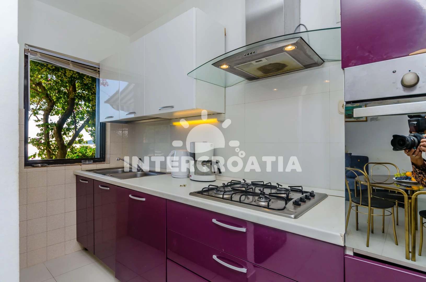 Domek (70 m2) s balkonem, a výhledem na moře. Nachází se ve dvou patrech objektu. Domek má 2 ložnice a je vhodný pro až 5 osob. Kuchyňská linka je vybavena varnou deskou, troubou, kávovarem, myčkou…