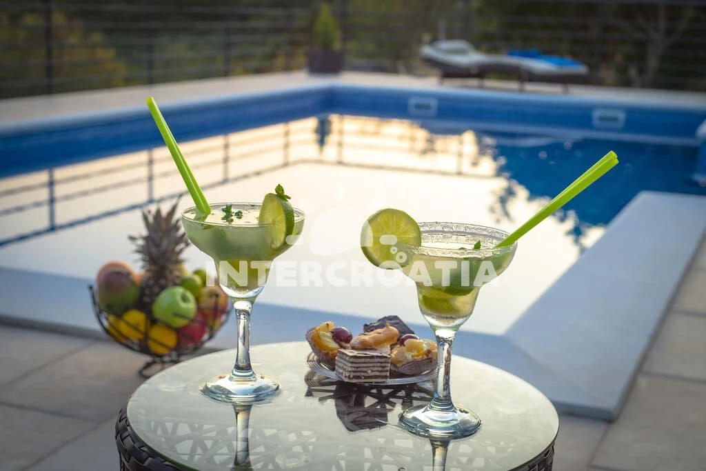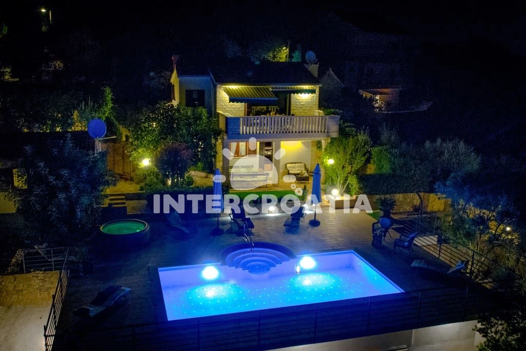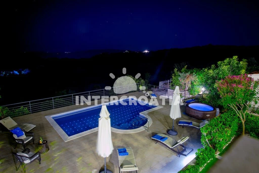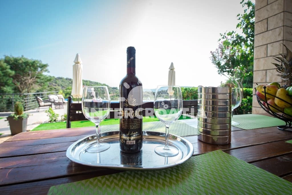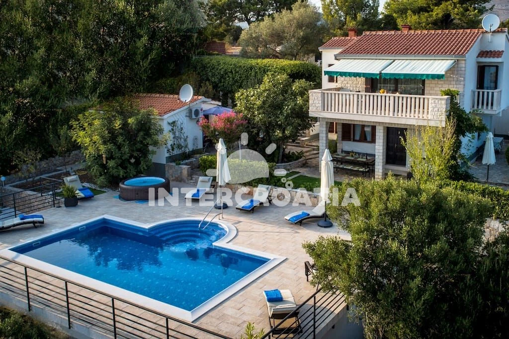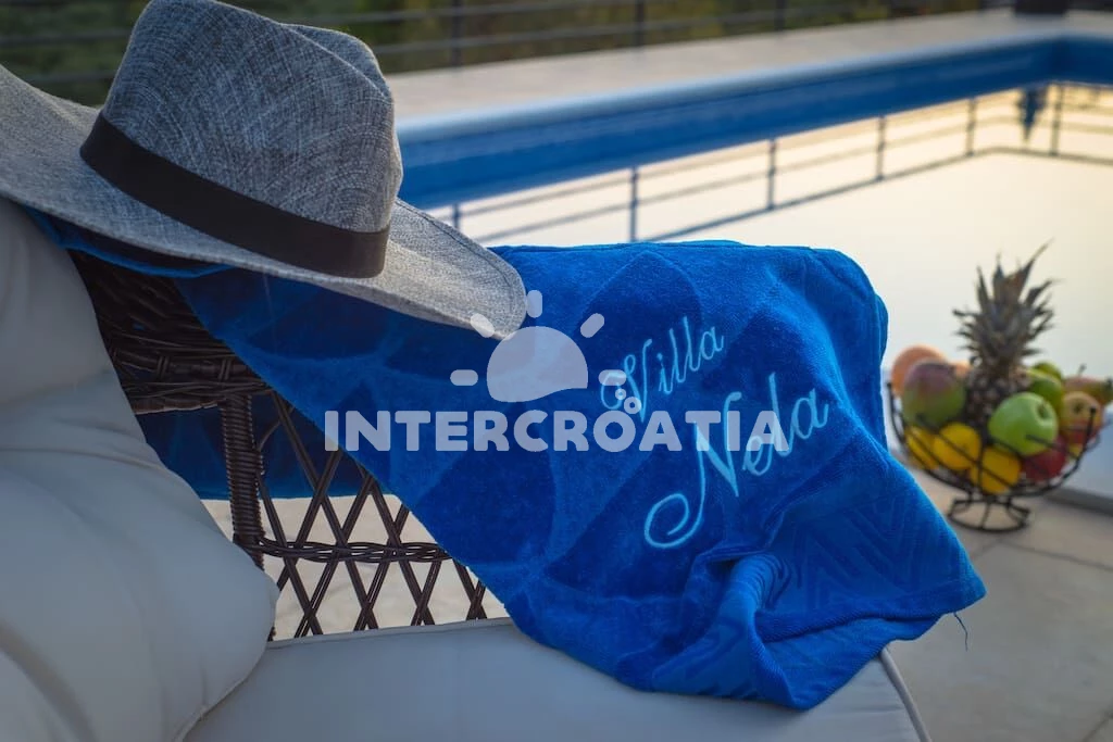 Domek se nachází 400 m od moře a pláže. Pláž je větší kamení. Domek disponuje bazénem s lehátky pro ubytované hosty. K dispozici posilovna. U objektu je k dispozici společná zahrada s posezením a grilem.