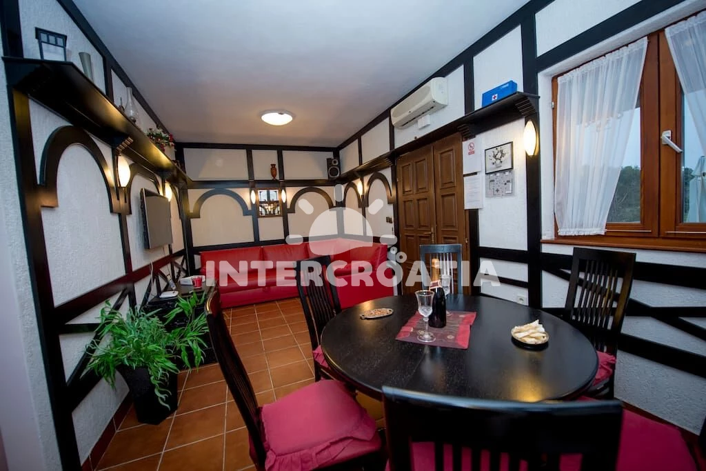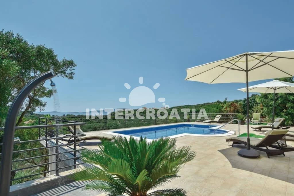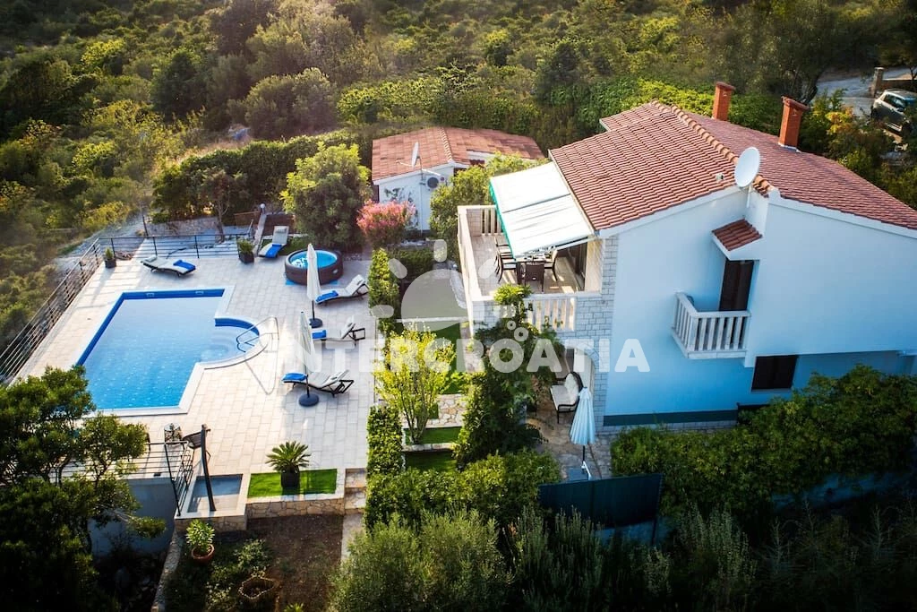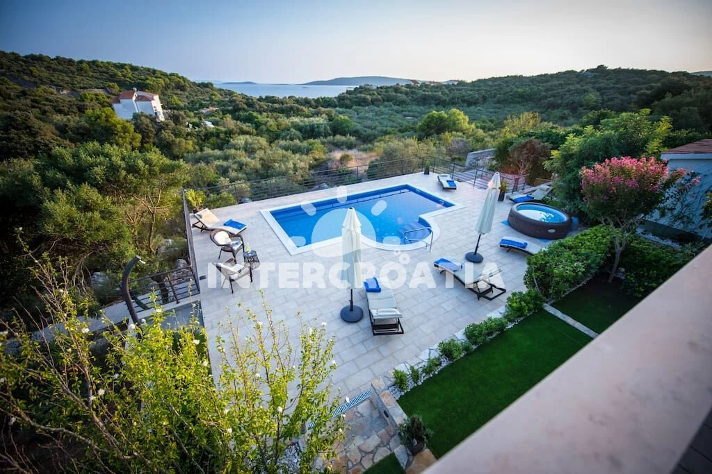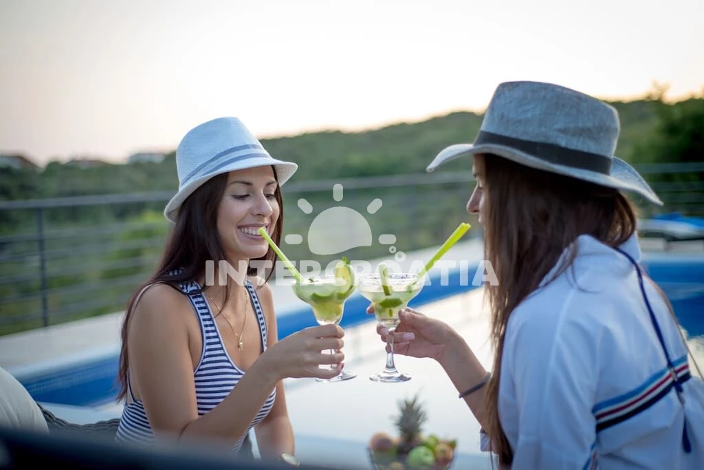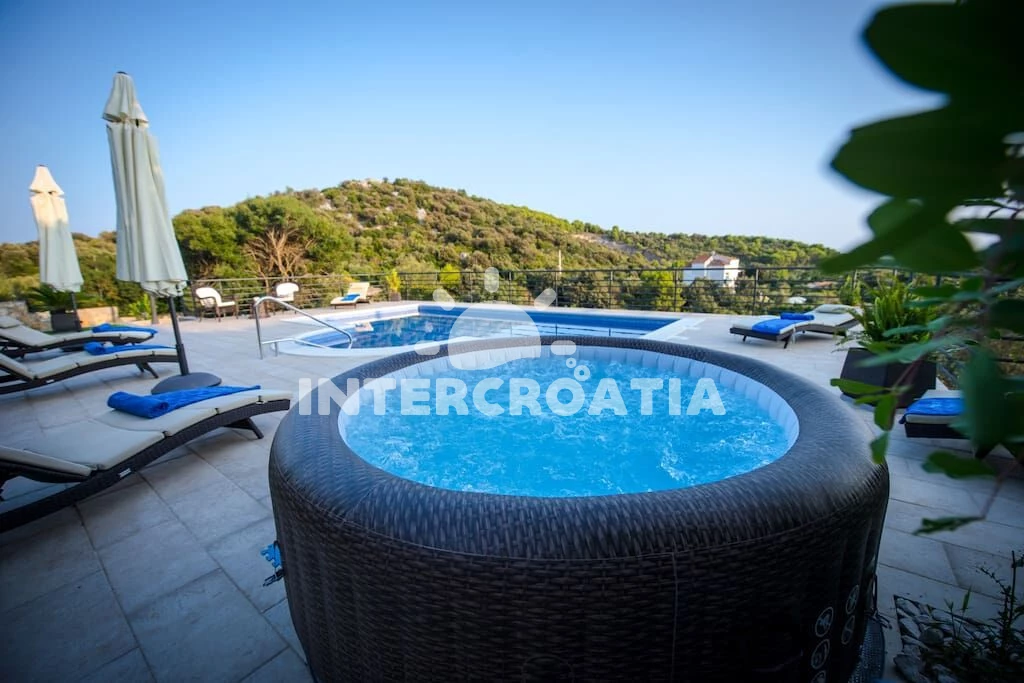 Domek se nachází 400 m od moře a pláže. Pláž je větší kamení. Domek disponuje bazénem s lehátky pro ubytované hosty. K dispozici posilovna. U objektu je k dispozici společná zahrada s posezením a grilem.