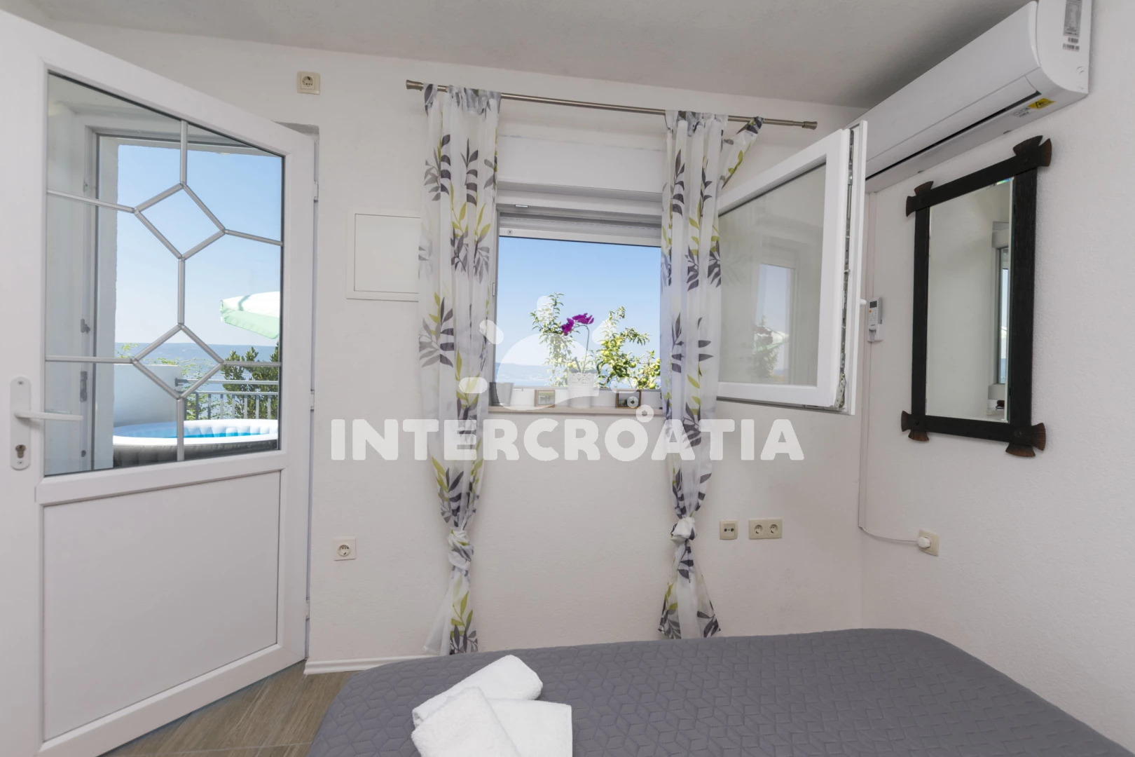 Vzdálenosti: Moře 550 m, pláž 2 km (písek), centrum 2 km, směnárna 2 km, restaurace 2 km, muzeum 2 km, ambulance 2 km, pošta 2 km, půjčovna motorových člunů 2 km, bar 2 km, banka 2 km, veřejná doprava 2 km, lékárna 2 km, supermarket 2 km, potápění 2 km, tenisové kurty 2,5 km, půjčovna kol 2,5 km, čerpací stanice 3 km, mini golf 8 km, trajekt (Split) 25 km, diskotéka 25 km, letiště (Split) 45 km,