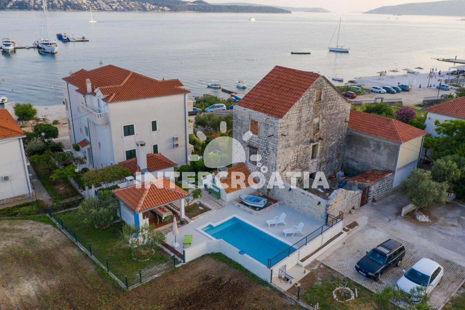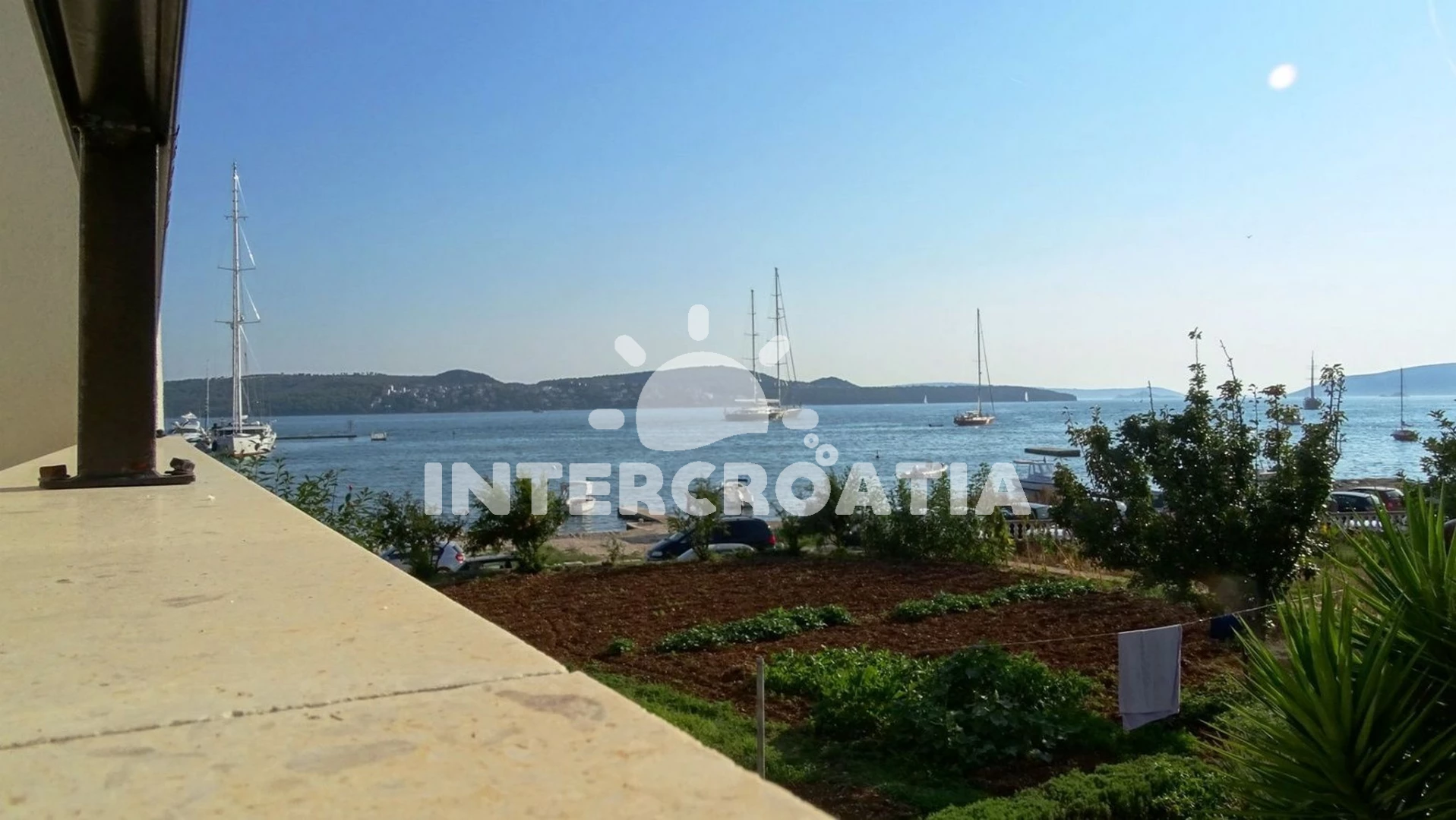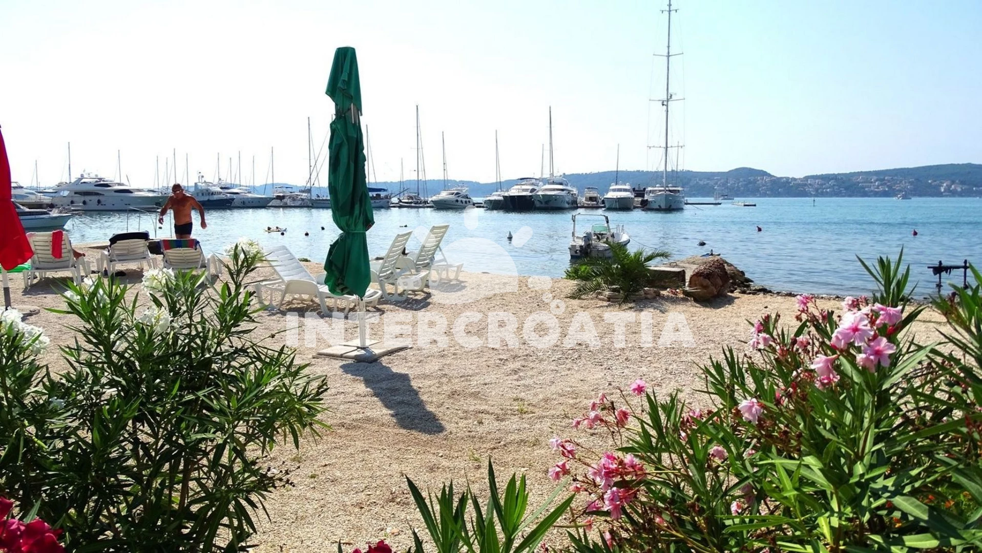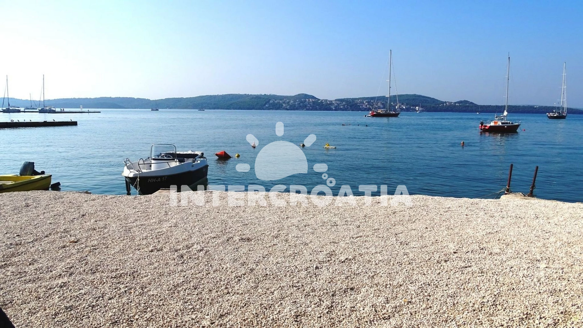 Vzdálenosti: Moře 50 m, pláž 50 m (oblázky), bar 100 m, restaurace 200 m, centrum 200 m, marina 300 m, kotviště pro čluny 300 m, lékárna 400 m, směnárna 400 m, pošta 400 m, supermarket 500 m, trajekt (Trogir) 2 km, ambulance 2 km, banka 2 km, čerpací stanice 3 km, letiště (Split) 7 km,