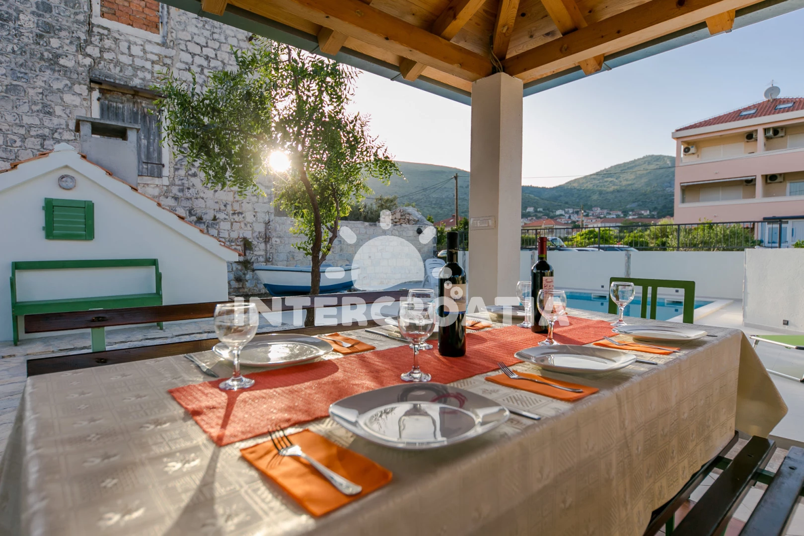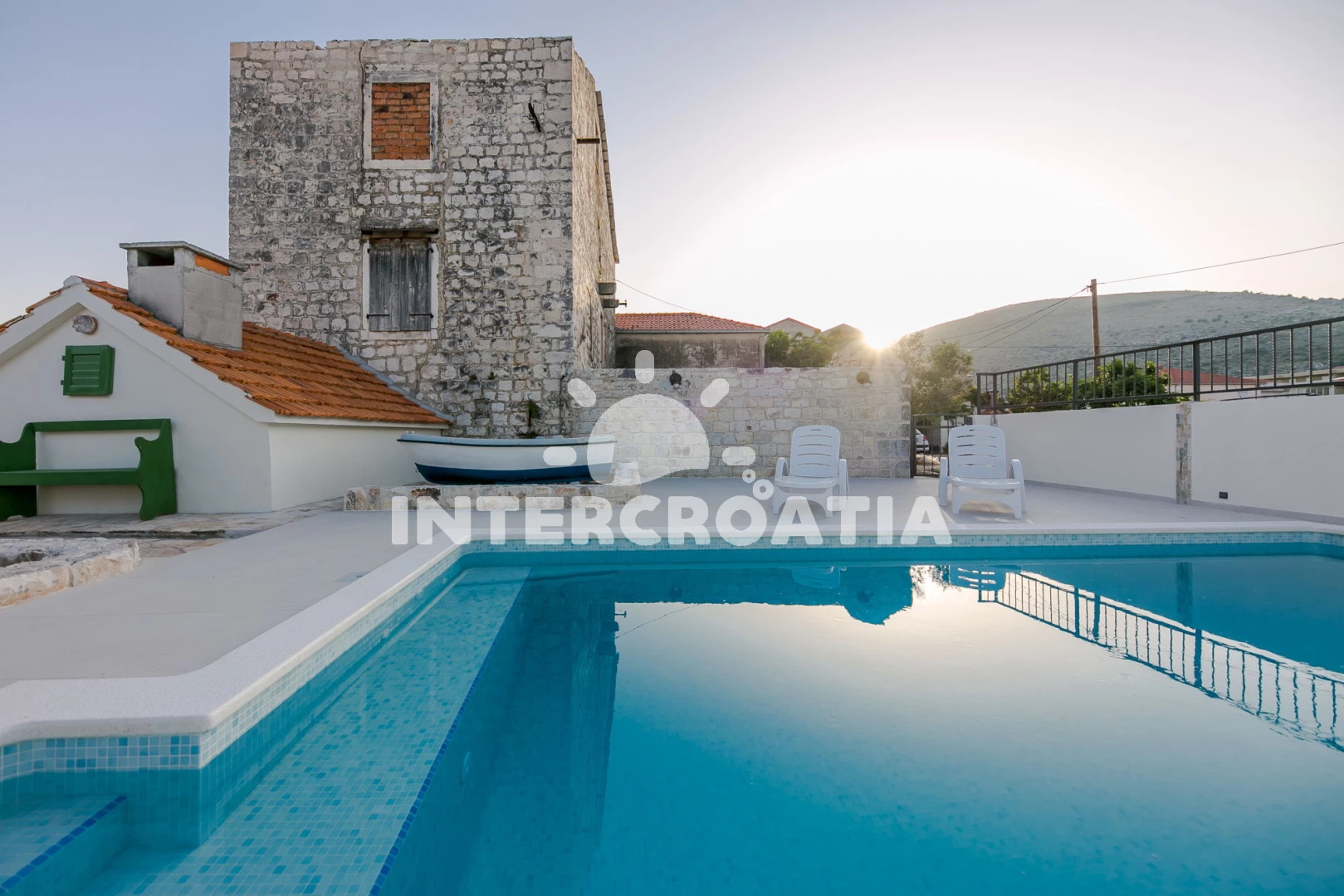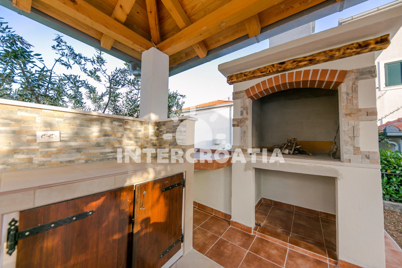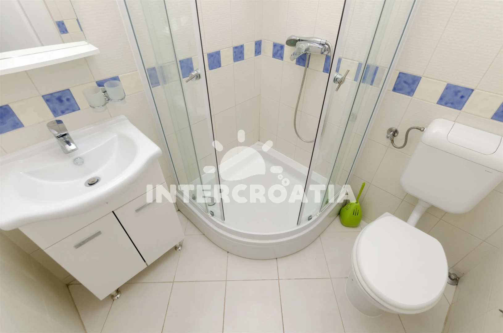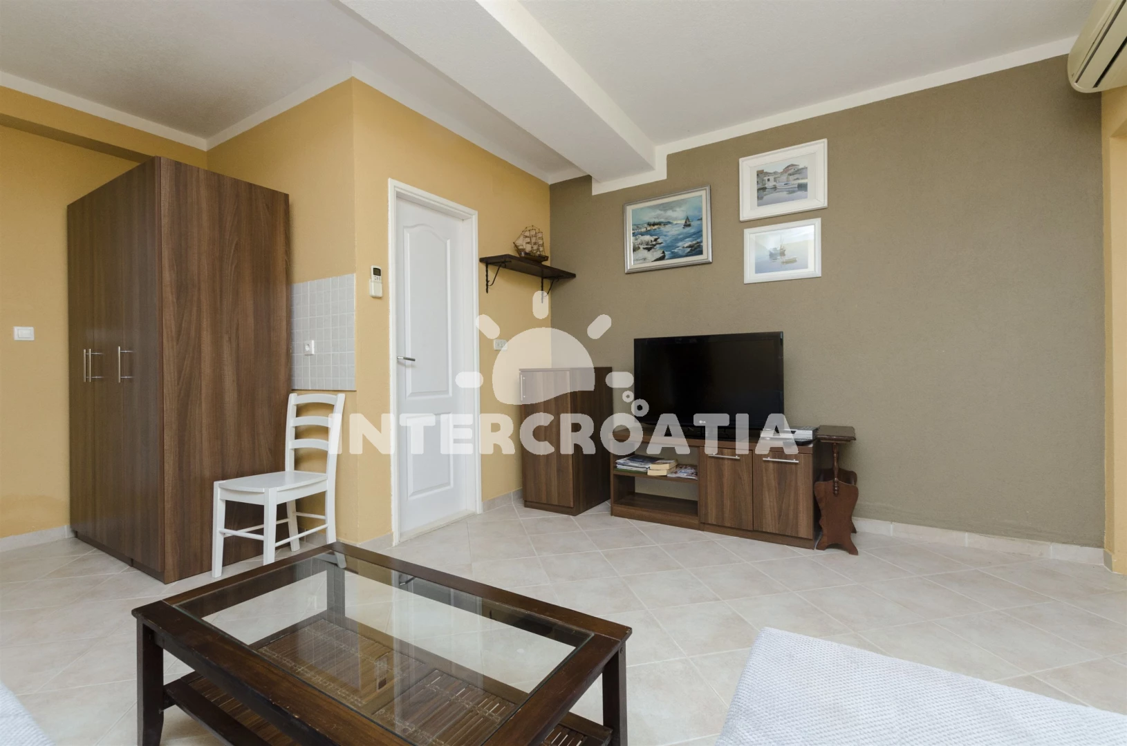 Vzdálenosti: Moře 50 m, pláž 50 m (oblázky), bar 100 m, restaurace 200 m, centrum 200 m, marina 300 m, kotviště pro čluny 300 m, lékárna 400 m, směnárna 400 m, pošta 400 m, supermarket 500 m, trajekt (Trogir) 2 km, ambulance 2 km, banka 2 km, čerpací stanice 3 km, letiště (Split) 7 km,
