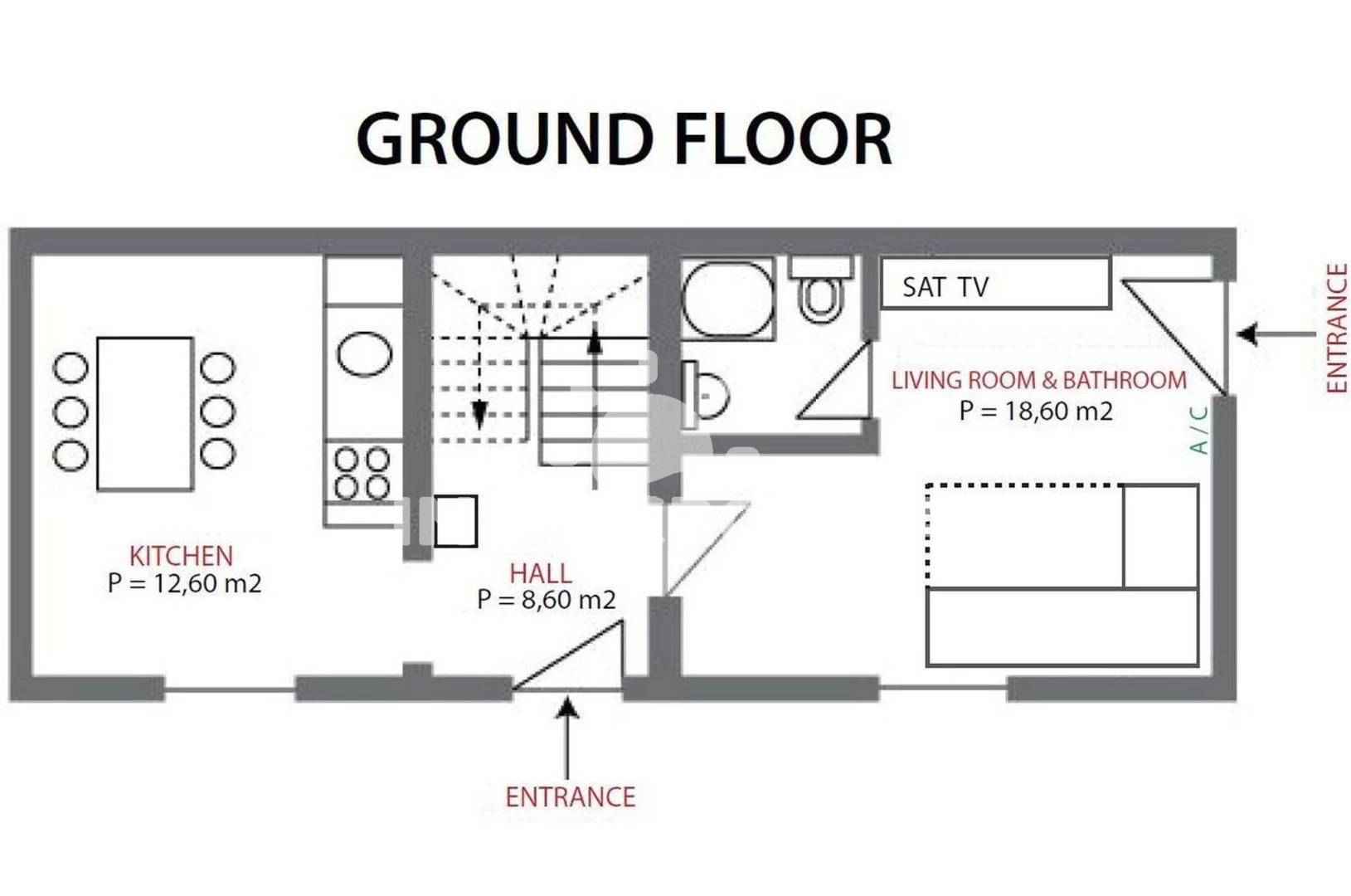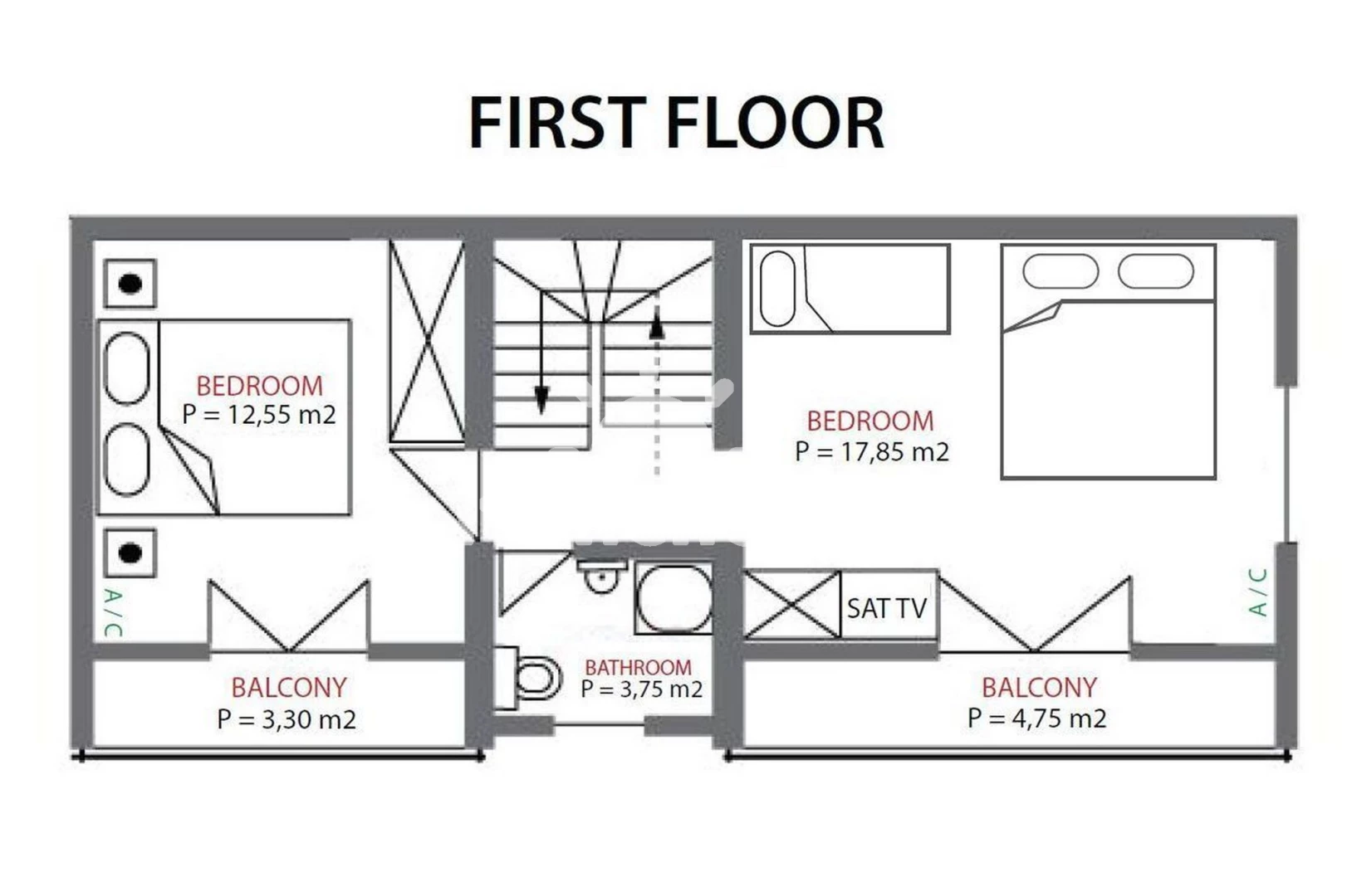 Domek (80 m2) s balkonem. Nachází se ve dvou patrech objektu. Domek má 2 ložnice a je vhodný pro až 6 osob. Kuchyňská linka je vybavena varnou deskou, troubou, kávovarem, myčkou na nádobí, mikrovlnnou troubou, rychlovarnou konvicí, nádobím, lednicí, mrazákem. V obývací místnosti je rozložitelná pohovka (extra lůžko pro 2 osoby). K dispozici televize se satelitním programem, sejf. První ložnice s dvoulůžkem. Druhá ložnice s dvoulůžkem. První koupelna se sprchovým koutem, umyvadlem, fénem a WC. Druhá koupelna se sprchovým koutem, umyvadlem, fénem a WC.