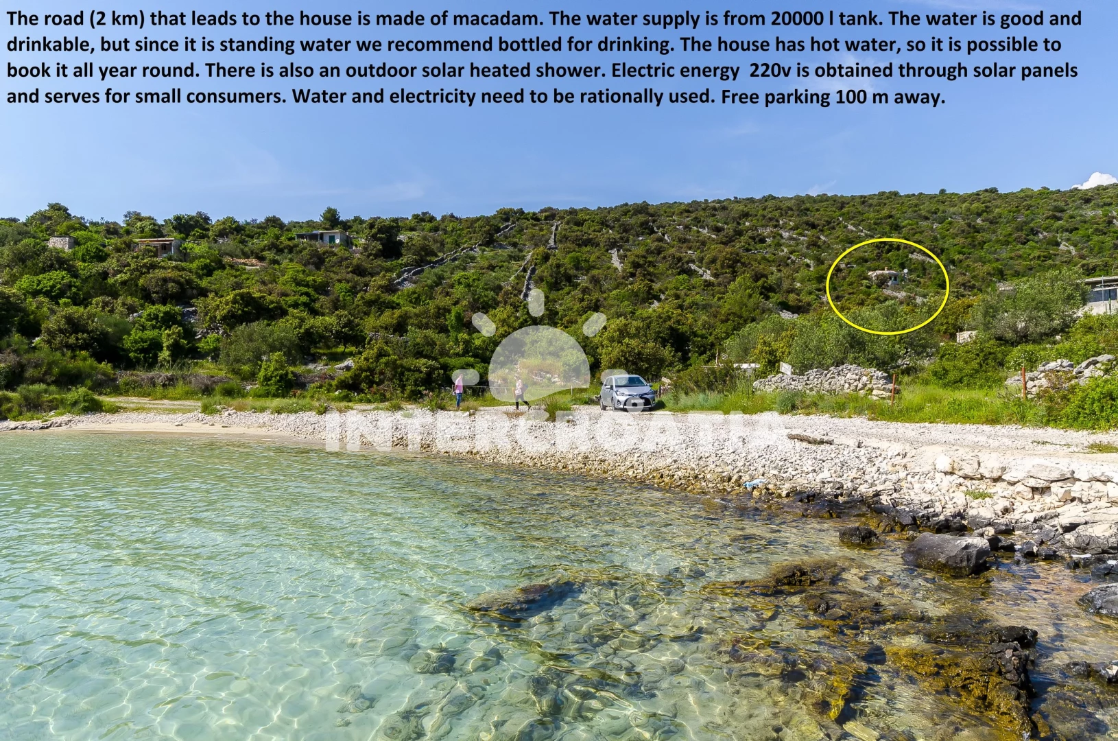 A ház gyönyörű környezetben fekszik, közel a tengerparthoz, távol a többi apartmantól, így igazán nyugodt nyaralást biztosít. - Korábbi vélemények alapján mi fel voltunk készülve rá, így nem ért meglepetésként: A házhoz egy meredek köves út vezet, mozgásában korlátozott személyek részére nem ajánlanám.