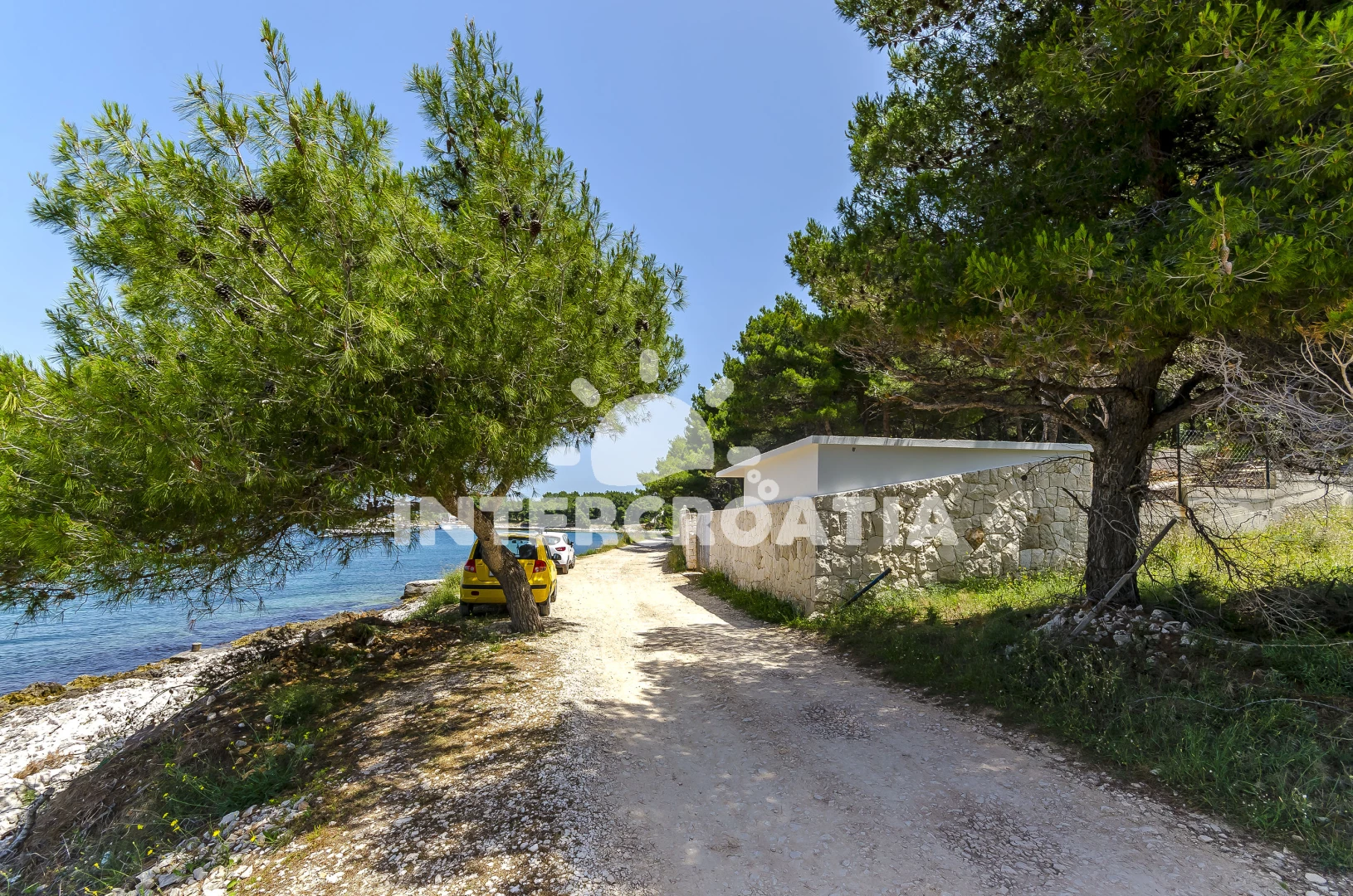 Přímo u moře, vepředu jen štěrková cesta.