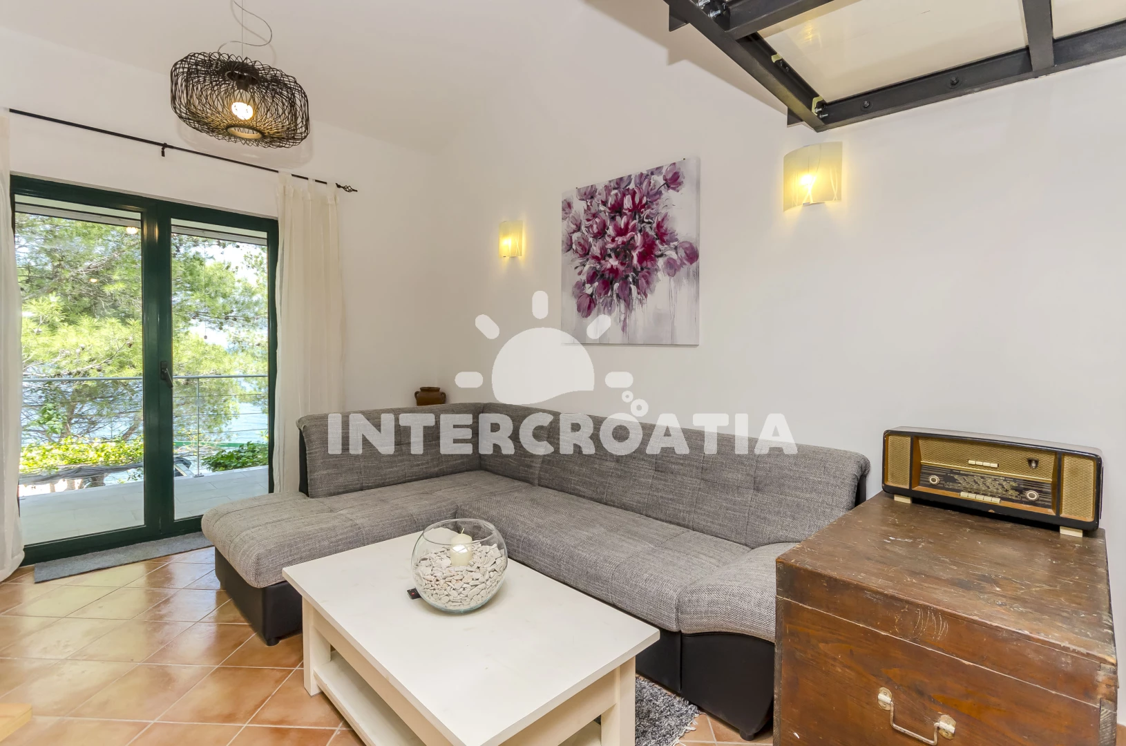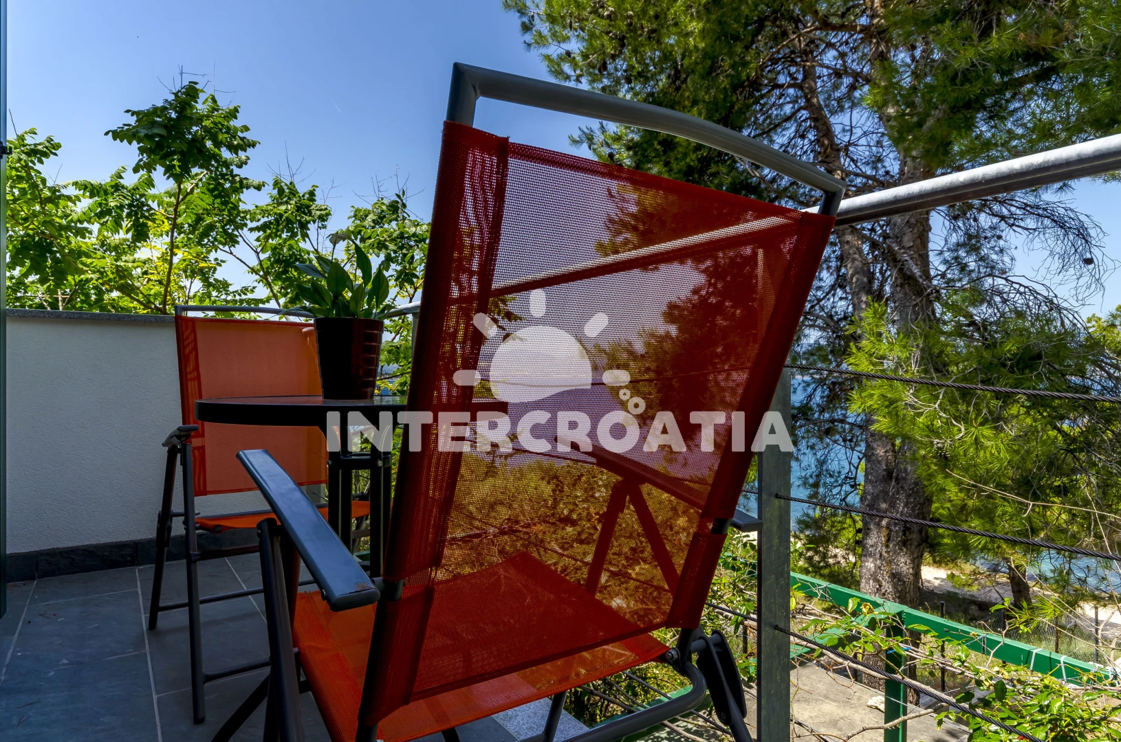 Vzdálenosti: Moře 10 m, pláž 10 m (betonové desky), supermarket 1 km, restaurace 1 km, bar 1 km, půjčovna kol 1,5 km, centrum 2,5 km, pošta 3 km, veřejná doprava 3 km, ambulance 10 km, směnárna 10 km, muzeum 10 km, banka 10 km, letiště (Split) 15 km, trajekt (Split) 35 km,