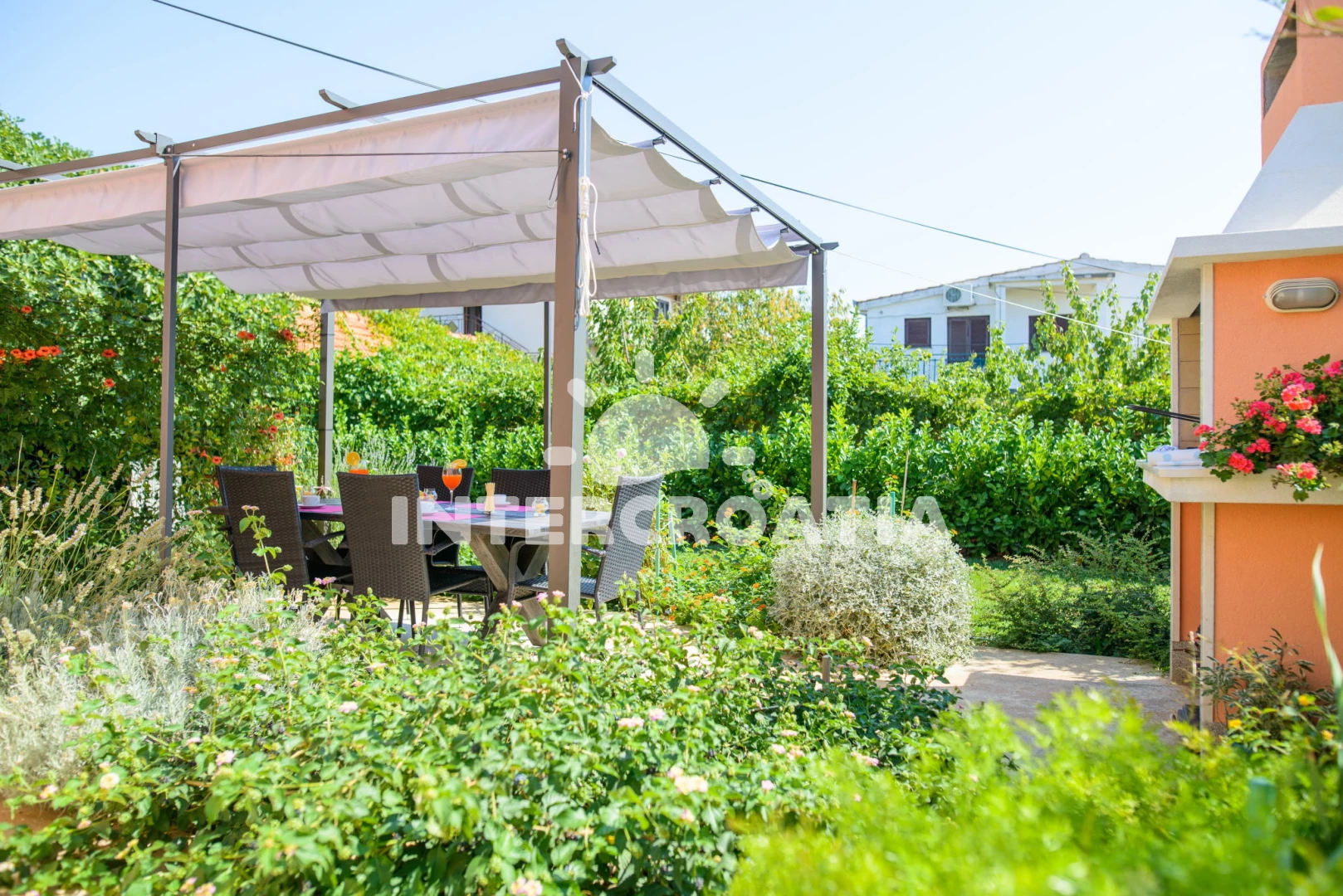 Domek se nachází 150 m od moře a pláže. Pláž je skalnatá a oblázková. U objektu je k dispozici společná zahrada s posezením a grilem. Parkování je před domem.