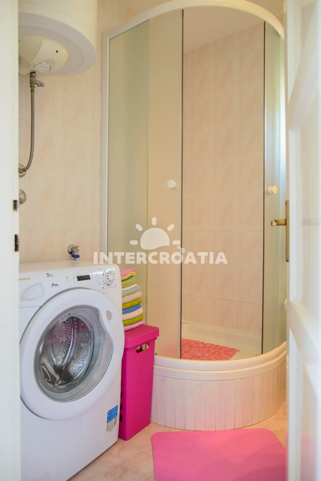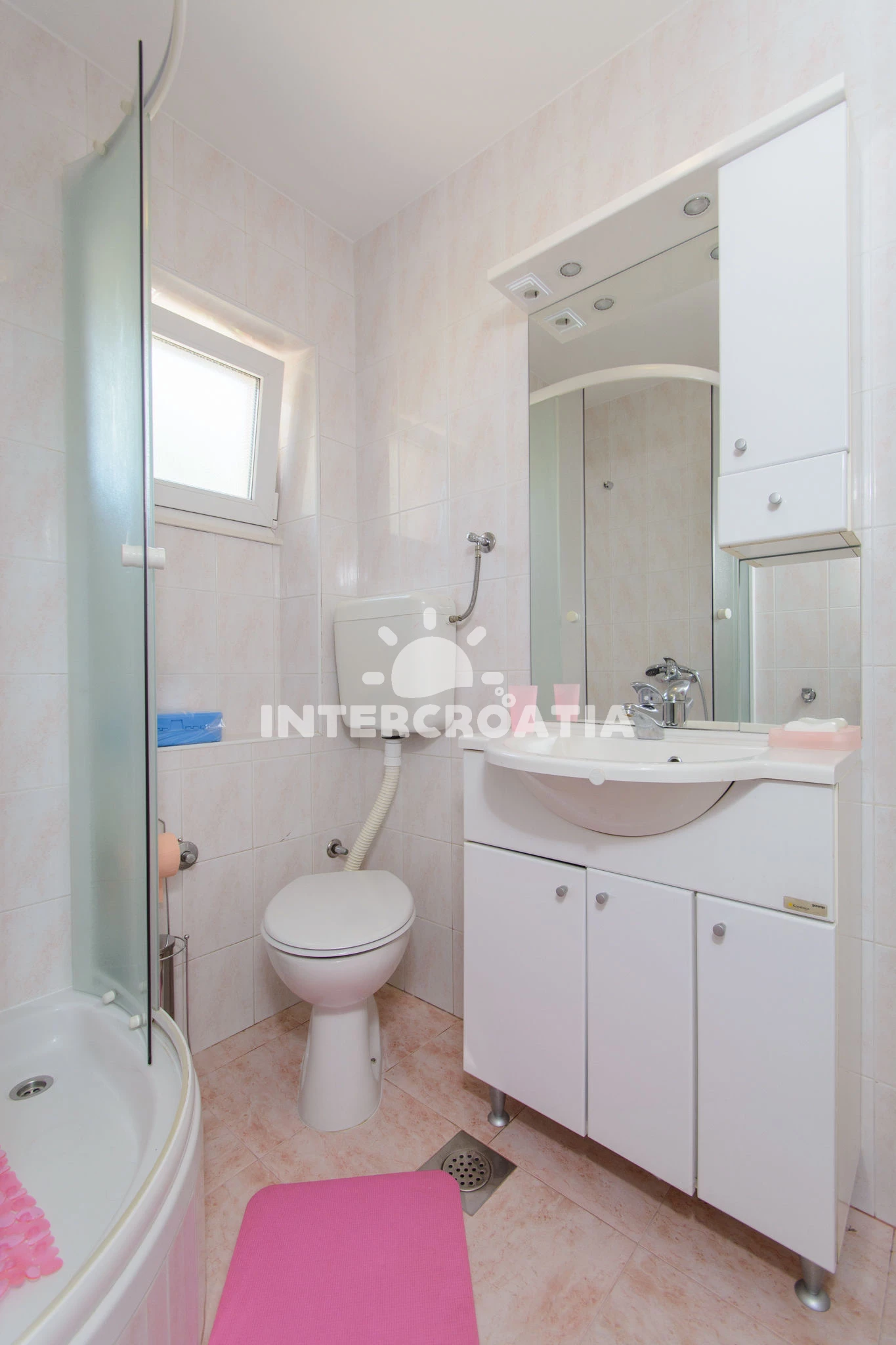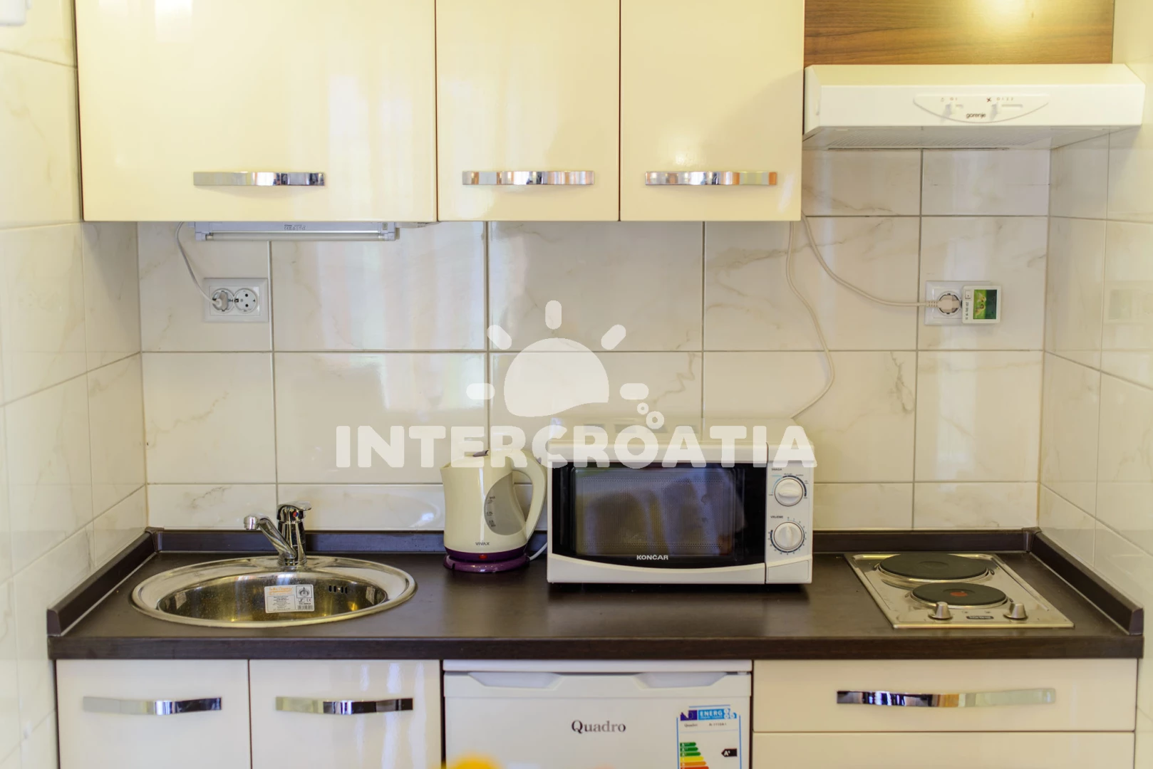 Vzdálenosti: Moře 100 m, pláž 150 m (skalnatá a oblázková), veřejná doprava 50 m, banka 100 m, bar 100 m, pošta 100 m, čerpací stanice 150 m, supermarket 150 m, muzeum 200 m, lékárna 200 m, směnárna 200 m, restaurace 200 m, ambulance 300 m, centrum 400 m, diskotéka 1 km, půjčovna motorových člunů 1 km, marina 2 km, půjčovna kol 2 km, potápění 5 km, letiště (Split) 5 km, trajekt (Split) 20 km,