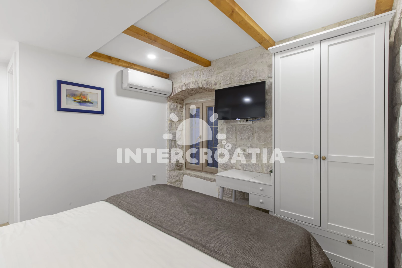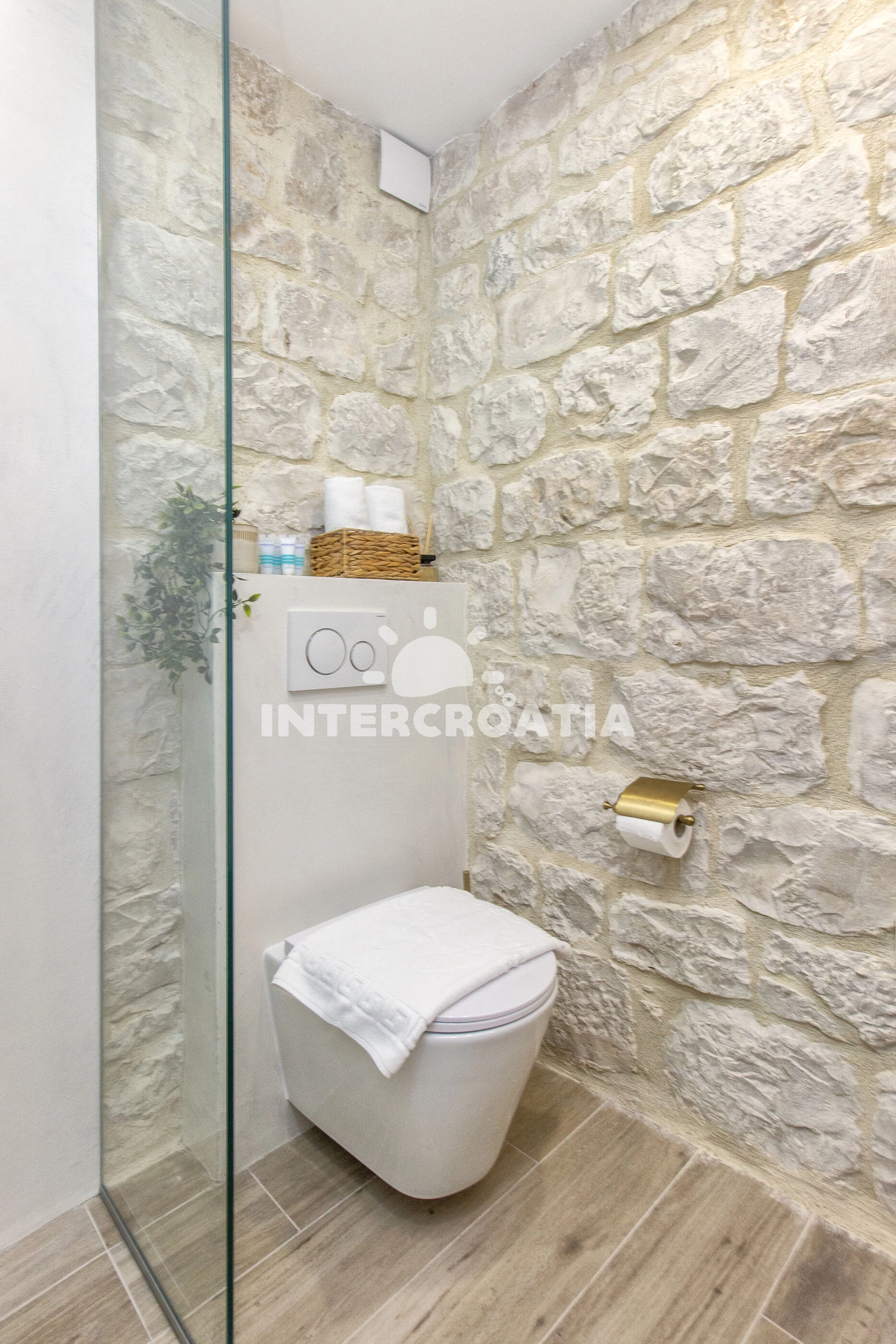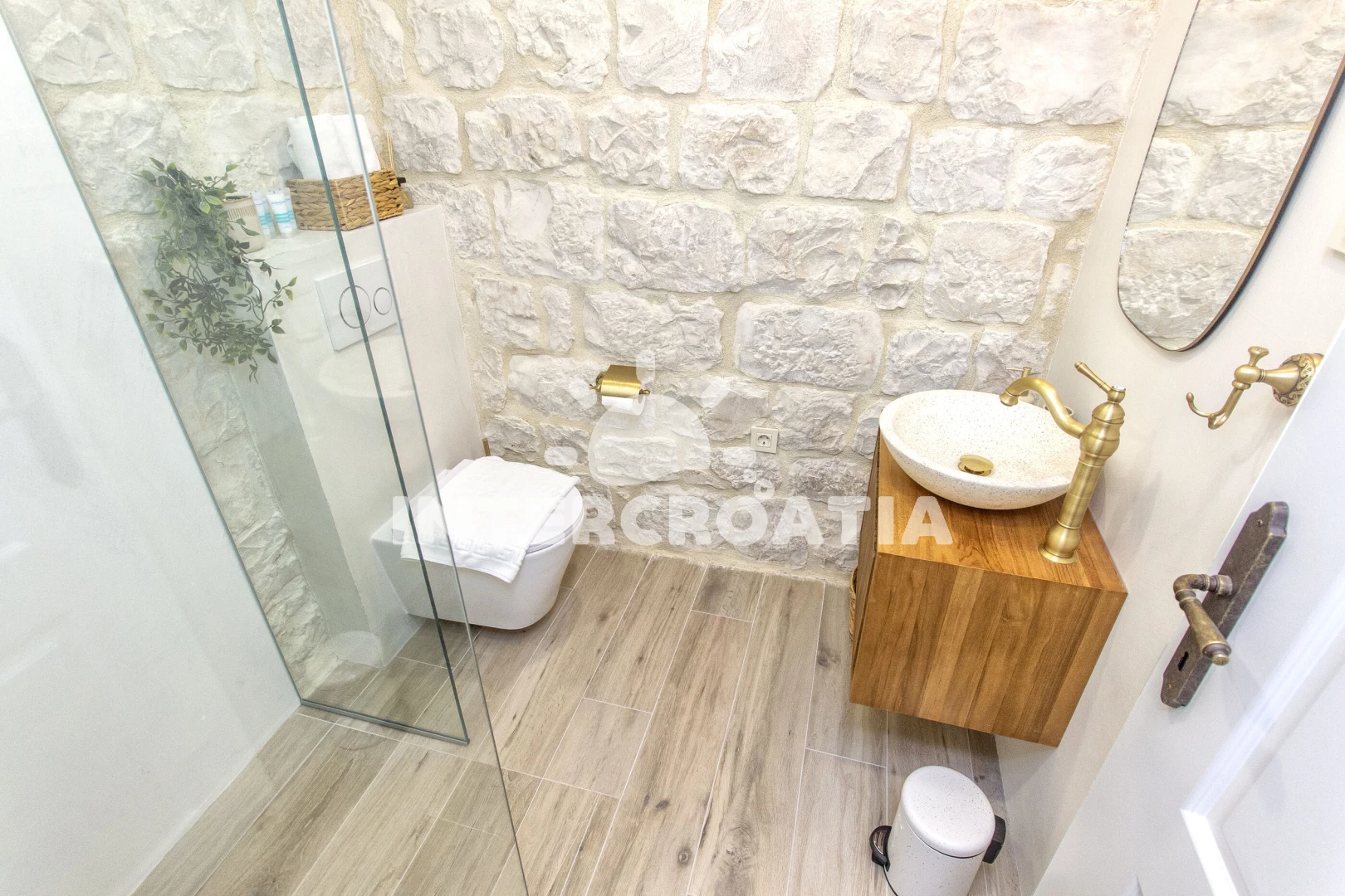 Vzdálenosti: Moře 50 m, pláž 300 m (oblázky), veřejná doprava 50 m, supermarket 50 m, bar 70 m, restaurace 100 m, centrum 200 m, směnárna 200 m, banka 500 m, čerpací stanice 700 m, letiště (Split) 7 km,